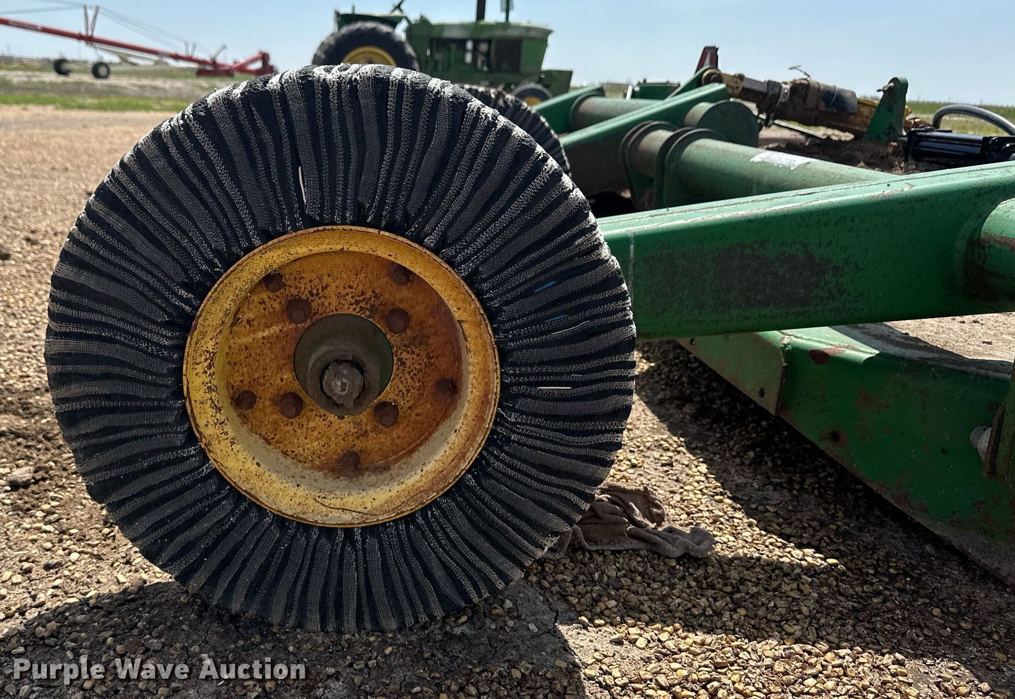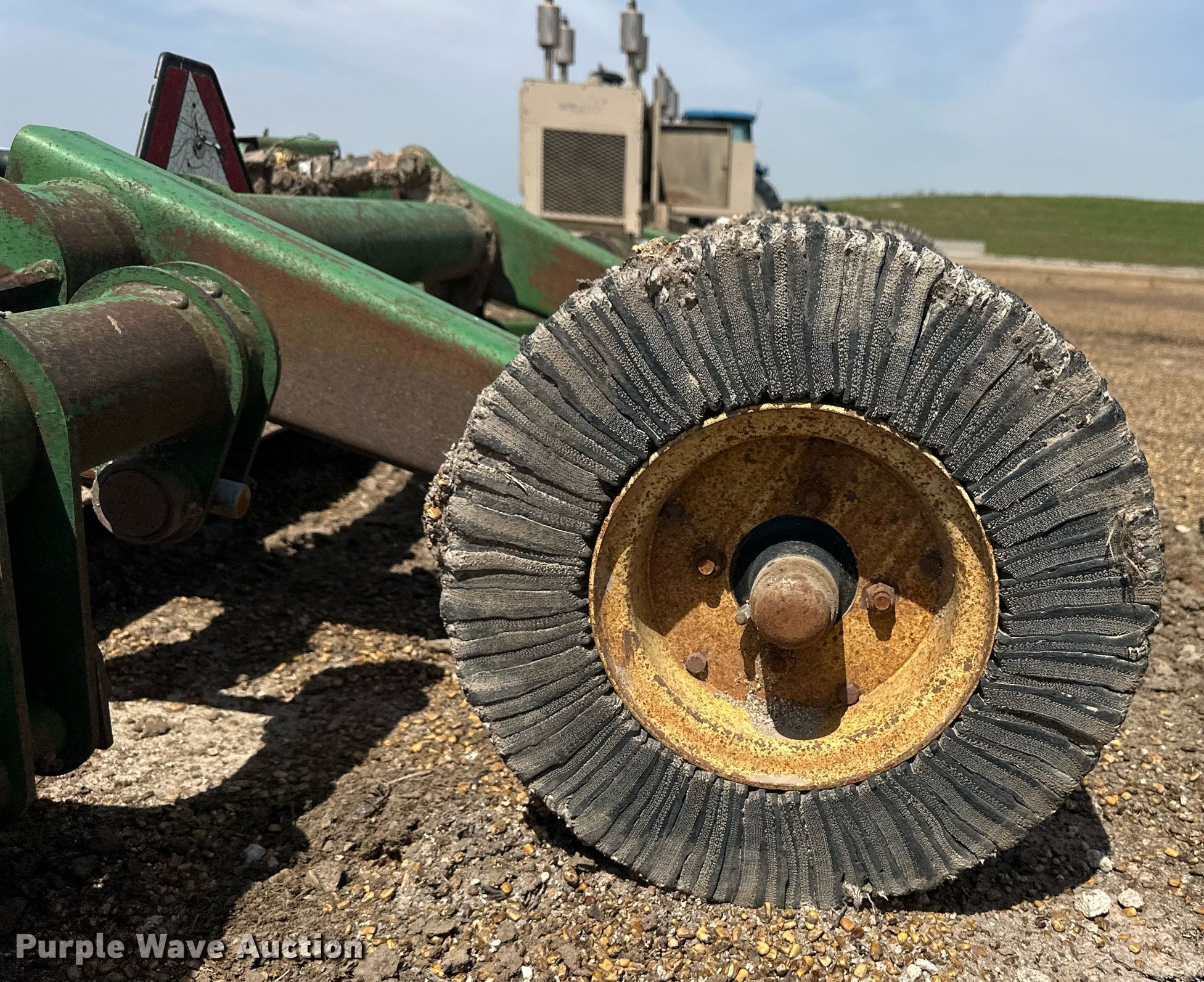 John Deere 1518 rotary mower. Features. Width: 15', Hydraulic lift, Hydraulic fold, PTO: 1 3/4" 1000. Tires Solid. Royal Beef Feed Yard. Scott City, KS 67871