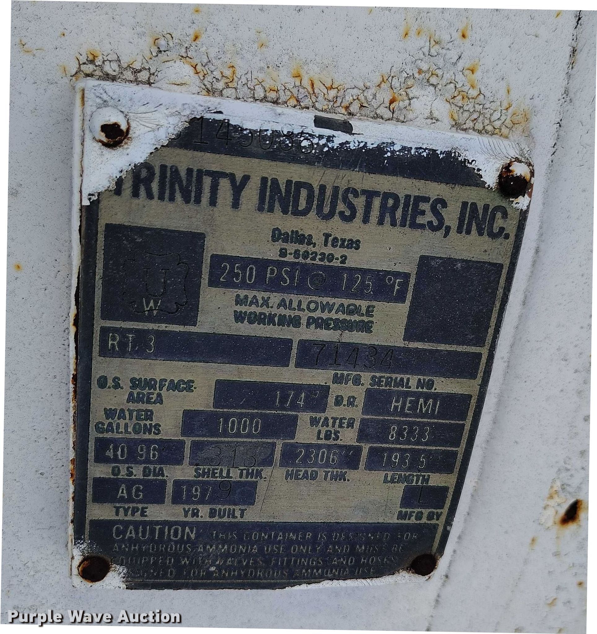 Purple Wave is selling a used Applicator Attach. in Colorado. This item is a 1979 Trinity NH3 tank trailer with the following: Serial: 71434
