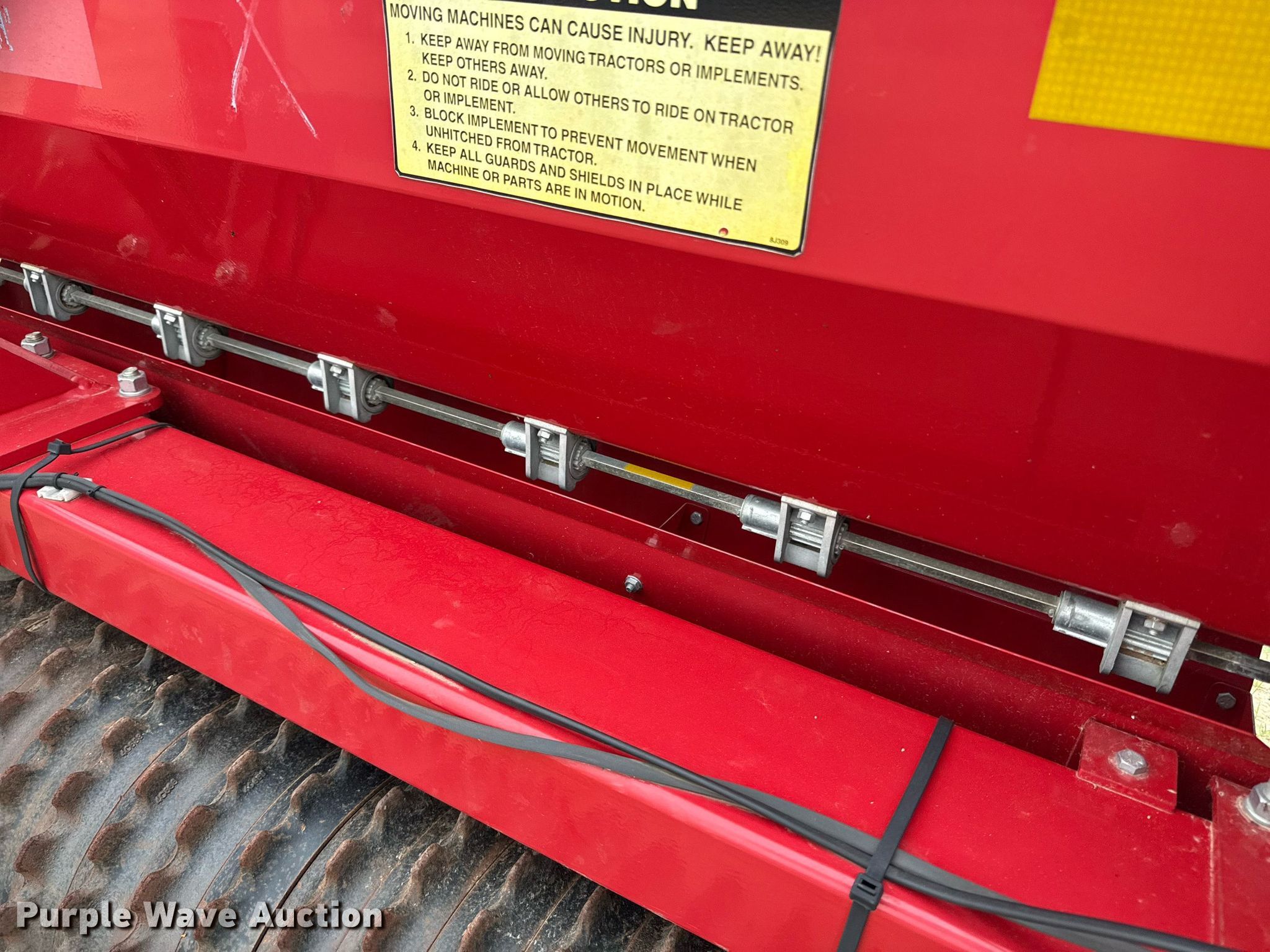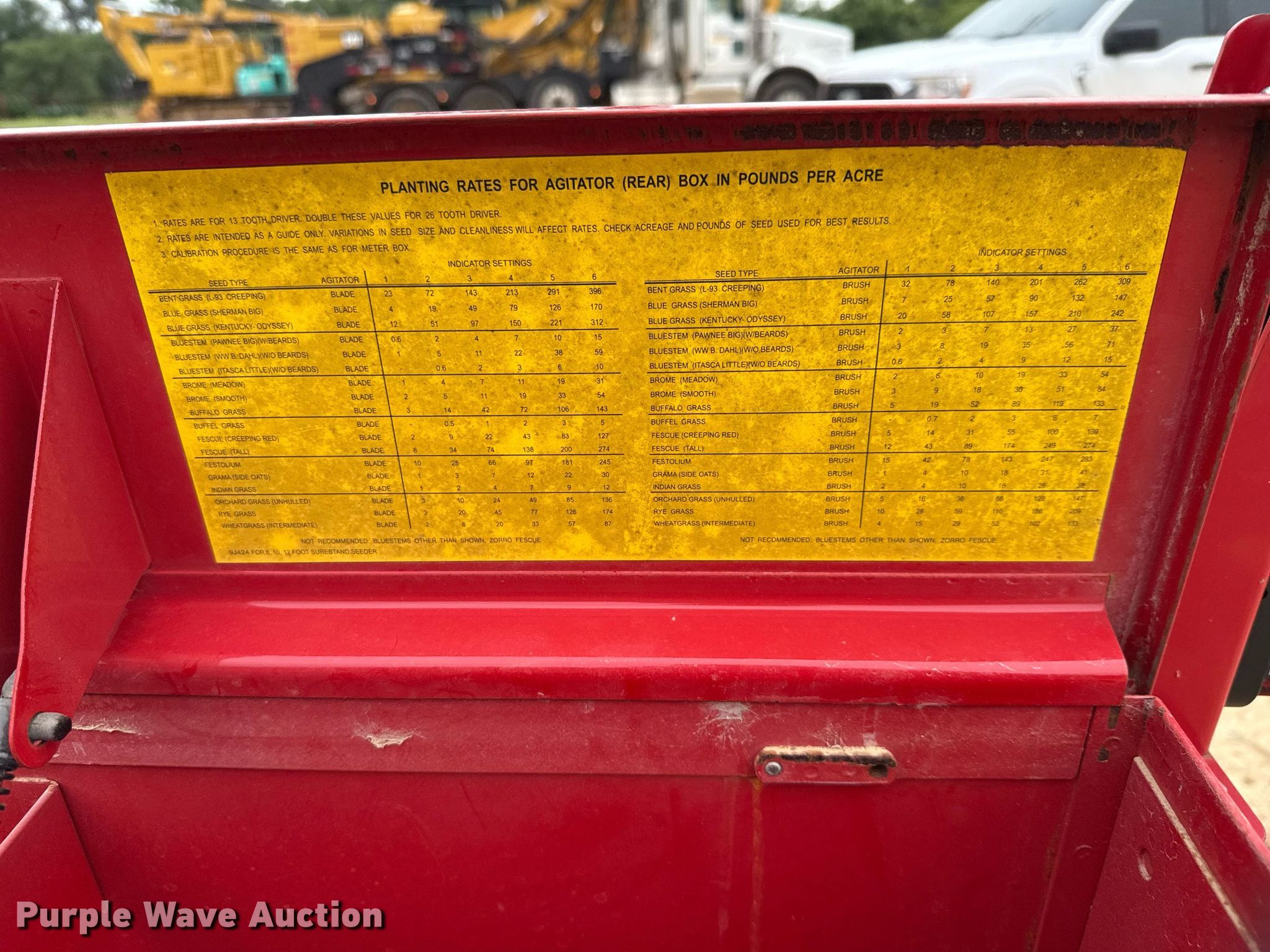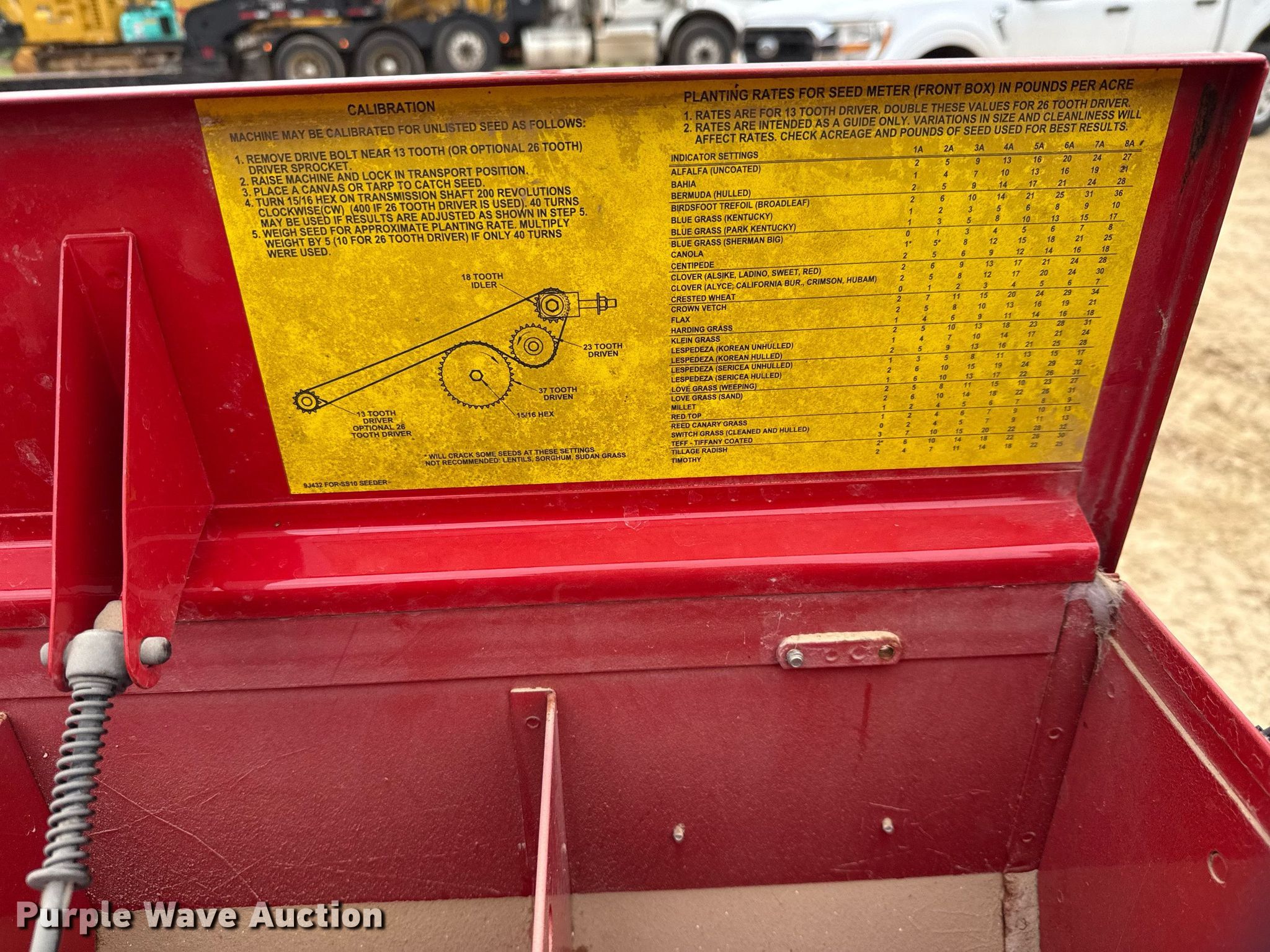 Landoll Brillion SSBP10 overseeder. Width: 10', Row units: 14, Row spacing: 8", Serial: ASK1802679. Features Frame Hitch: Three point, Seed delivery Bulk fill system, Row units Meter drive: Ground. Brewer Land and Cattle LP. Buffalo, TX 75831