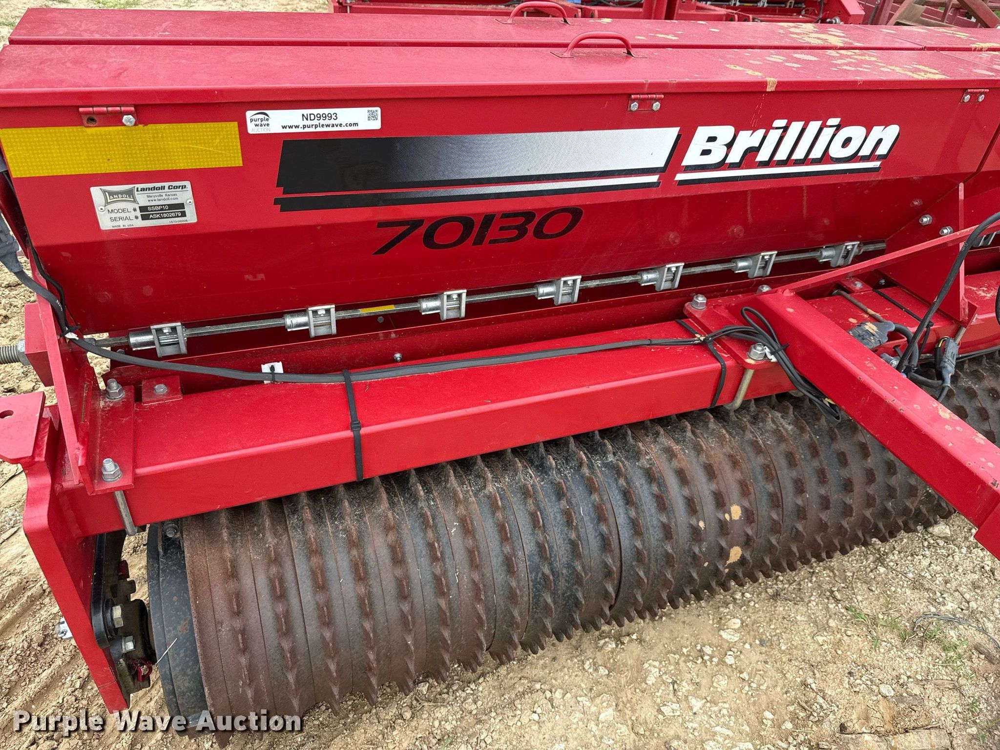 Purple Wave is selling a used Grain Drill or Seeder in Texas. This item is a Landoll Brillion SSBP10 overseeder with the following: Width: 10', Row units: 14, Row spacing: 8", Serial: ASK1802679