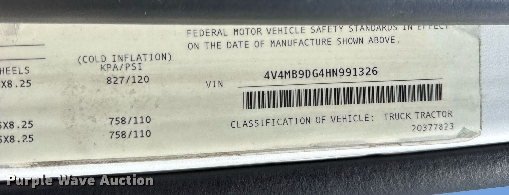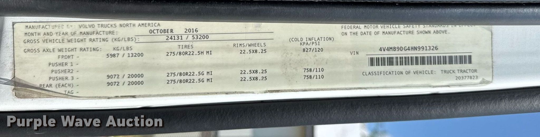 Purple Wave is selling a used Truck Tractor in Ohio. This item is a 2017 Volvo VNM semi truck with the following: Miles: 531,304 on odometer, Hours: 15,987 on meter, VIN: 4V4MB9DG4HN991326, Unit #: 47