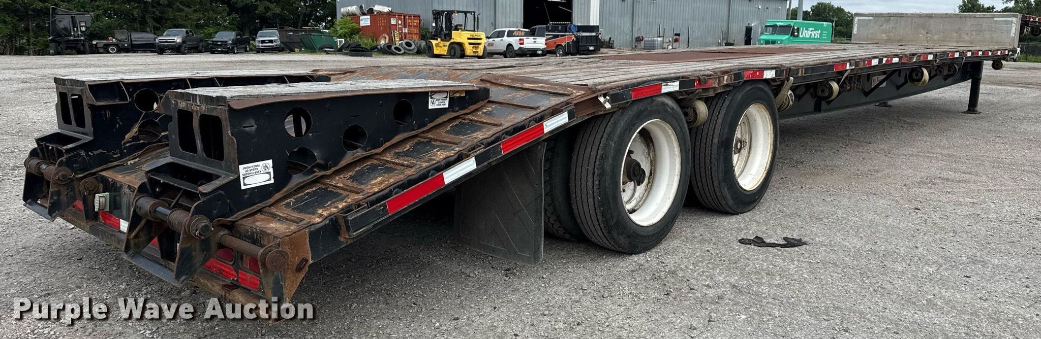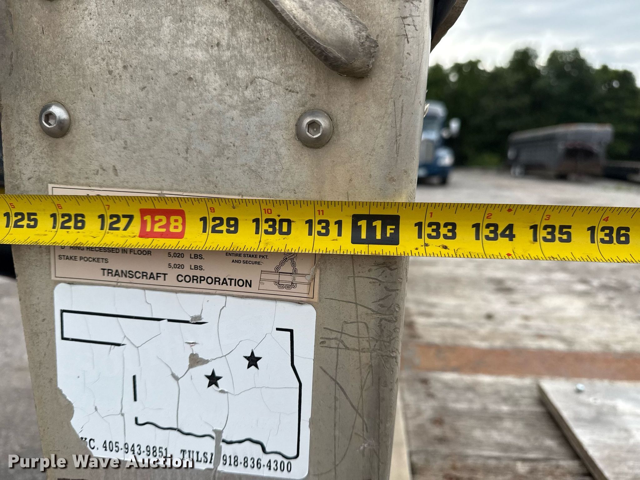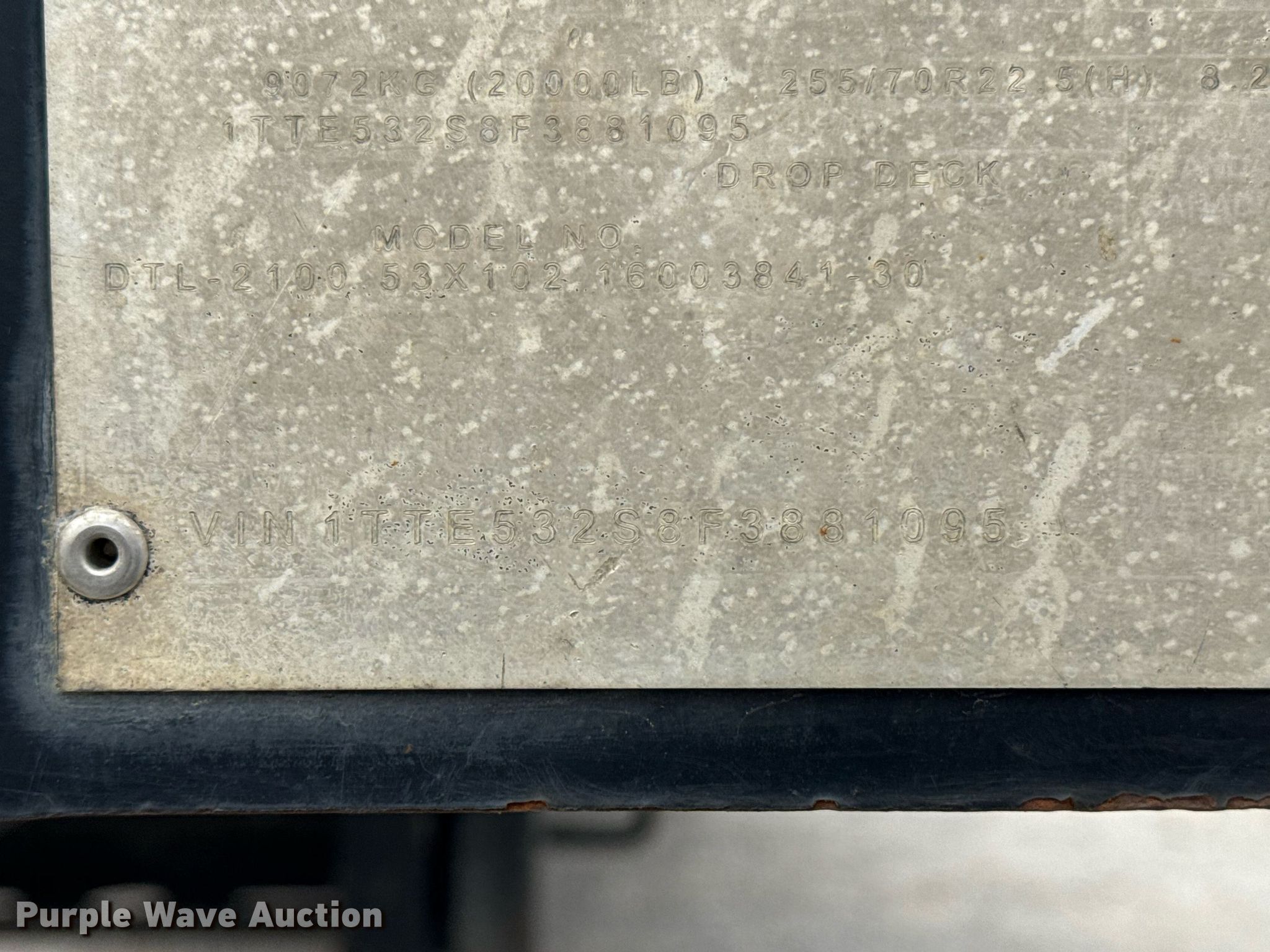 2015 Transcraft drop deck equipment trailer. VIN: 1TTE532S8F3881095. Dimensions Overall: 50' L x 102" W, Deck: 32' L x 92" W, Top deck length: 12', Tail length: 6', Ramps: Manual Length: 4' 6". Features Deck type: Wood. Chassis Landing gear: Dual, Suspension: Air, Brakes: Air, Axles: Tandem. Tires Steel wheels, Size: 255/70R22.5. Oklahoma title. Title has a lien that will be released following the close of the auction. Title distribution may be delayed up to 30 days from verification of funds. ARKK Trucking, Inc.. Sand Springs, OK 74063