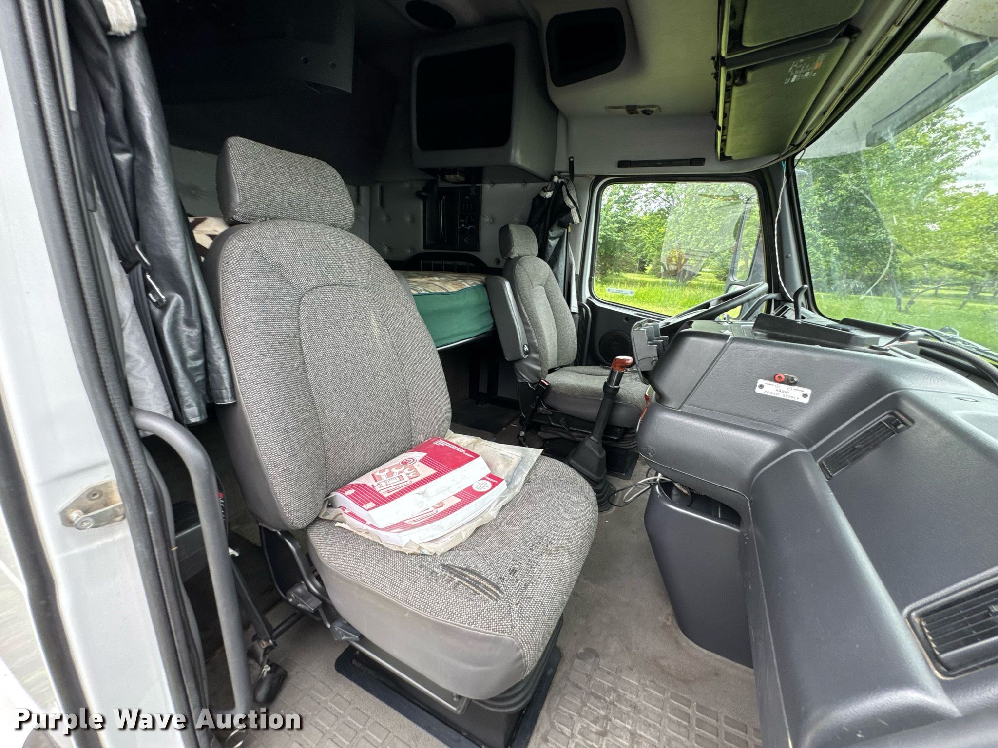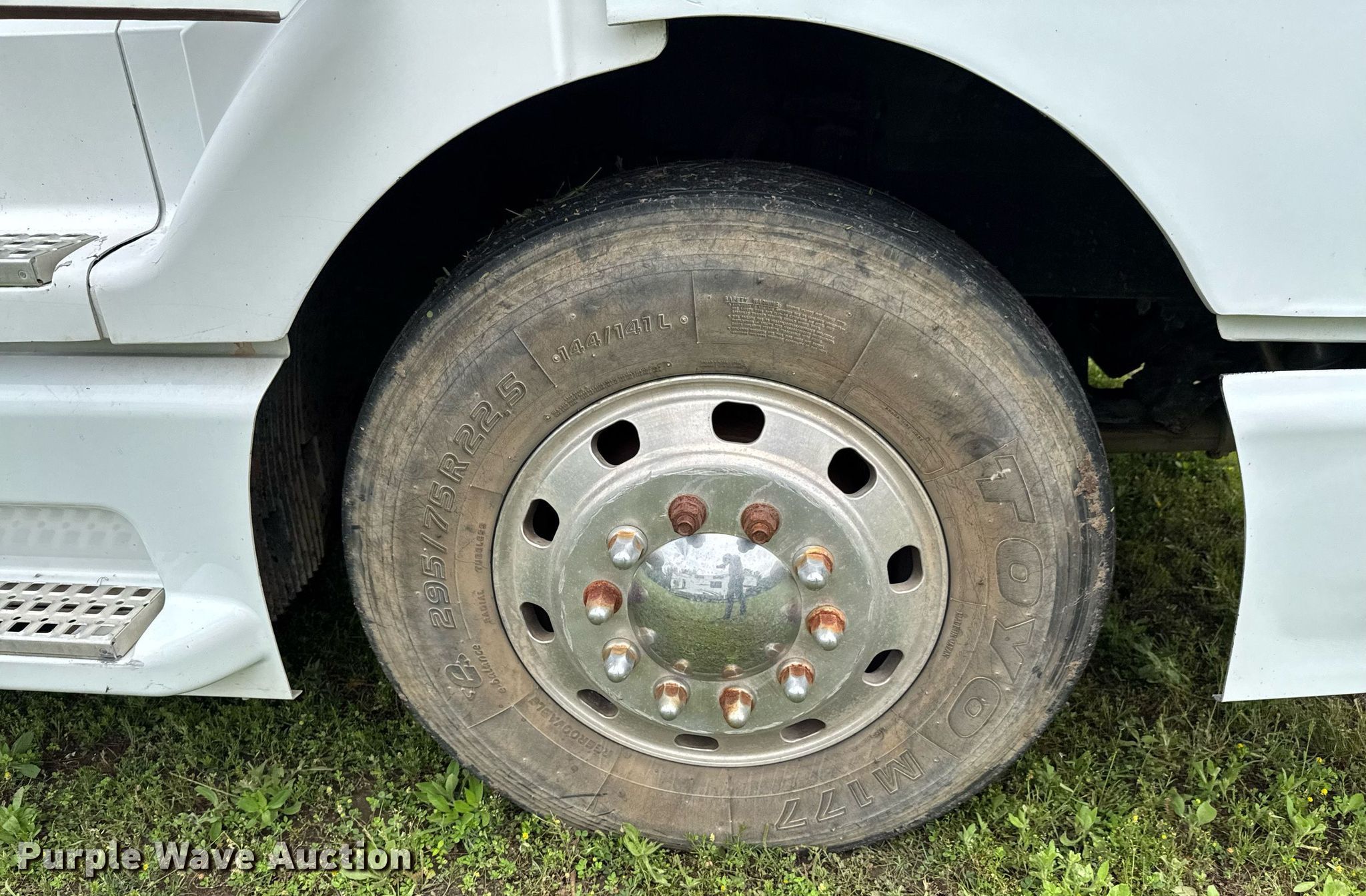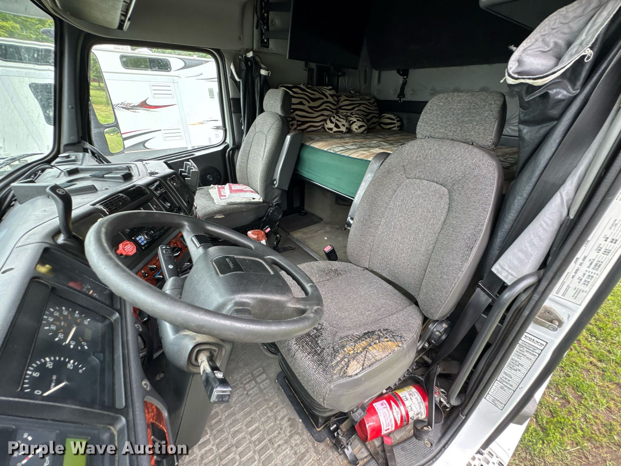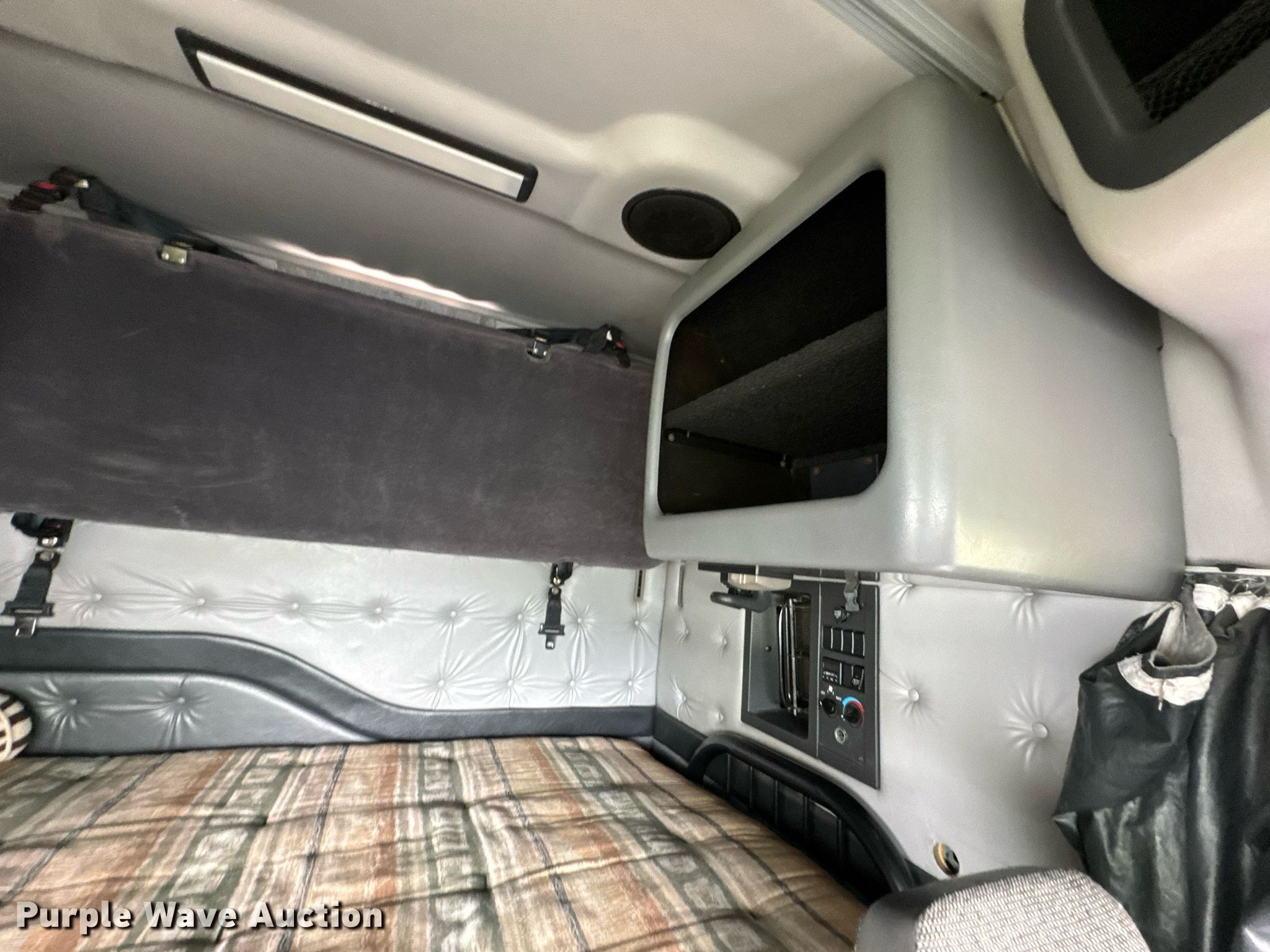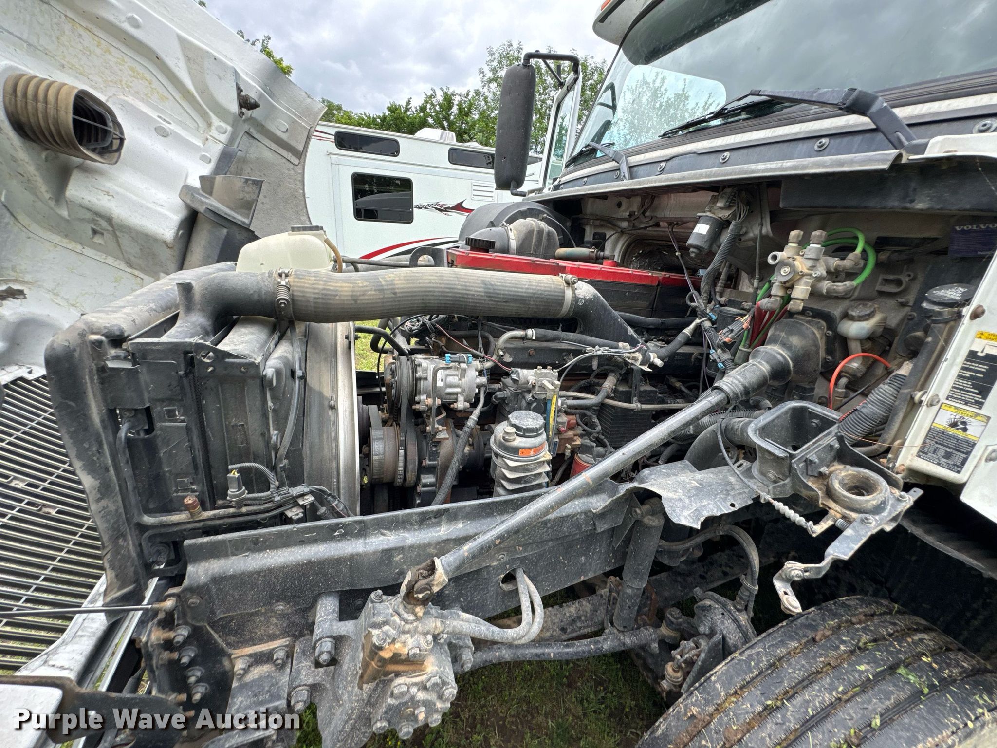 1999 Volvo VNL flatbed truck. Miles: 763,500 on odometer, VIN: 4VG7DBJH3XN773987. Engine Cummins N14, Displacement: 14.0L, Cylinders: 6, Fuel type: Diesel, Engine brake. Transmission Eaton Fuller, Manual, Speed: 10. Chassis Four wheel drive, Axles: Single, Differential lock: Inter-axle, Suspension: Air, Brakes: Air, GVWR: 49,828 lbs FAWR: 12,350 lbs, RAWR: 18,739 lbs. Interior AC, Heat, Heated mirrors, Power windows, Power locks, Cruise control, Air ride cab, Sleeper Sleeper length: 60", Beds: Double bunk, TV, Rear climate control, Auxiliary power unit Xantrex XPower 1500. Features Deck plate: Steel, Fuel tank: Dual, Gooseneck hitch, 8' L x 96" W. Tires Size: 295/75R22.5. California title. Title distribution may be delayed up to 30 days from verification of funds. Pontious Farm. Chanute, KS 66720