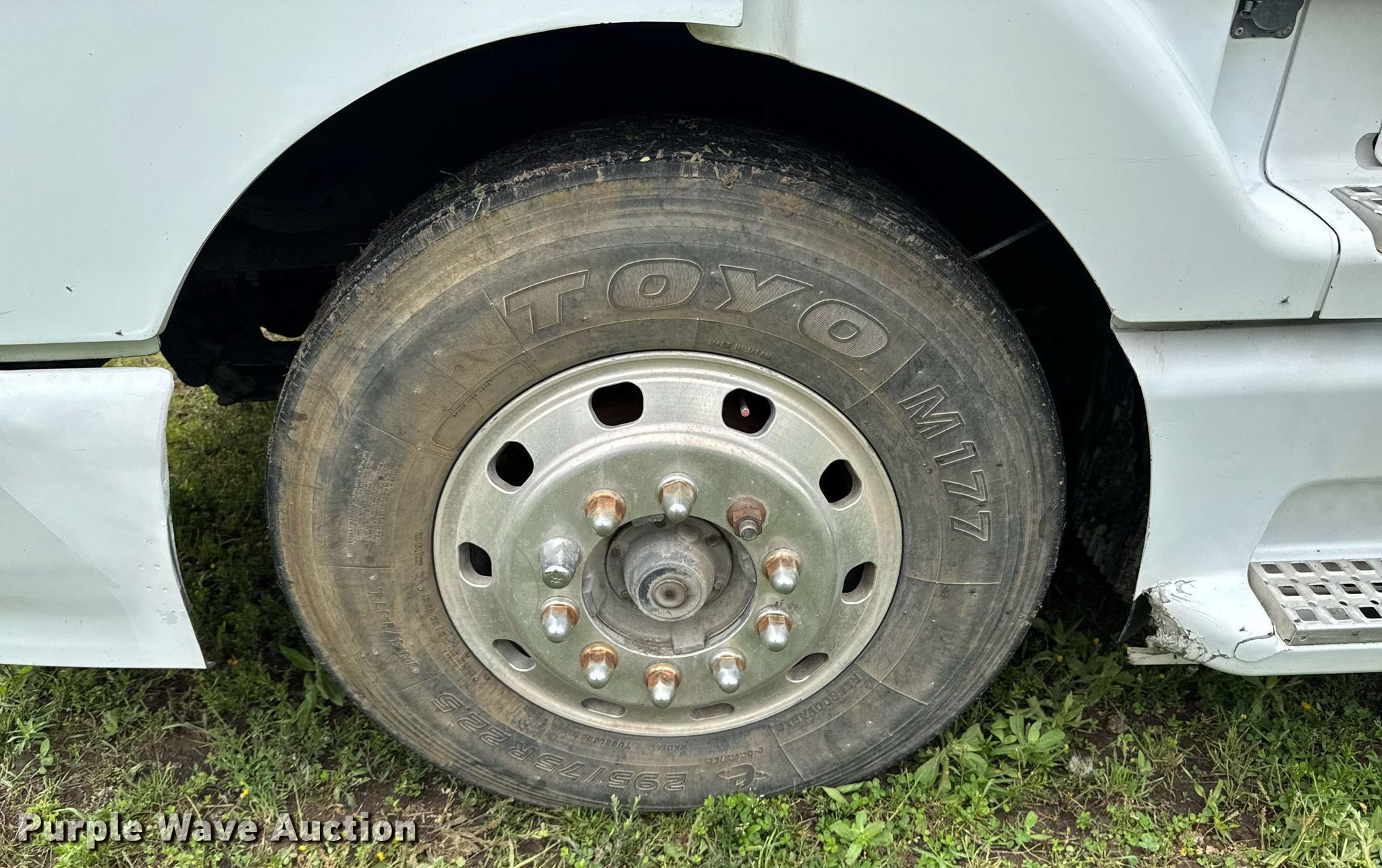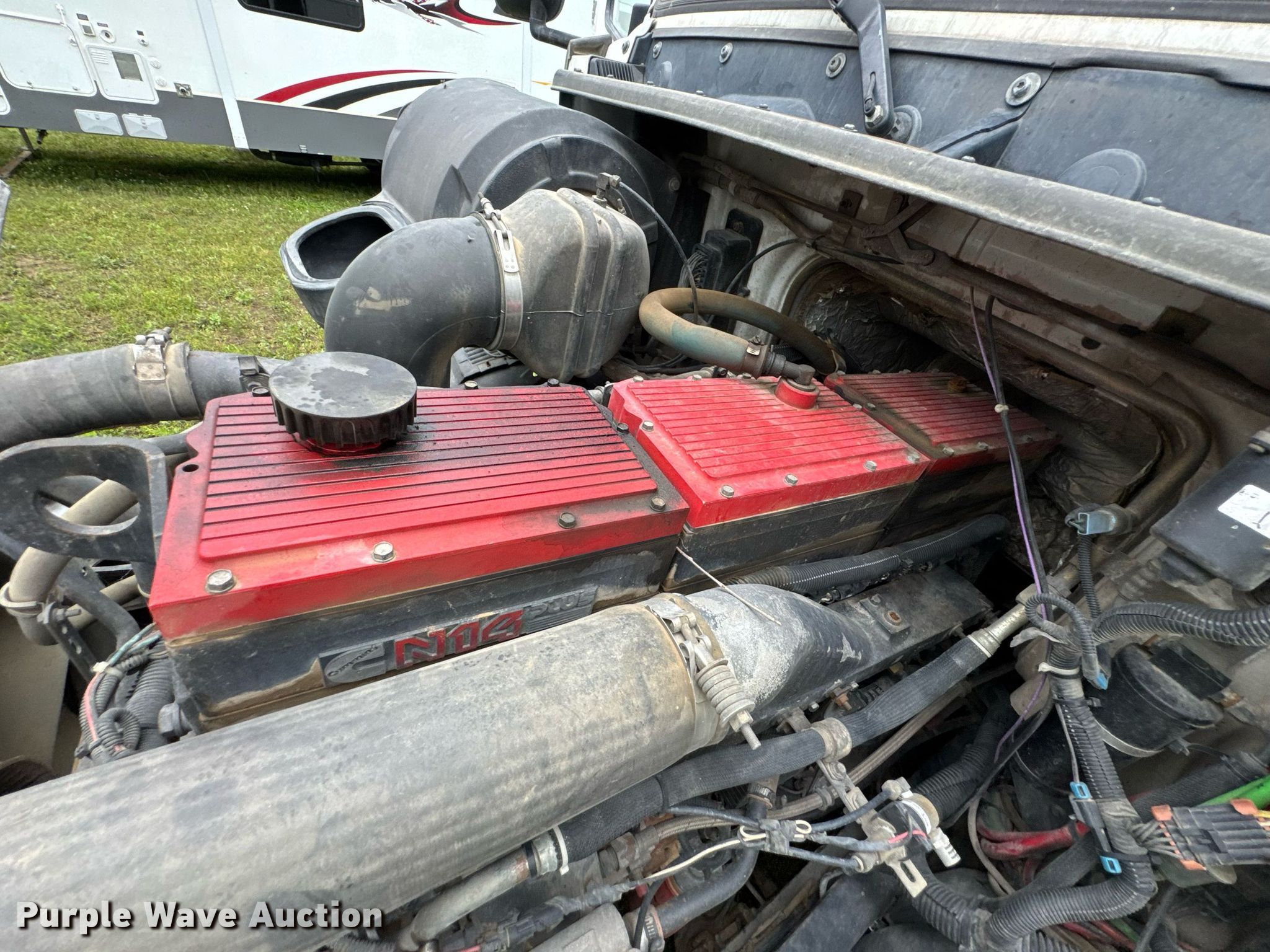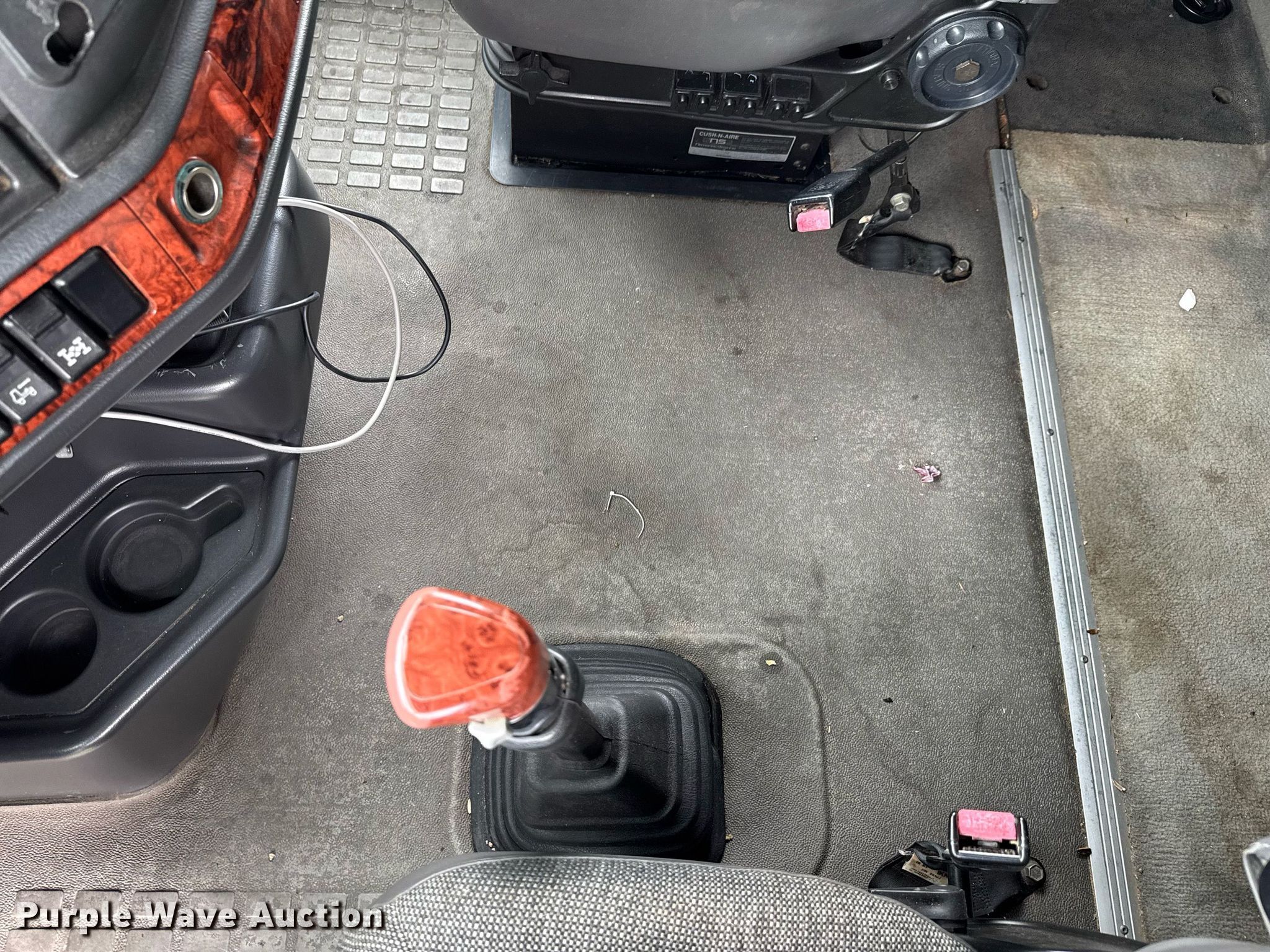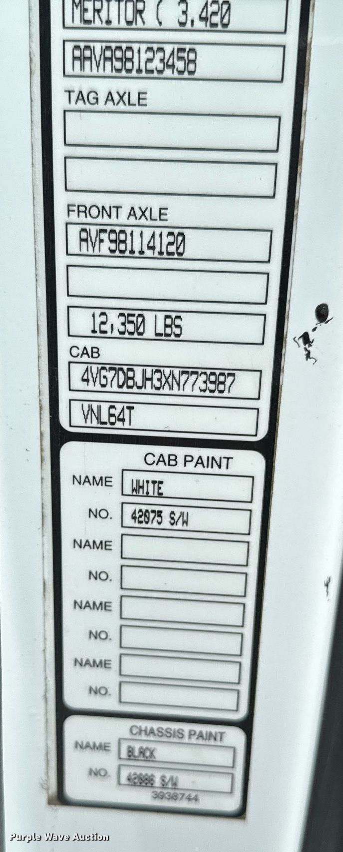 1999 Volvo VNL flatbed truck. Miles: 763,500 on odometer, VIN: 4VG7DBJH3XN773987. Engine Cummins N14, Displacement: 14.0L, Cylinders: 6, Fuel type: Diesel, Engine brake. Transmission Eaton Fuller, Manual, Speed: 10. Chassis Four wheel drive, Axles: Single, Differential lock: Inter-axle, Suspension: Air, Brakes: Air, GVWR: 49,828 lbs FAWR: 12,350 lbs, RAWR: 18,739 lbs. Interior AC, Heat, Heated mirrors, Power windows, Power locks, Cruise control, Air ride cab, Sleeper Sleeper length: 60", Beds: Double bunk, TV, Rear climate control, Auxiliary power unit Xantrex XPower 1500. Features Deck plate: Steel, Fuel tank: Dual, Gooseneck hitch, 8' L x 96" W. Tires Size: 295/75R22.5. California title. Title distribution may be delayed up to 30 days from verification of funds. Pontious Farm. Chanute, KS 66720