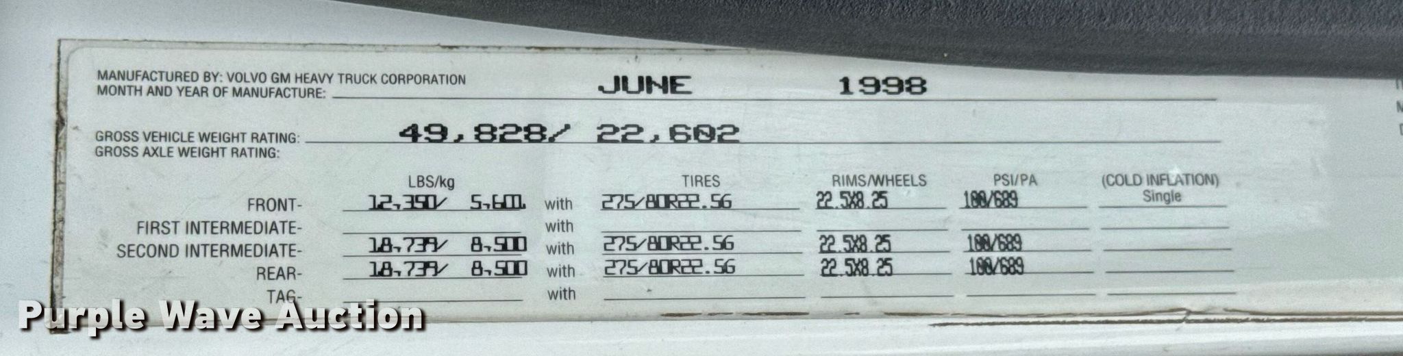 Take a look at this used 1999 Volvo VNL flatbed truck being sold on July 10th, 2025 in the SOLD! July 10 Truck and Trailer Auction made by Volvo. Take a look at all of the item information below or take a look at similar auctions for Trucks.