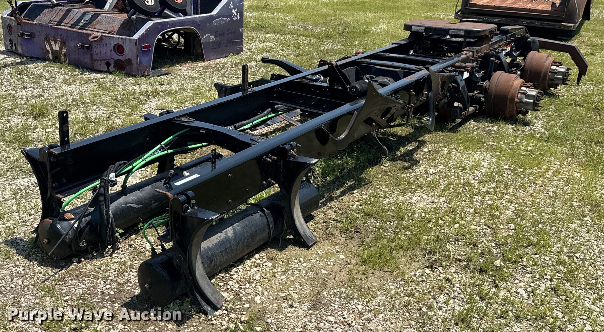 Purple Wave is selling a used Truck Part and Attach. in Kansas. This item is a Truck chassis with the following: 19' 6" L x 34" W, Axles: Tandem, Suspension: Air, Fifth wheel plate: Fixed