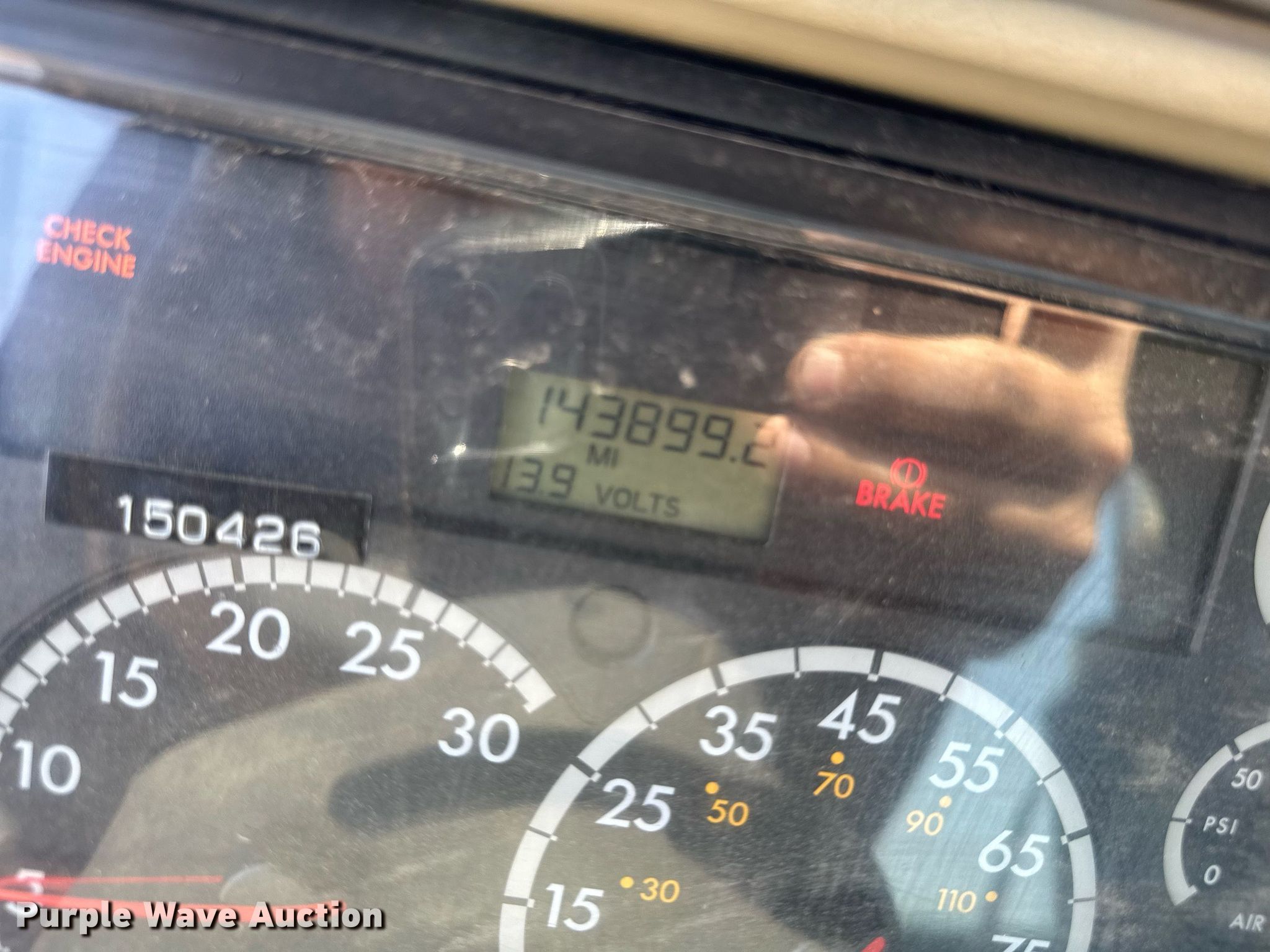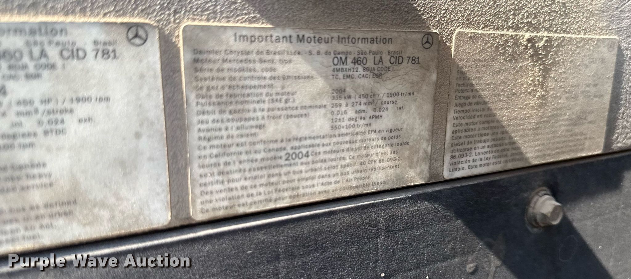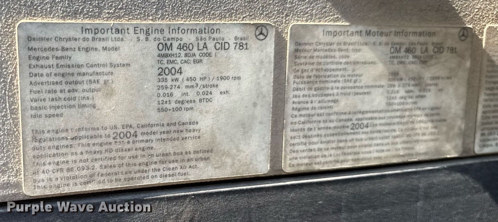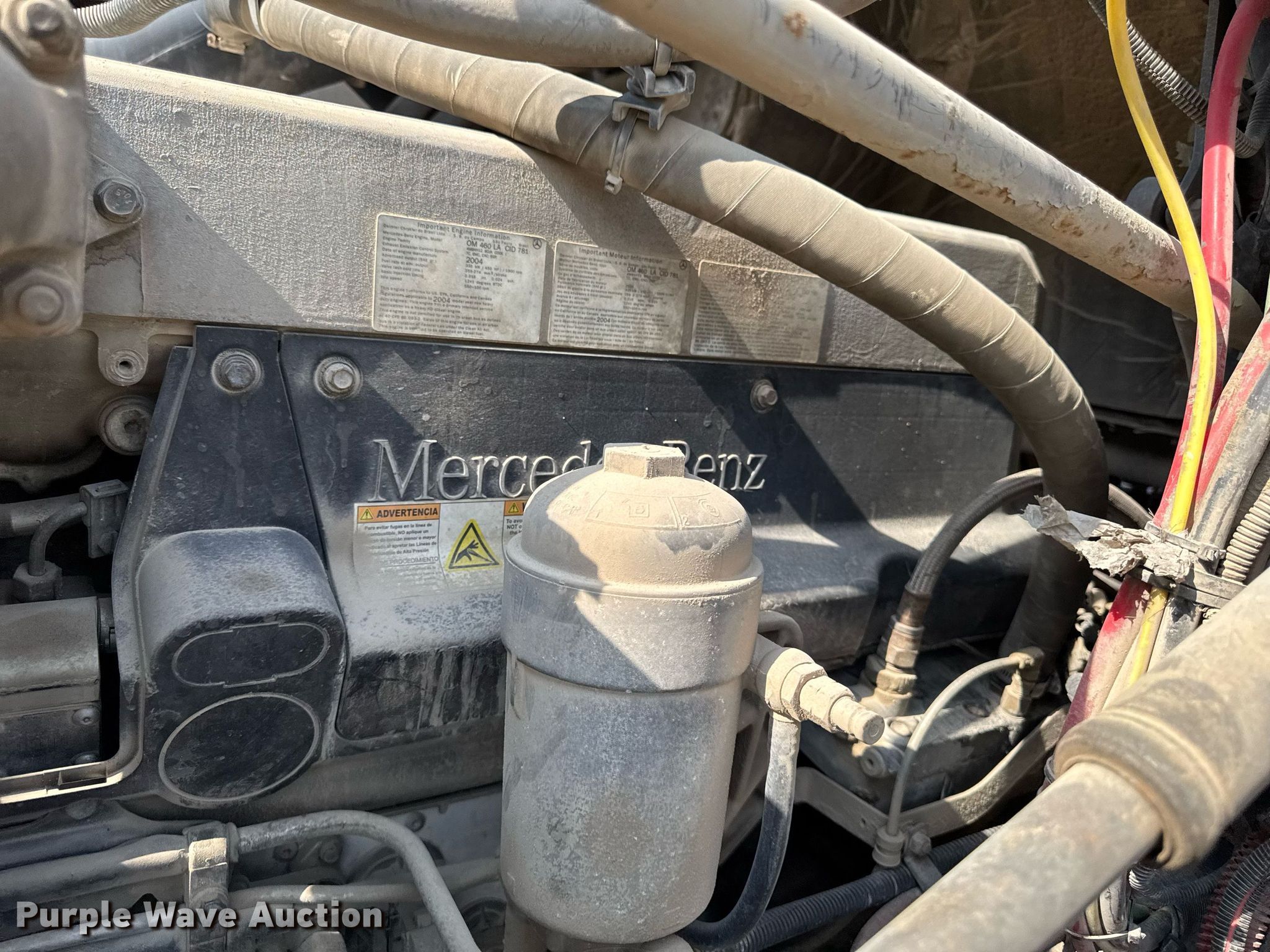 2005 Freightliner Columbia semi truck. Miles: 678,772 on odometer, Hours: 844 on meter, VIN: 1FUJA6CV55LN49588. Engine Mercedes-Benz MBE4000, Displacement: 12.8L, Cylinders: 6, Fuel type: Diesel, Engine brake. Transmission Manual, Speed: 10. Chassis Axles: Tandem, Differential lock: Inter-axle, Suspension: Air Dump valves, Brakes: Air, PTO, Wet kit, Truck chassis: 176", GVWR: 52,000 lbs. Interior AC, Heat, Heated mirrors, Power windows, Power locks, Cruise control, Air ride cab. Features Deck plate: Aluminum, Fifth wheel type: Air operated, Sliding, Fuel tank: Dual. Tires Size: 295/75R22.5. Notes Dash warning indicator: Check engine, Windshield chipped or cracked. Iowa title. Title distribution may be delayed up to 14 days from verification of funds. Rite Environmental, Inc.. Waterloo, IA 50703