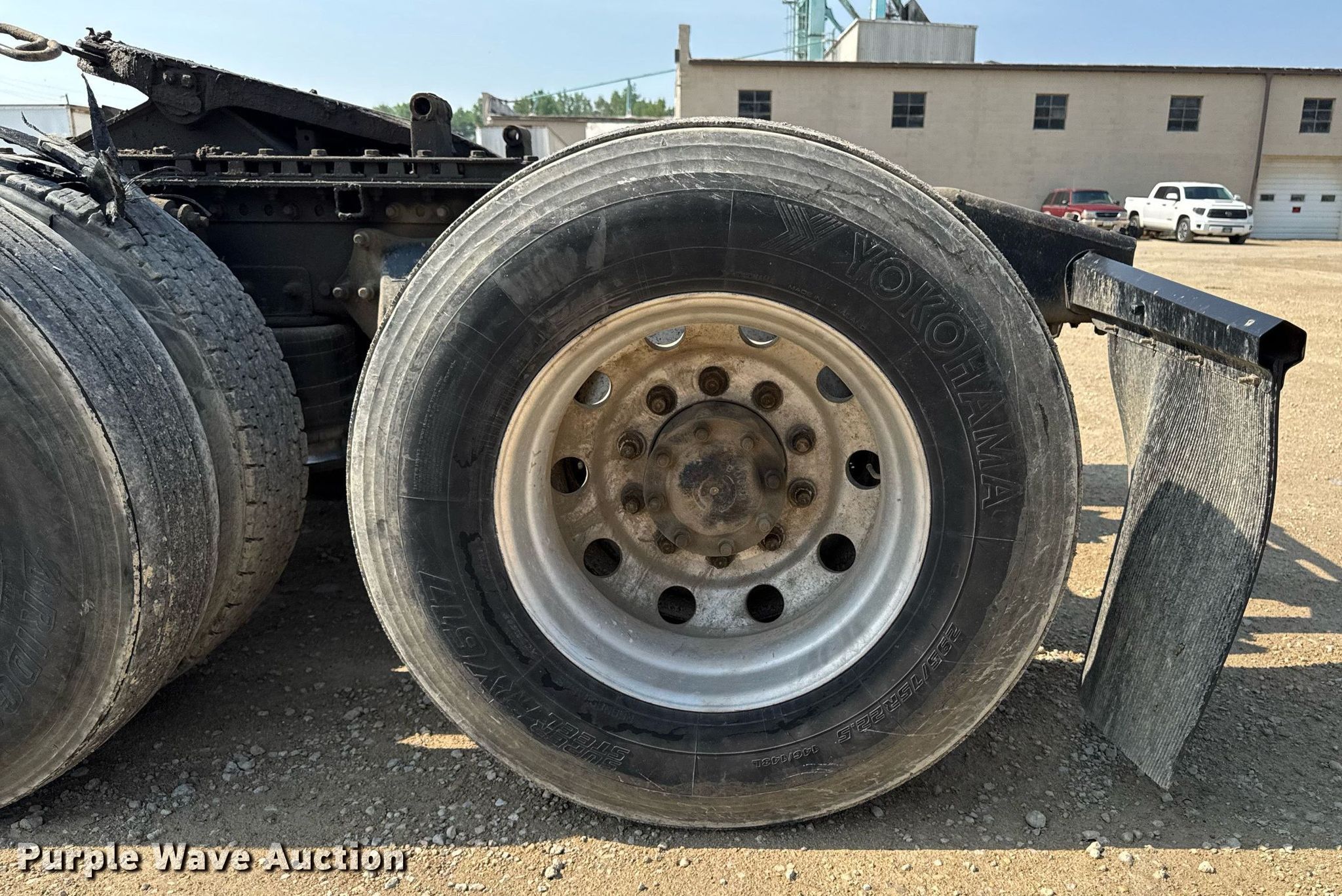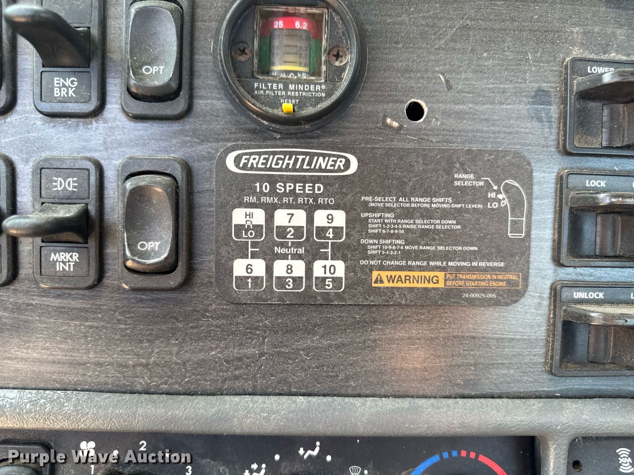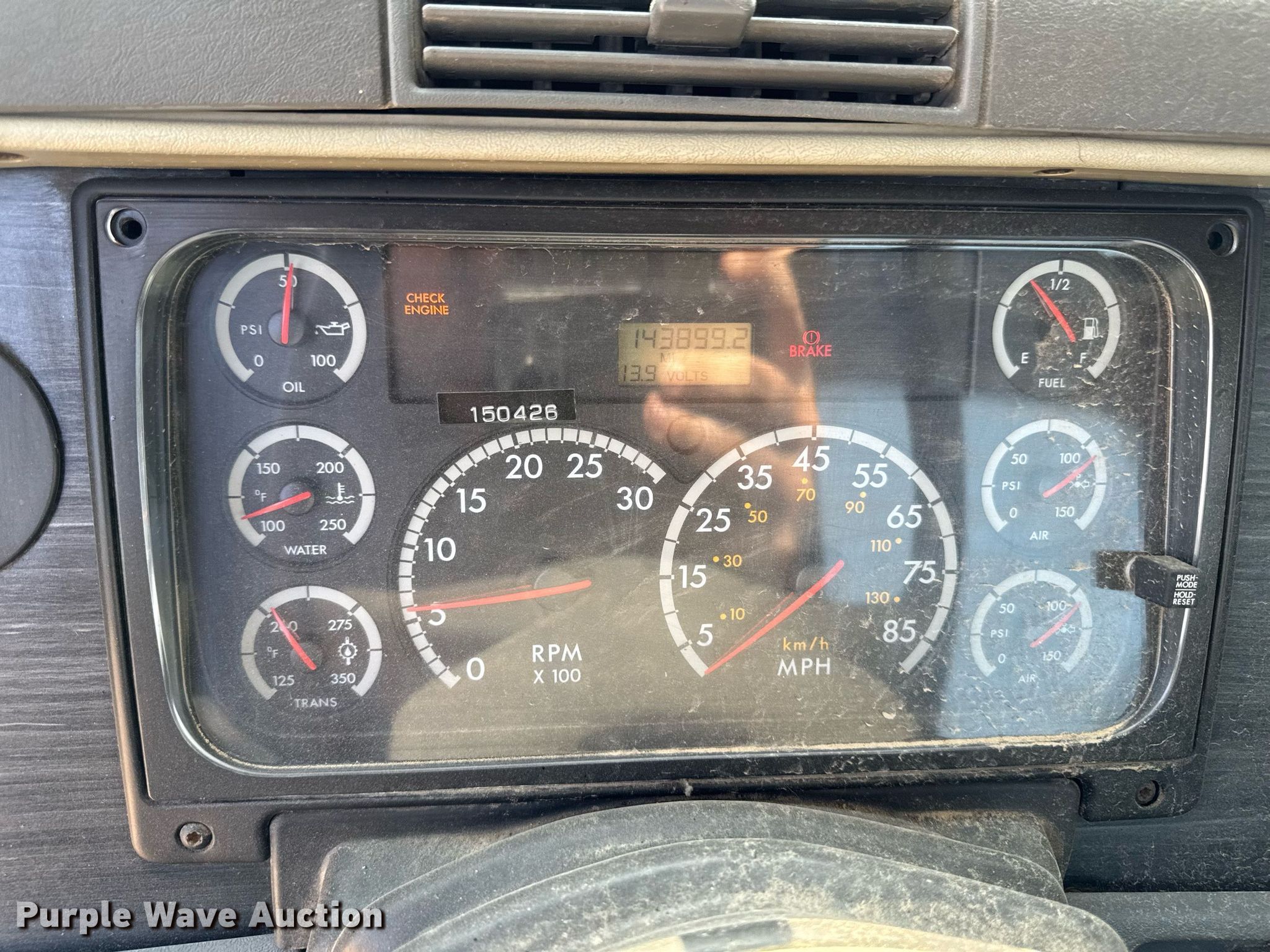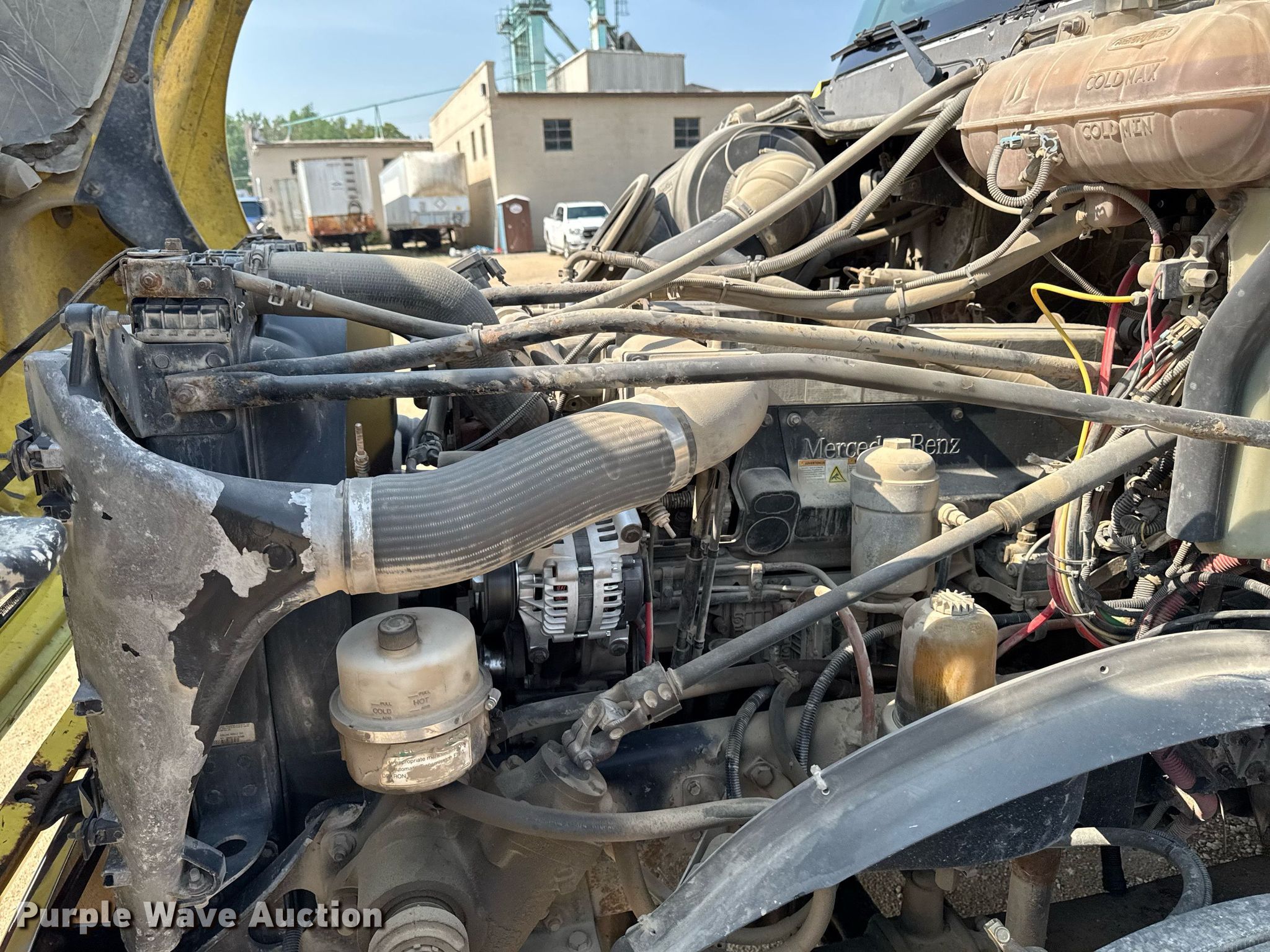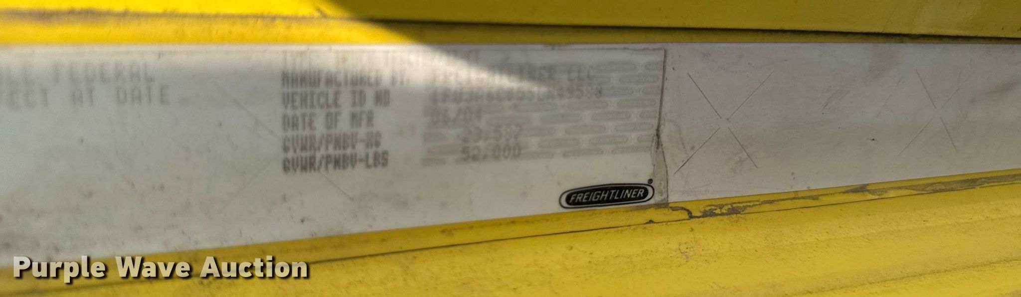 2005 Freightliner Columbia semi truck. Miles: 678,772 on odometer, Hours: 844 on meter, VIN: 1FUJA6CV55LN49588. Engine Mercedes-Benz MBE4000, Displacement: 12.8L, Cylinders: 6, Fuel type: Diesel, Engine brake. Transmission Manual, Speed: 10. Chassis Axles: Tandem, Differential lock: Inter-axle, Suspension: Air Dump valves, Brakes: Air, PTO, Wet kit, Truck chassis: 176", GVWR: 52,000 lbs. Interior AC, Heat, Heated mirrors, Power windows, Power locks, Cruise control, Air ride cab. Features Deck plate: Aluminum, Fifth wheel type: Air operated, Sliding, Fuel tank: Dual. Tires Size: 295/75R22.5. Notes Dash warning indicator: Check engine, Windshield chipped or cracked. Iowa title. Title distribution may be delayed up to 14 days from verification of funds. Rite Environmental, Inc.. Waterloo, IA 50703