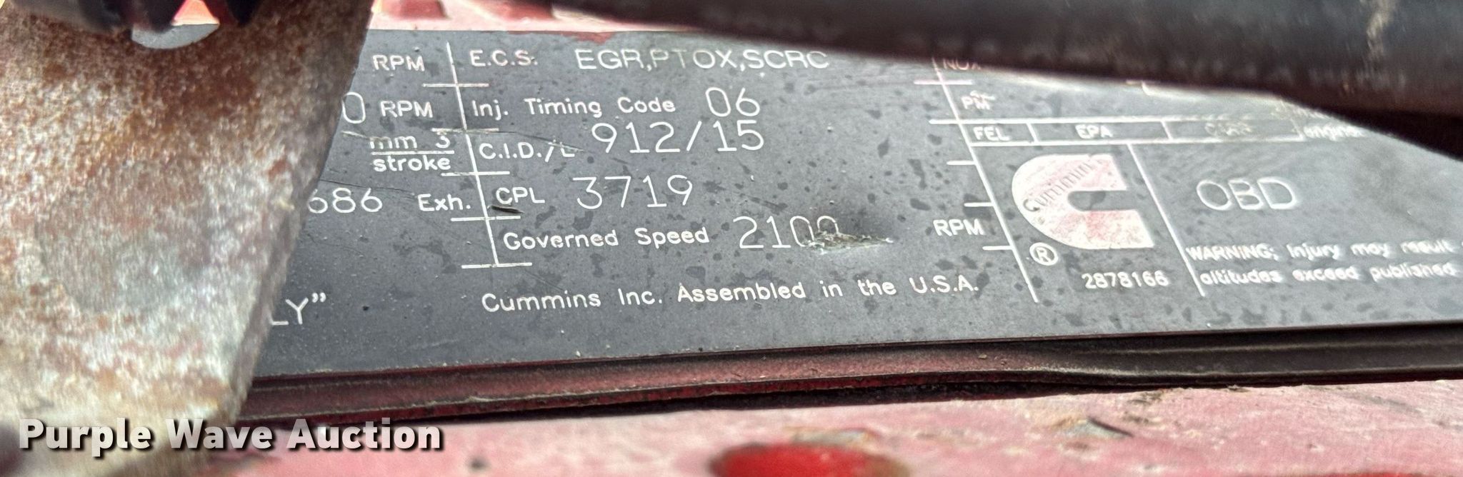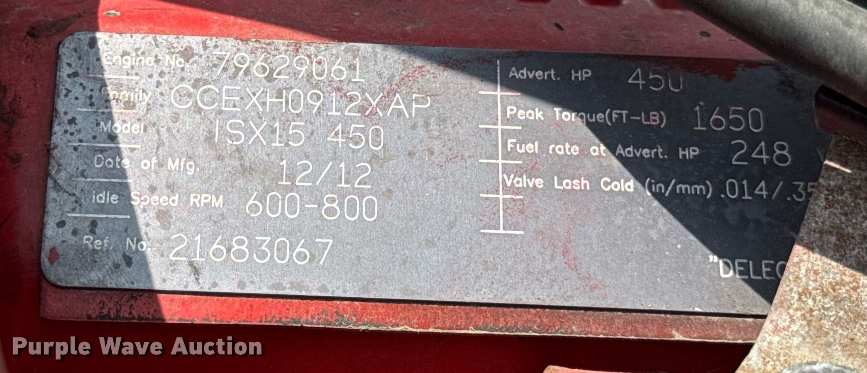 2013 Volvo VNL semi truck. Miles: 1,017,265 on odometer, VIN: 4V4NC9TH1DN150201, Unit #: 7346. Engine Cummins ISX15, Serial: 79629061, Displacement: 15.0L, Cylinders: 6, Fuel type: Diesel, HP: 450. Transmission Eaton Fuller, Manual, Speed: 10. Chassis Axles: Tandem, Differential lock: Inter-axle, Suspension: Air Dump valves, Brakes: Air, GVWR: 52,000 lbs FAWR: 12,000 lbs, IAWR: 20,000 lbs, RAWR: 20,000 lbs. Interior AC, Heat, Heated mirrors, Power windows, Power locks, Cruise control, Air ride cab. Features Deck plate: Aluminum, Fifth wheel type: Air operated, Sliding, Fuel tank: Dual. Tires Size: 275/80R22.5. Notes Windshield chipped or cracked, Possible AC issues, may need charged. Oklahoma title. Title distribution may be delayed up to 30 days from verification of funds. Hiland Dairy. New Bloomfield, MO 65063
