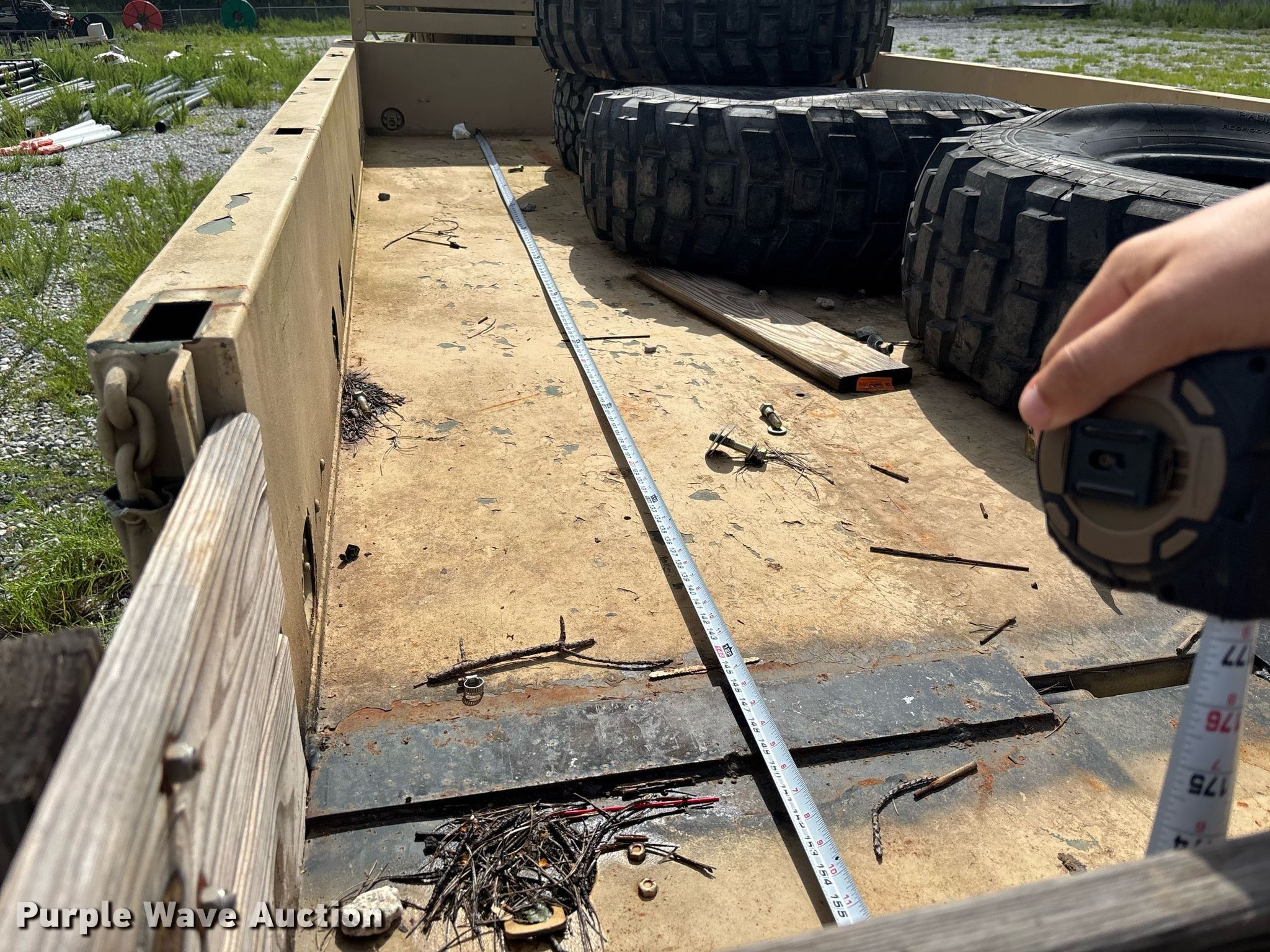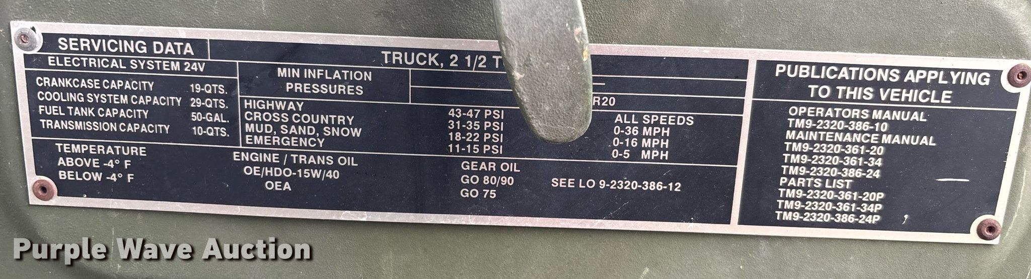 2001 AM General M35A3 flatbed truck. Miles: 7,404 on odometer, Hours: 610 on meter, VIN: 2320013832047. Engine Caterpillar 3116, Displacement: 6.6L, Cylinders: 6, Fuel type: Diesel. Transmission Automatic. Chassis Six wheel drive, Axles: Tandem, Suspension: Spring, Brakes: Air, GVWR: 13,900 lbs. Interior Heat. Features Flatbed 14' L x 94" W. Tires Size: 14.5R20 XL. Notes Wheel damaged, needs replaced, Flat tires, (4) additional tires included, Dead battery, Non-operational unit Unit must be towed or hauled. Transfer of ownership documentation will be a bill of sale. Southern Utility Group. Thomson, GA 30808