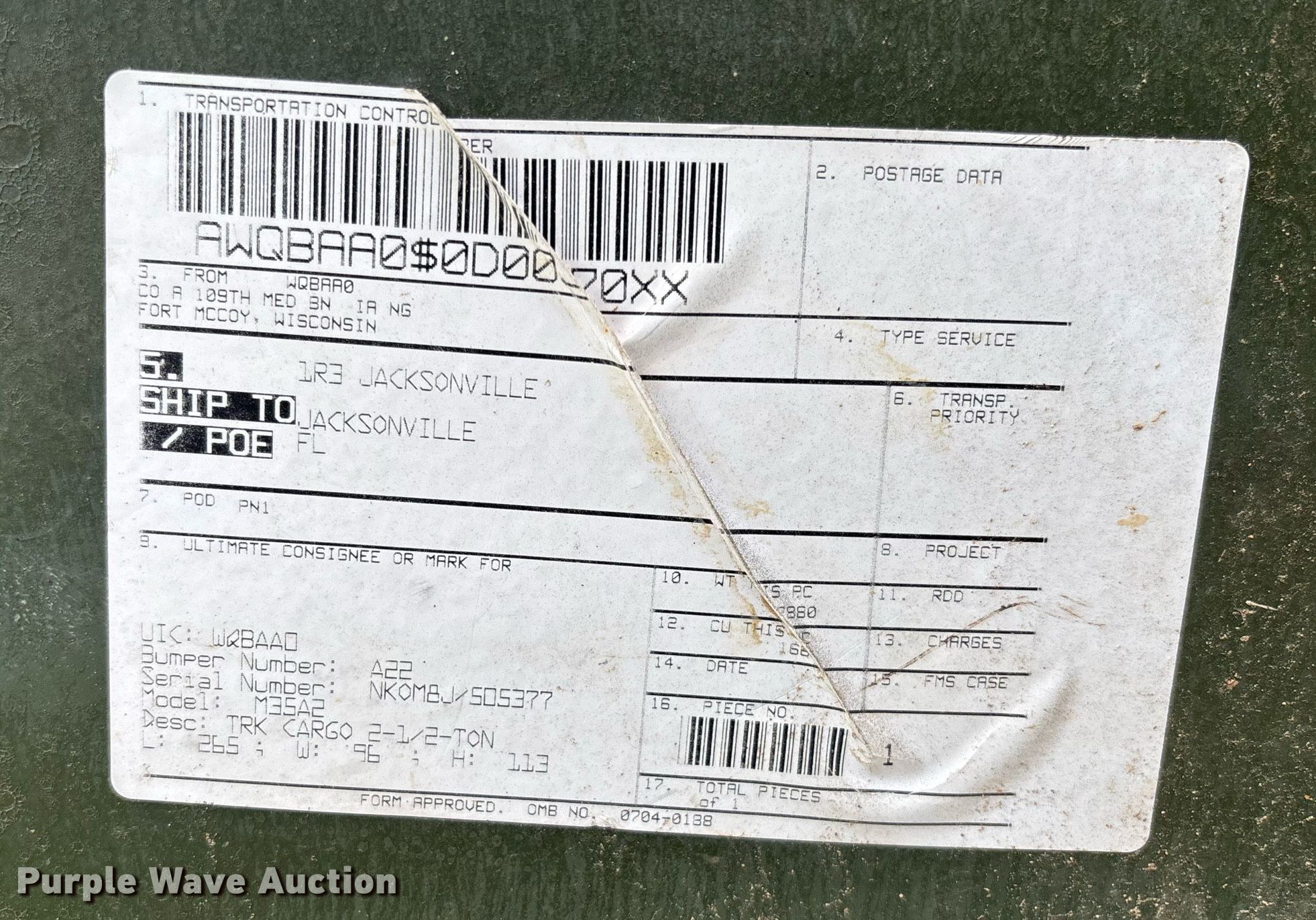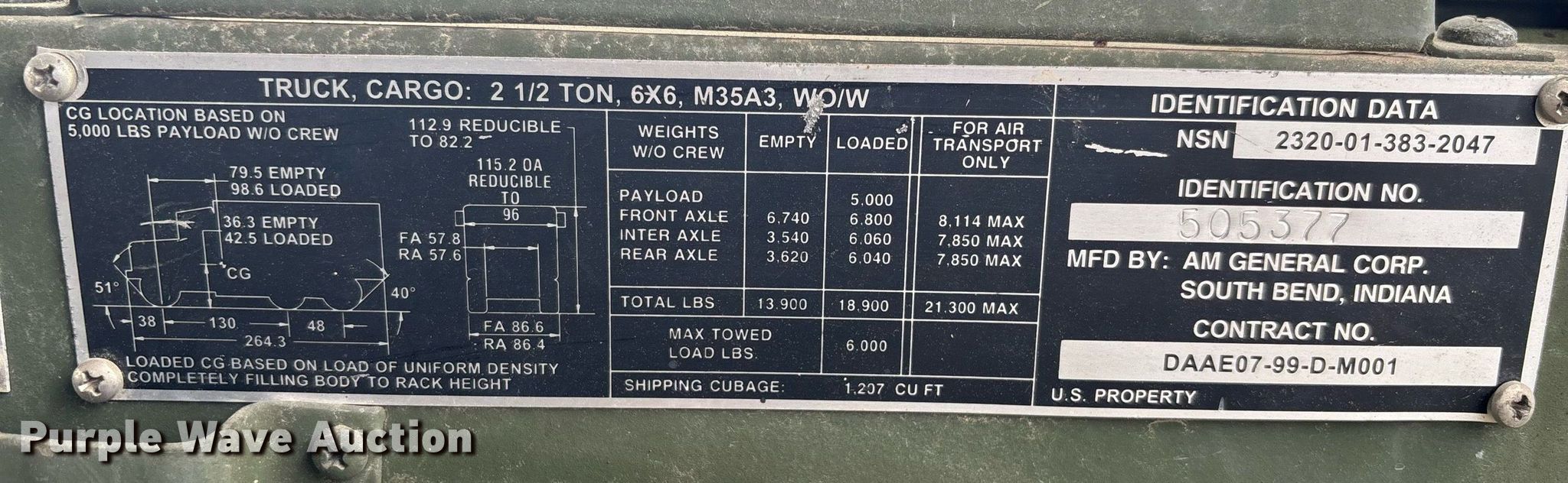Purple Wave is selling a used Flat Bed Truck in Georgia. This item is a 2001 AM General M35A3 flatbed truck with the following: Miles: 7,404 on odometer, Hours: 610 on meter, VIN: 2320013832047