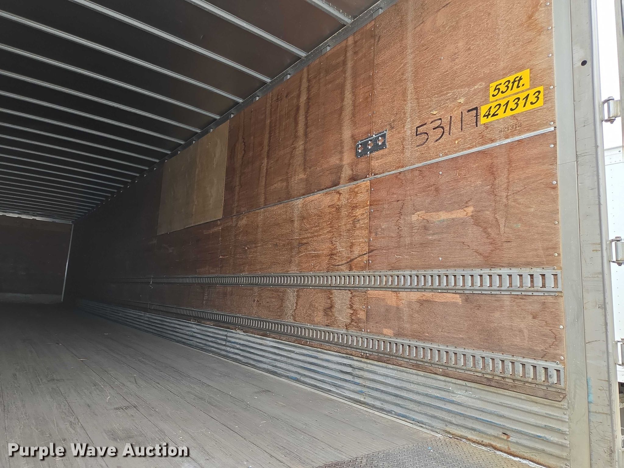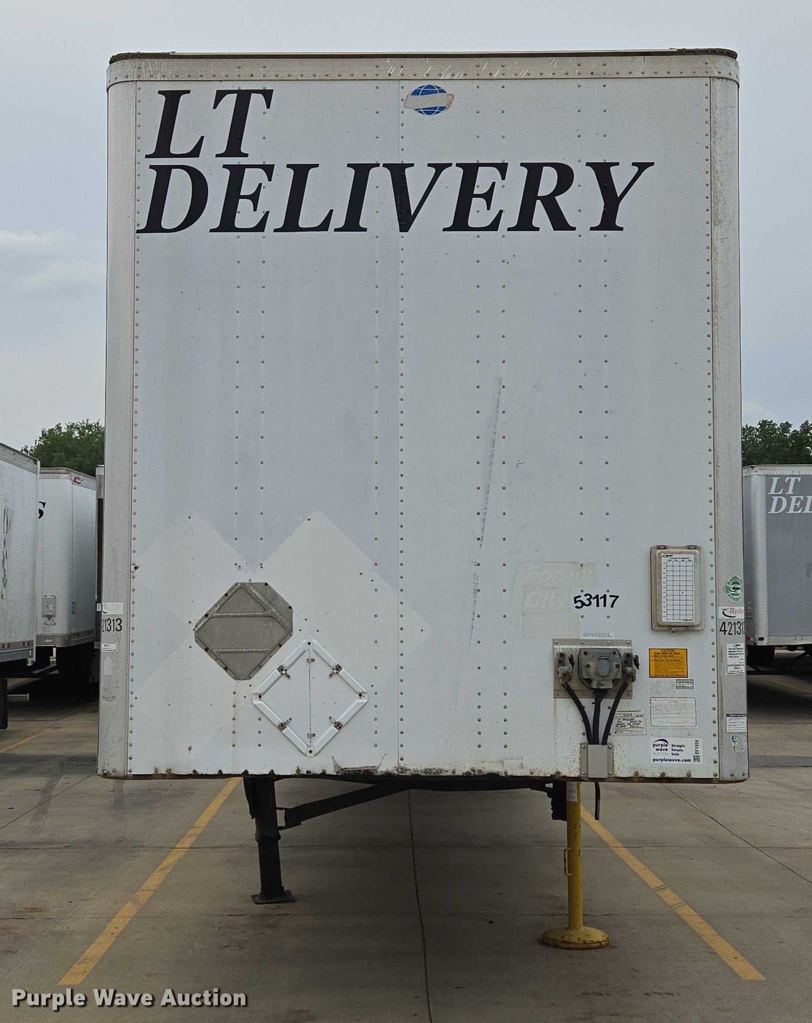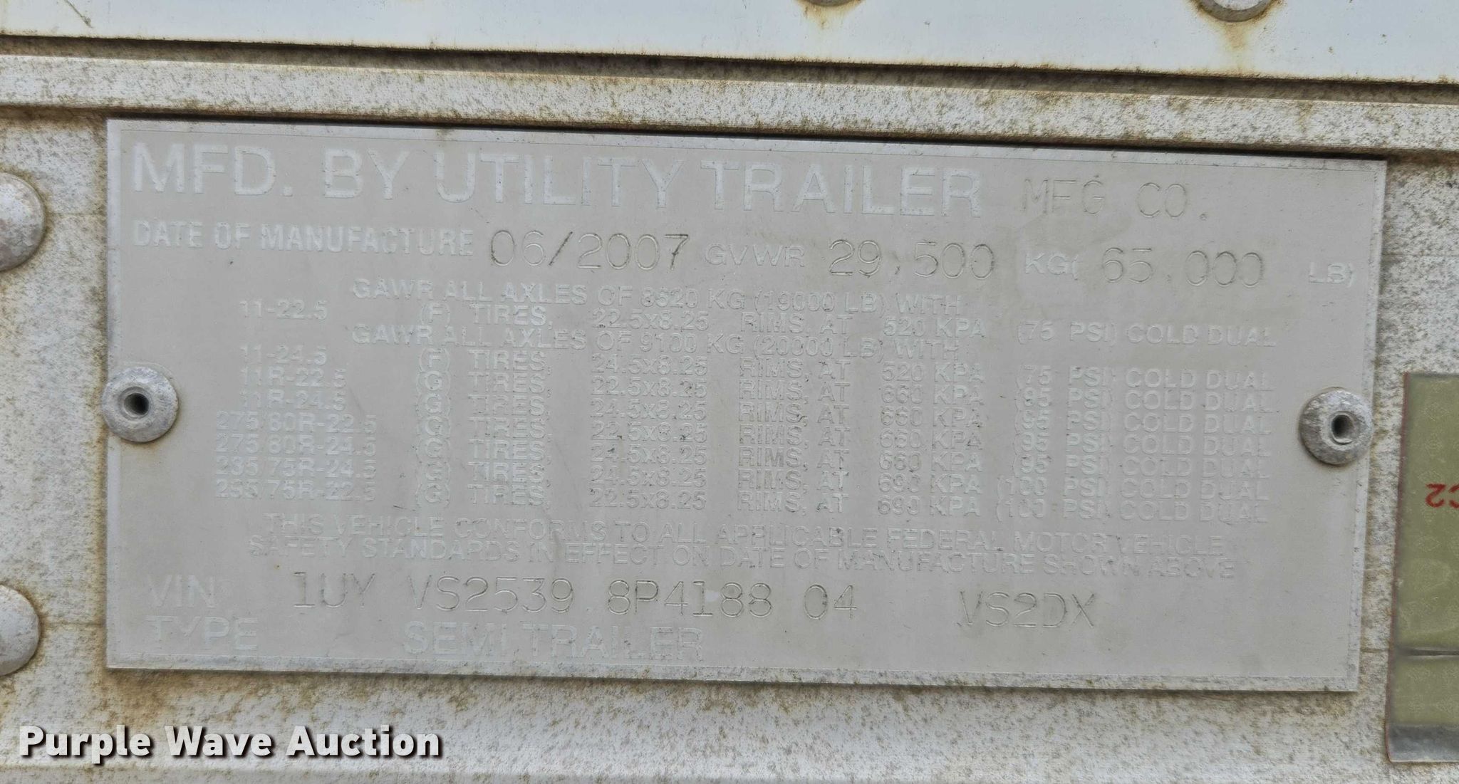 2008 Utility Trailer dry van trailer. VIN: 1UYVS25398P418804. Dimensions Overall: 53' L x 103" W, Body: 53' L x 102" W. Features Deck type: Wood. Chassis Landing gear: Dual, Suspension: Air, Brakes: Air, Axles: Tandem Sliding, GVWR: 65,000 lbs. Tires Steel wheels, Size: 295/75R22.5. Notes Left rear door missing bottom latch, Landing gear damaged. Missouri title. Title distribution may be delayed up to 14 days from verification of funds. LT Delivery, Inc.. Northmoor, MO 64151