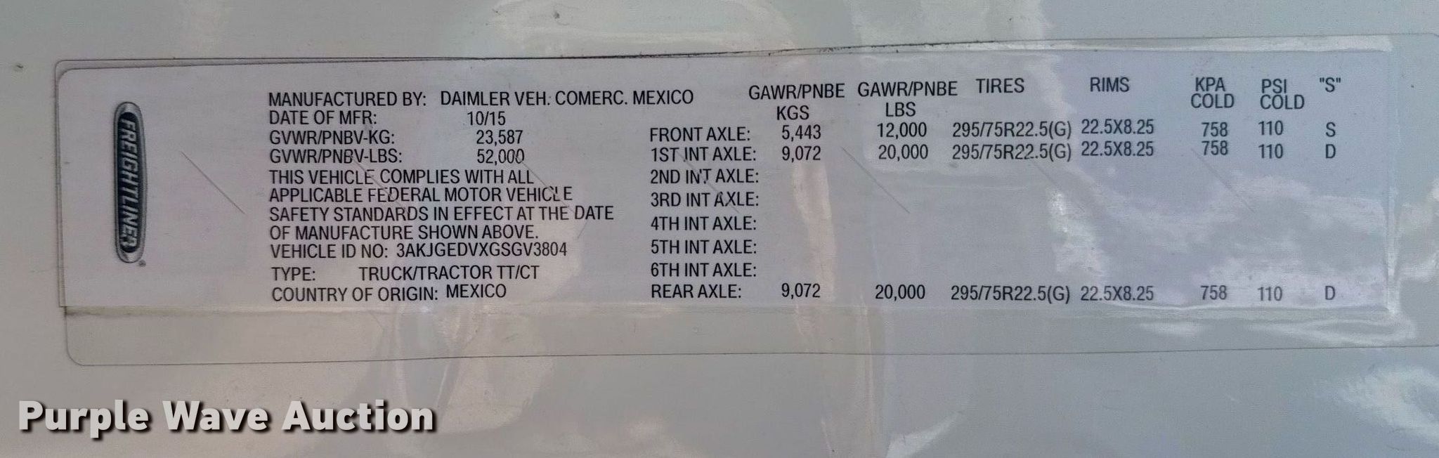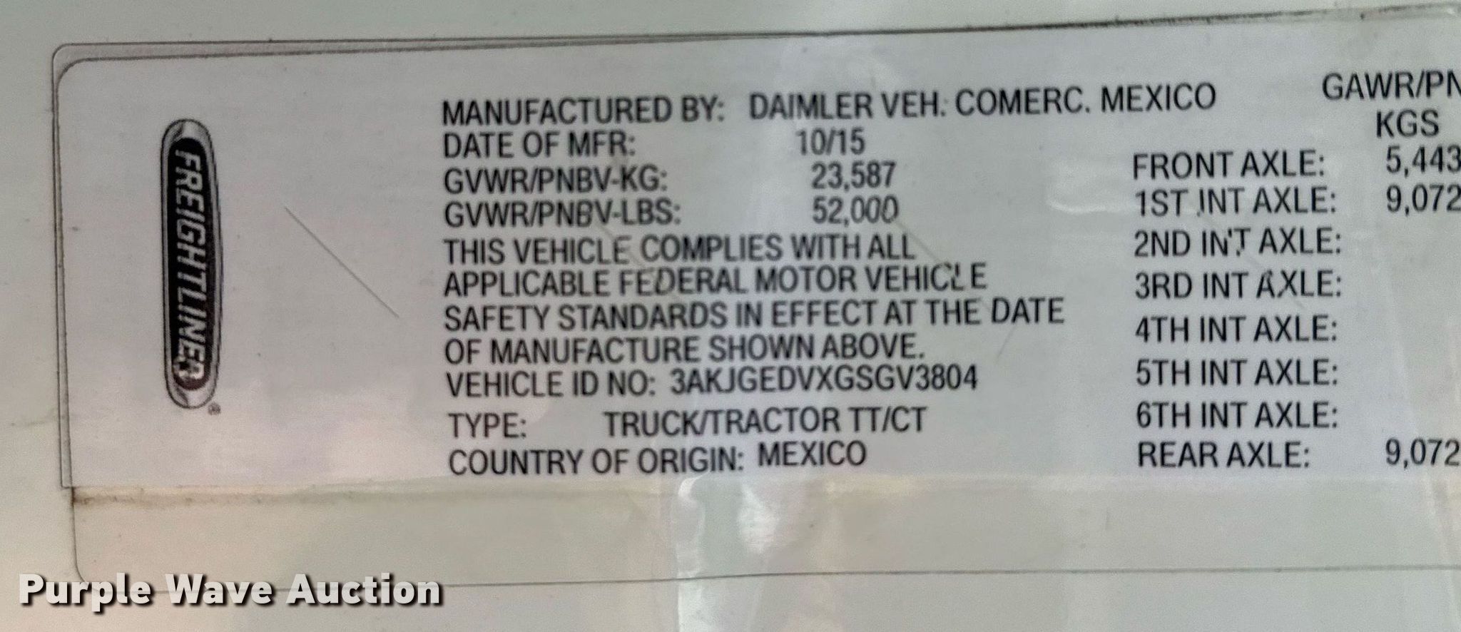 Purple Wave is selling a used Truck Tractor in Oklahoma. This item is a 2016 Freightliner Cascadia 125 semi truck with the following: Miles: 35,756 on odometer, VIN: 3AKJGEDVXGSGV3804