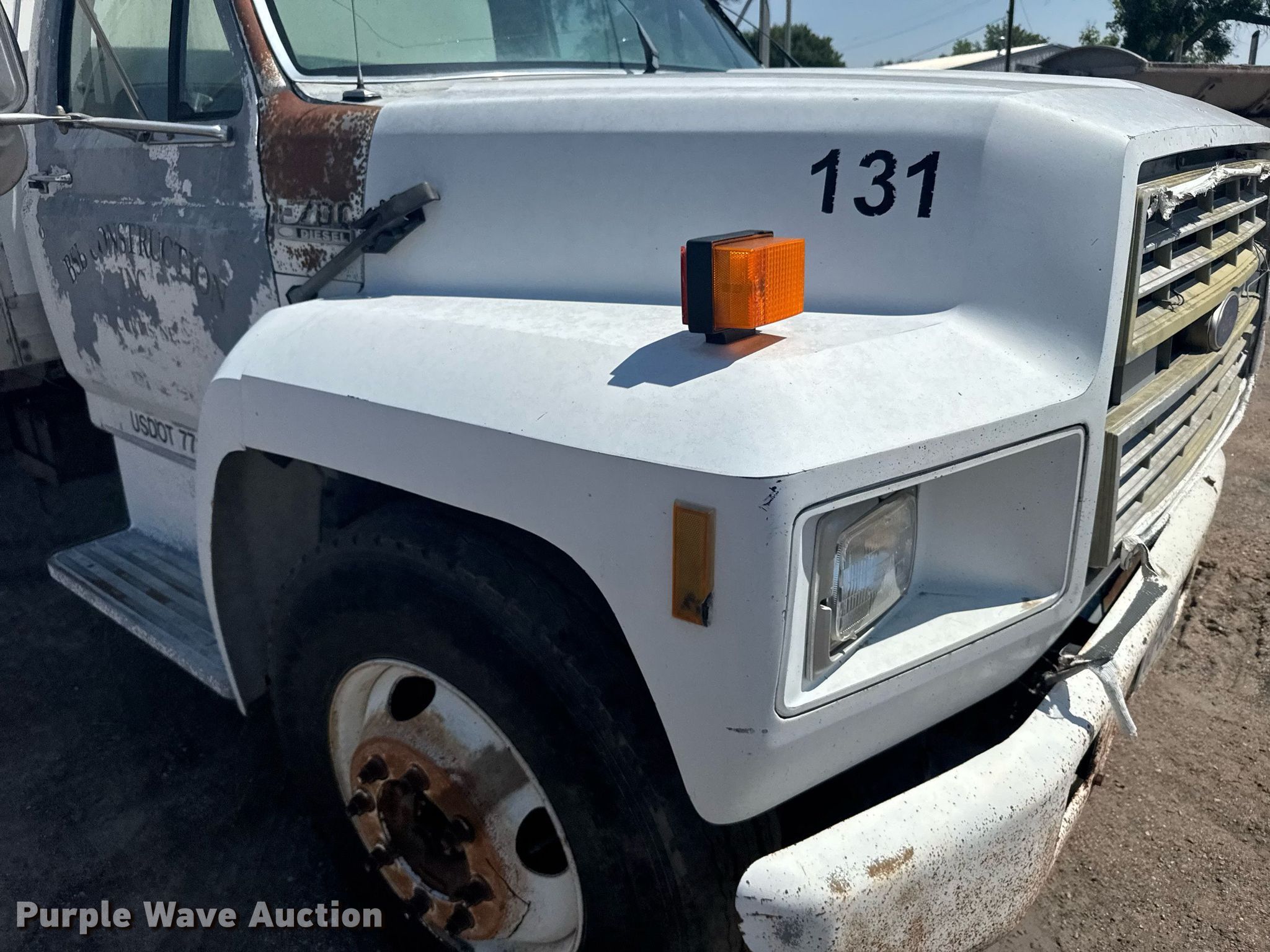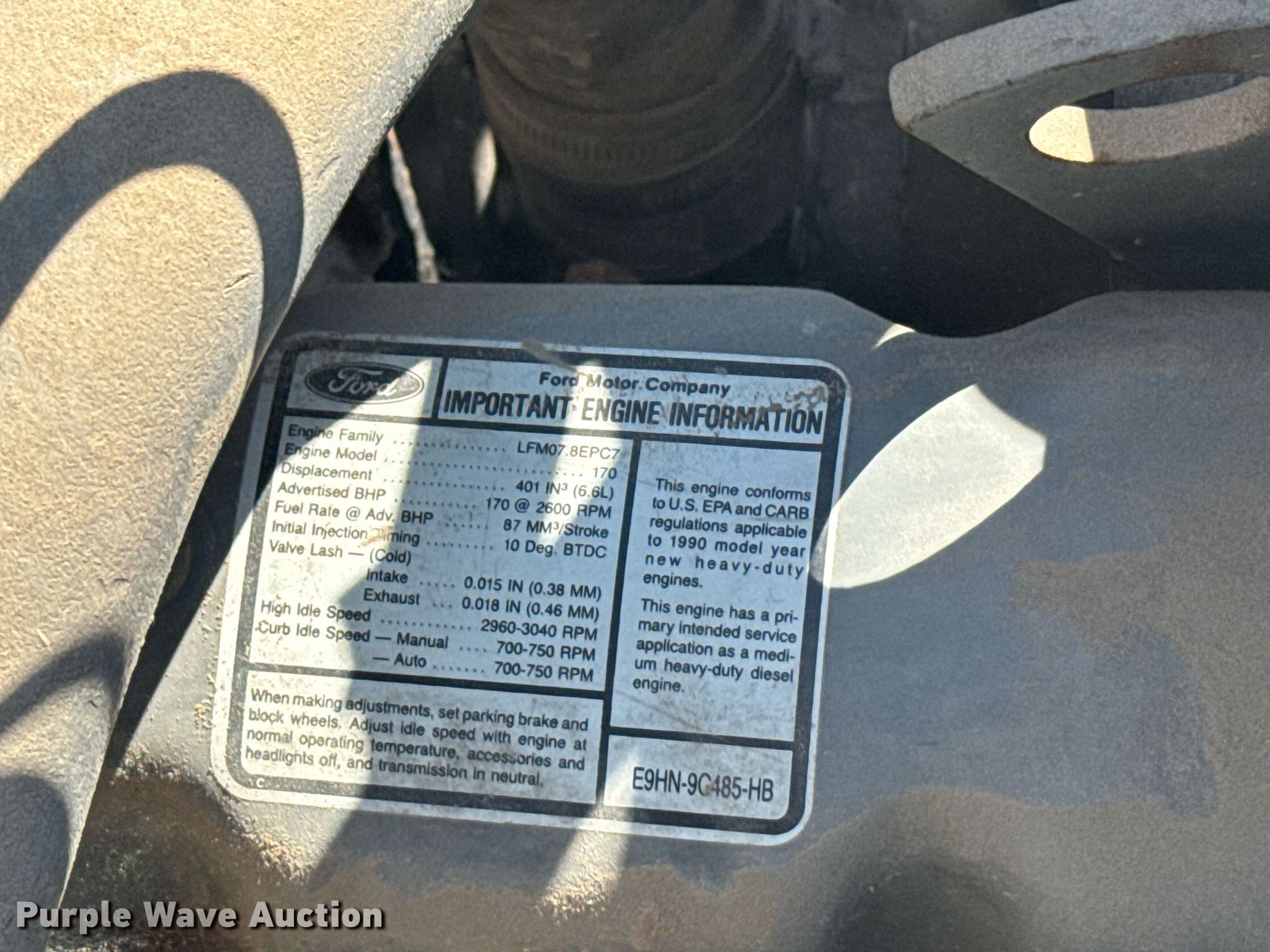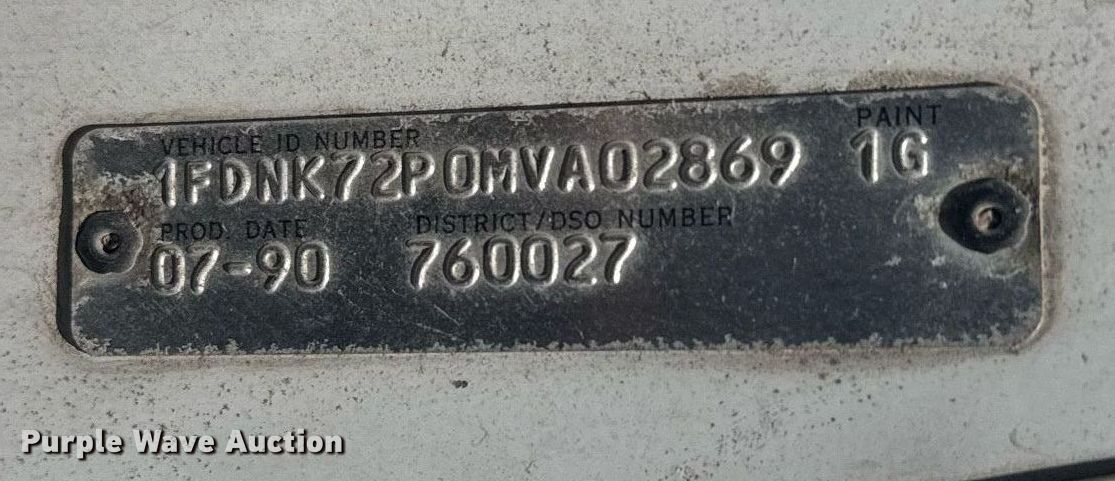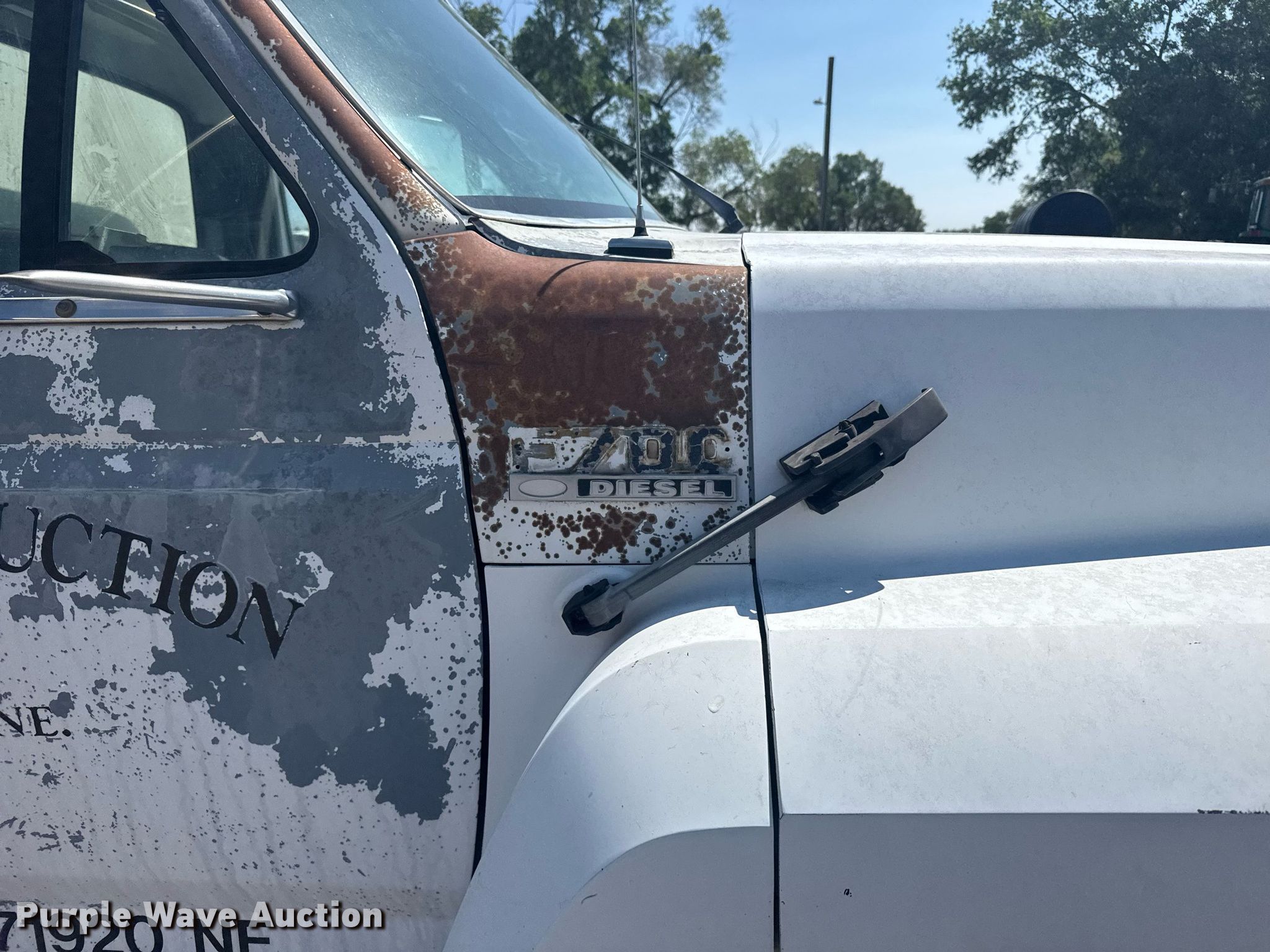 1991 Ford F700 box truck. Miles: 334,735 on odometer, VIN: 1FDNK72P0MVA02869. Engine Ford 170, Serial: E9HN-9C485-HB, Displacement: 6.6L, Cylinders: 6, Fuel type: Diesel. Transmission Automatic. Chassis Axles: Single, Suspension: Spring, Brakes: Hydraulic. Interior AC, Heat. Features Box bed 24' L x 96" W x 90" H, Floor: Wood, End gate lift Maxon 72-150B, Capacity: 1,500 lbs.. Tires Size: 11R22.5. Nebraska title. Title distribution may be delayed up to 14 days from verification of funds. BSB Construction Inc.. Curtis, NE 69025