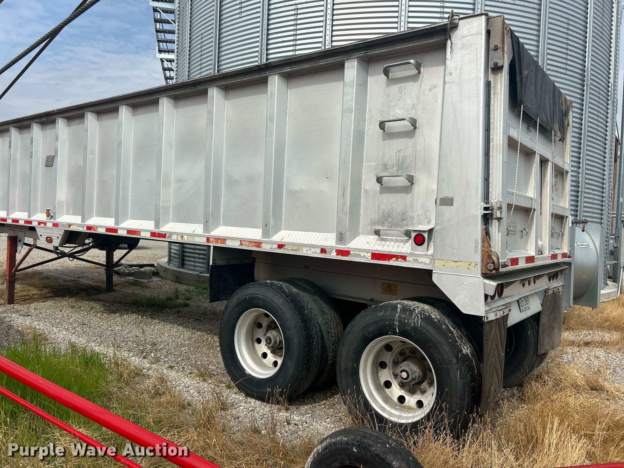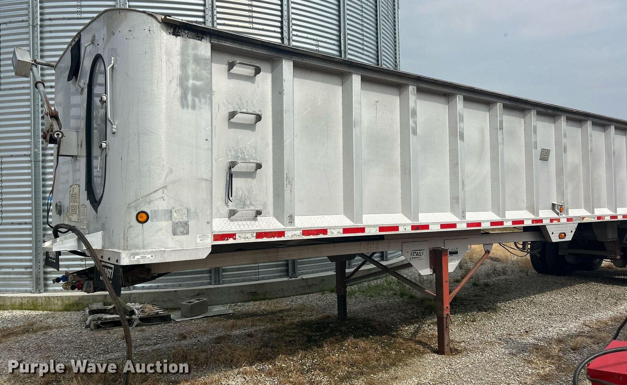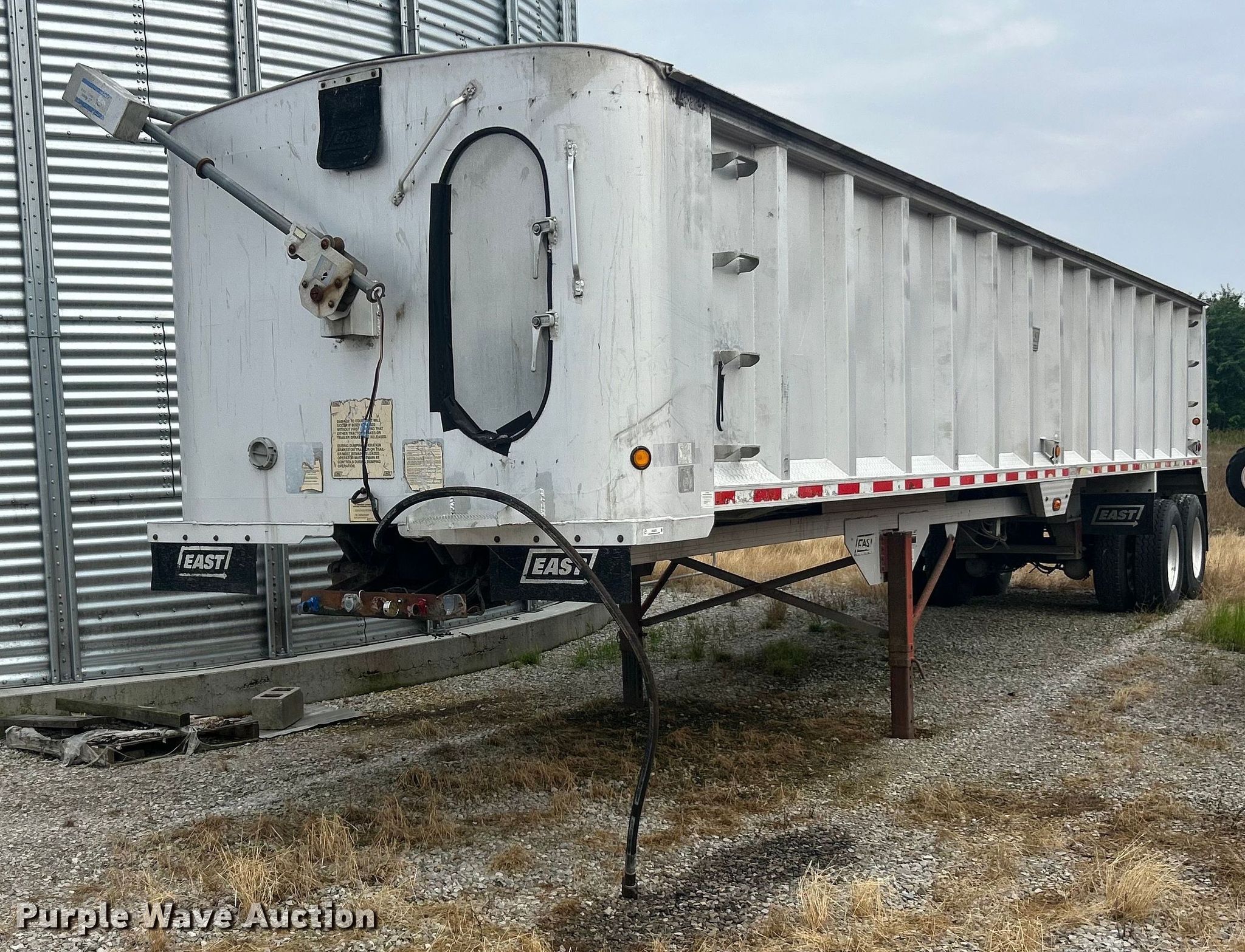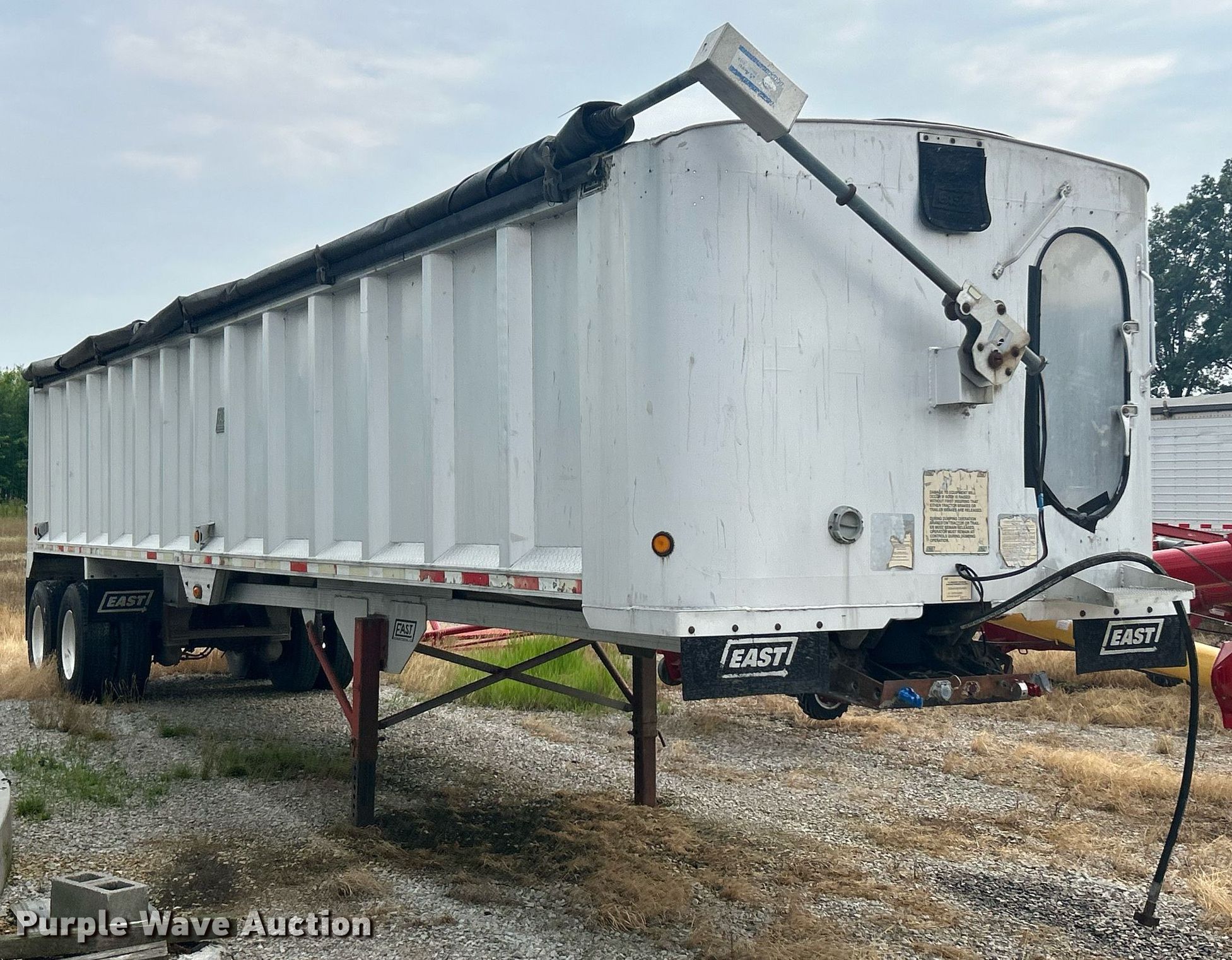 2000 East end dump trailer. VIN: 1E1F9U285YRM28538. Dimensions Overall: 39' L x 96" W, Side height: 64". Features Body type: Aluminum, Ram: Single, Grain door, Roll tarp. Chassis Landing gear: Dual, Suspension: Air, Brakes: Air, Axles: Tandem, GVWR: 80,000 lbs. Tires Aluminum wheels, Size: 11R22.5. Illinois title. Title distribution may be delayed up to 30 days from verification of funds. Matt Kash Farms. Ina, IL 62846