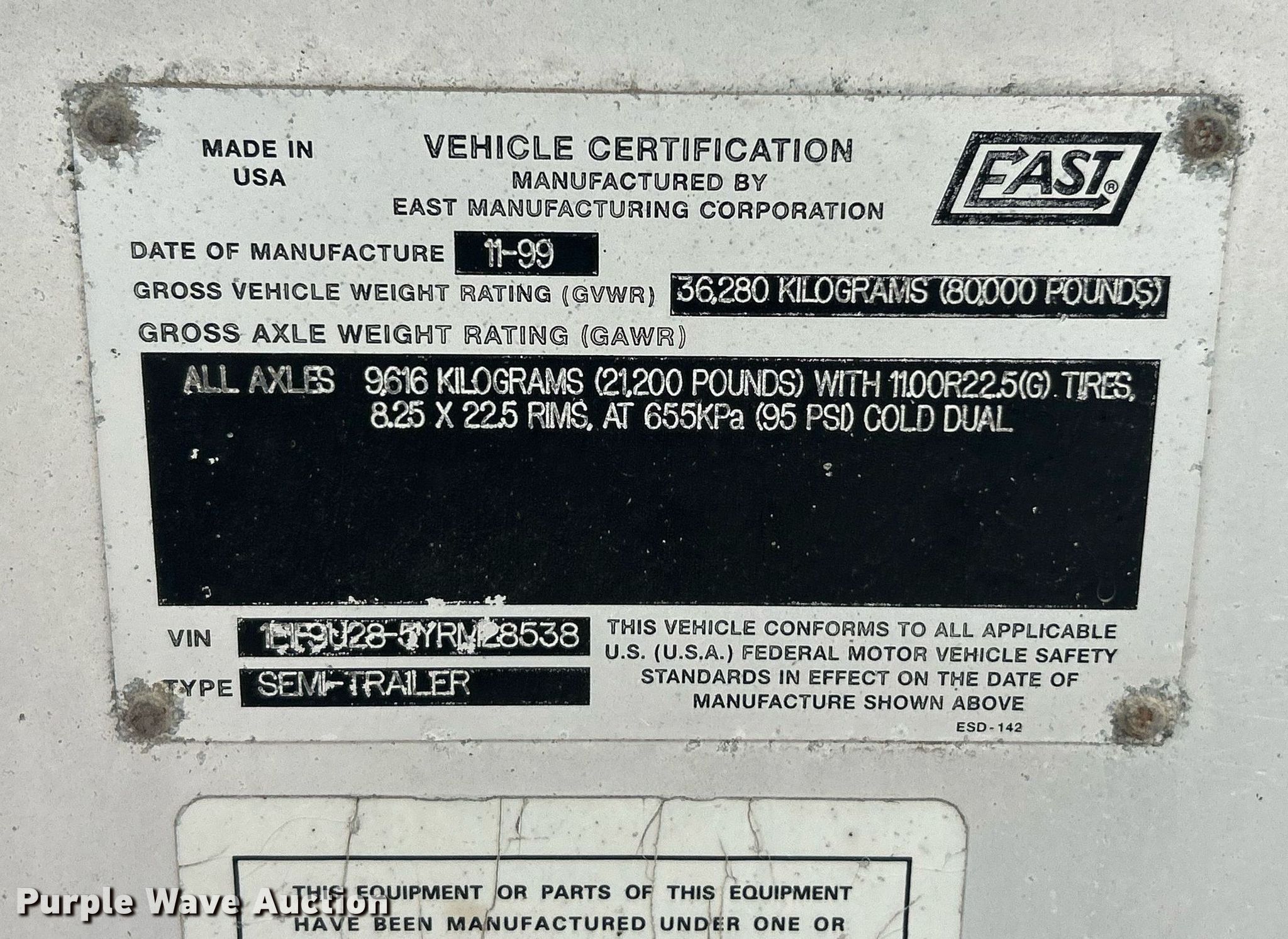 Purple Wave is selling a used End Dump Rock Trailer in Illinois. This item is a 2000 East end dump trailer with the following: VIN: 1E1F9U285YRM28538