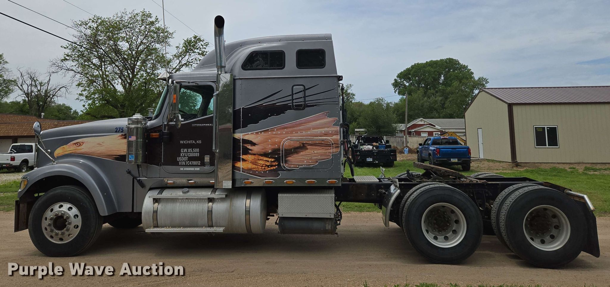 Purple Wave is selling a used Truck Tractor in Kansas. This item is a 2007 International 9900ix semi truck with the following: Miles: 514,847 on odometer, Actual mileage unknown, Hours: 29,252 on meter, VIN: 2HSCKAPR07C478012