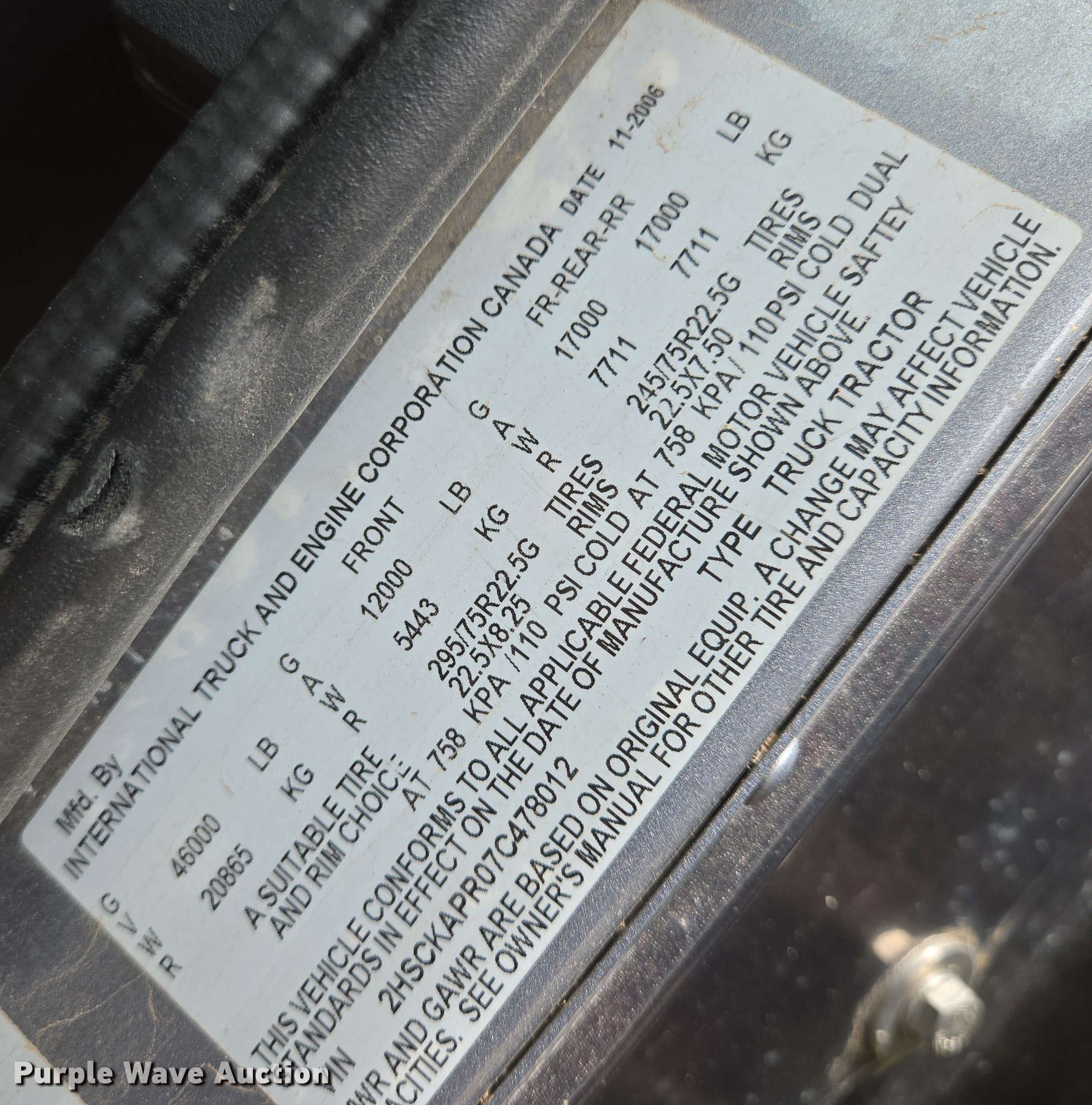 - VIN: 2HSCKAPR07C478012