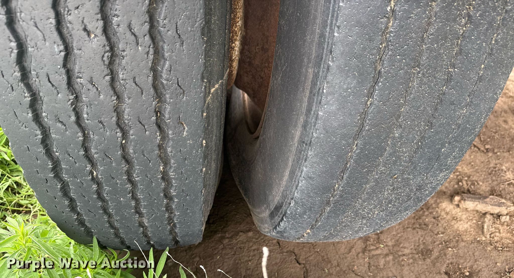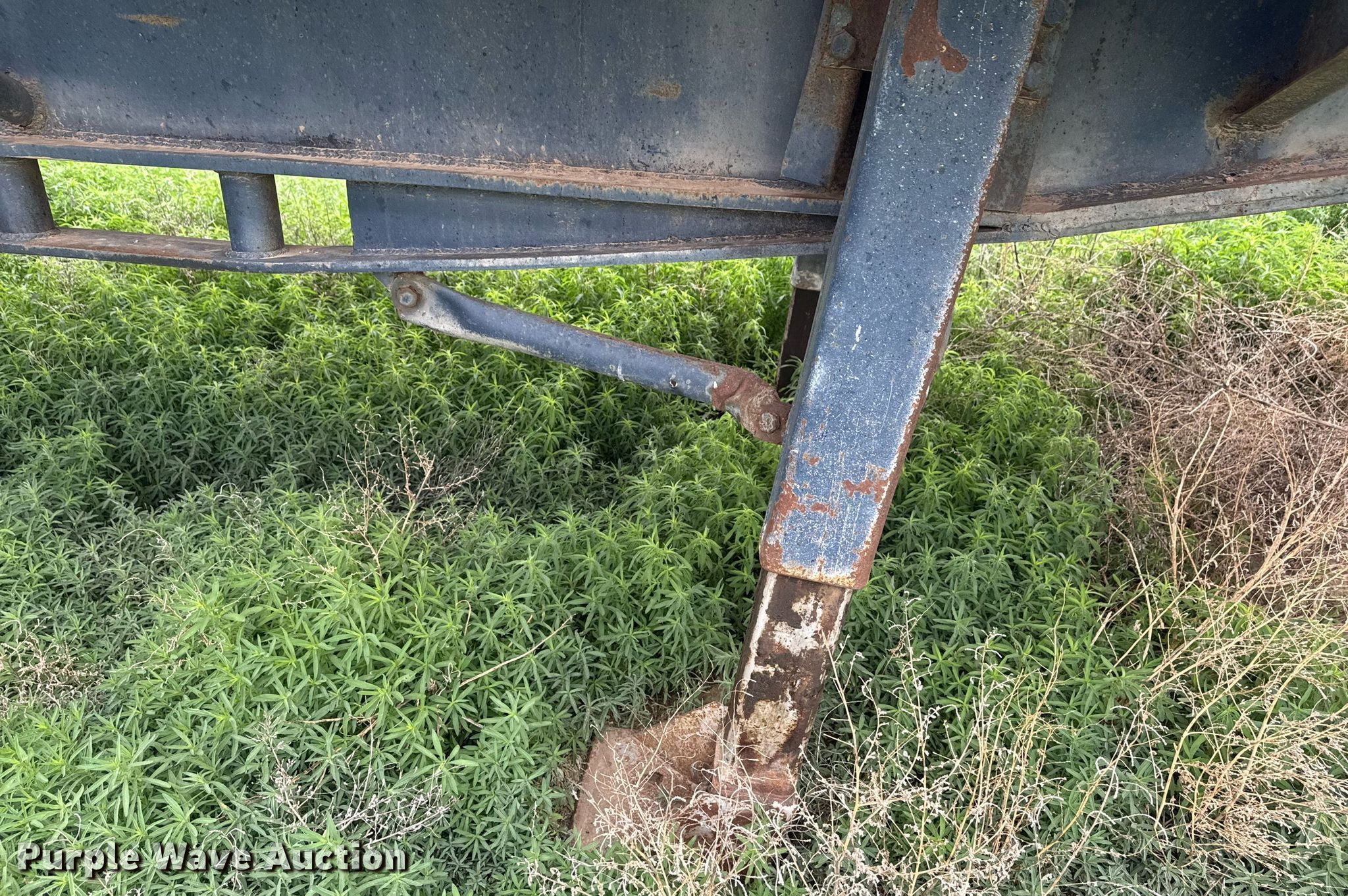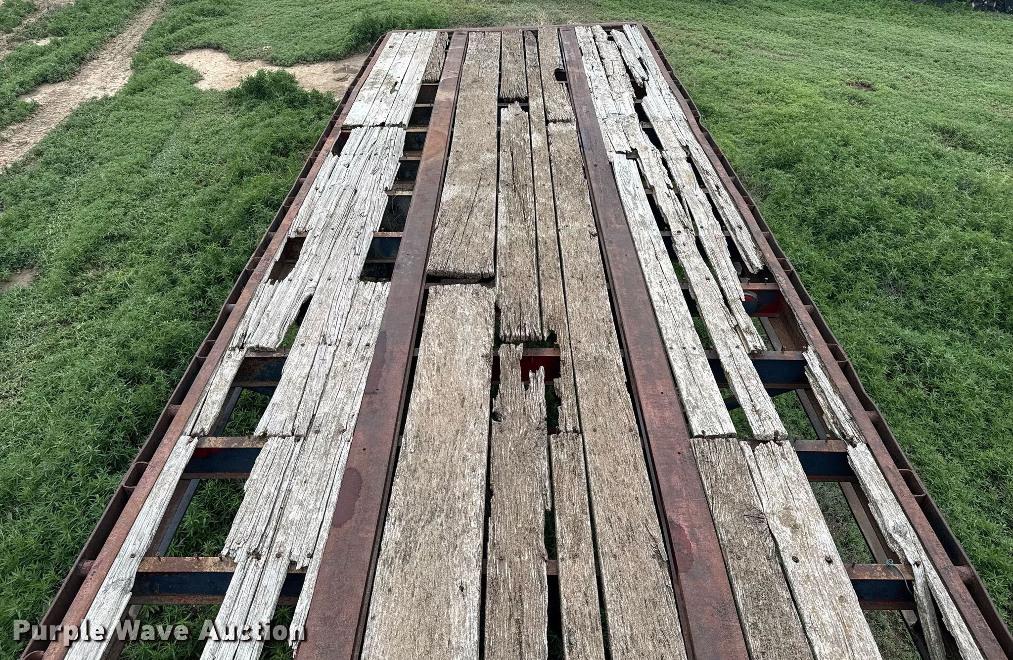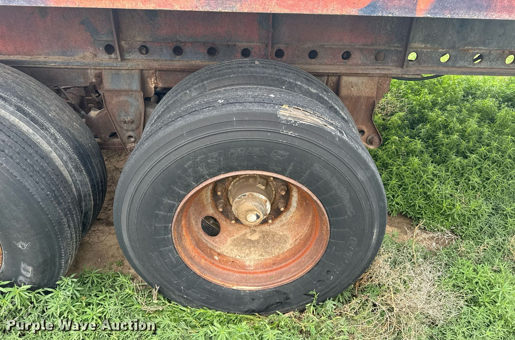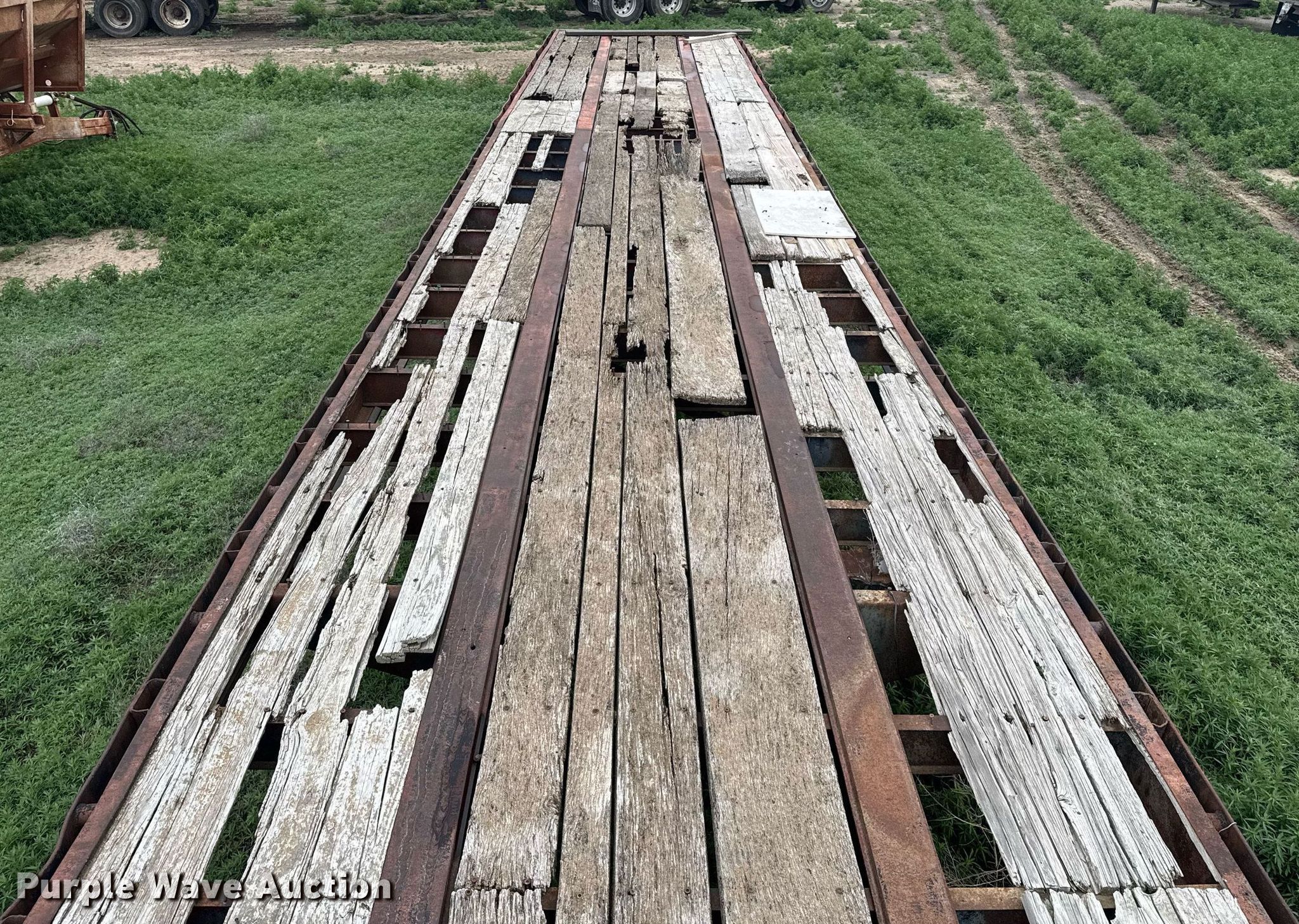 1966 Nabo Platform flatbed trailer. VIN: 11534FB. Dimensions Overall: 49' L x 96' W, Deck: 47' 10" L x 89" W, Deck height: 53". Features Deck type: Wood. Chassis Landing gear: Dual, Suspension: Spring, Brakes: Air, Axles: Tandem. Tires Steel wheels, Size: 11R22.5. Notes Deck boards damaged, Tire blown Tire will be replaced prior to auction. Kansas title. Title distribution may be delayed up to 14 days from verification of funds. Rexford, KS 67753