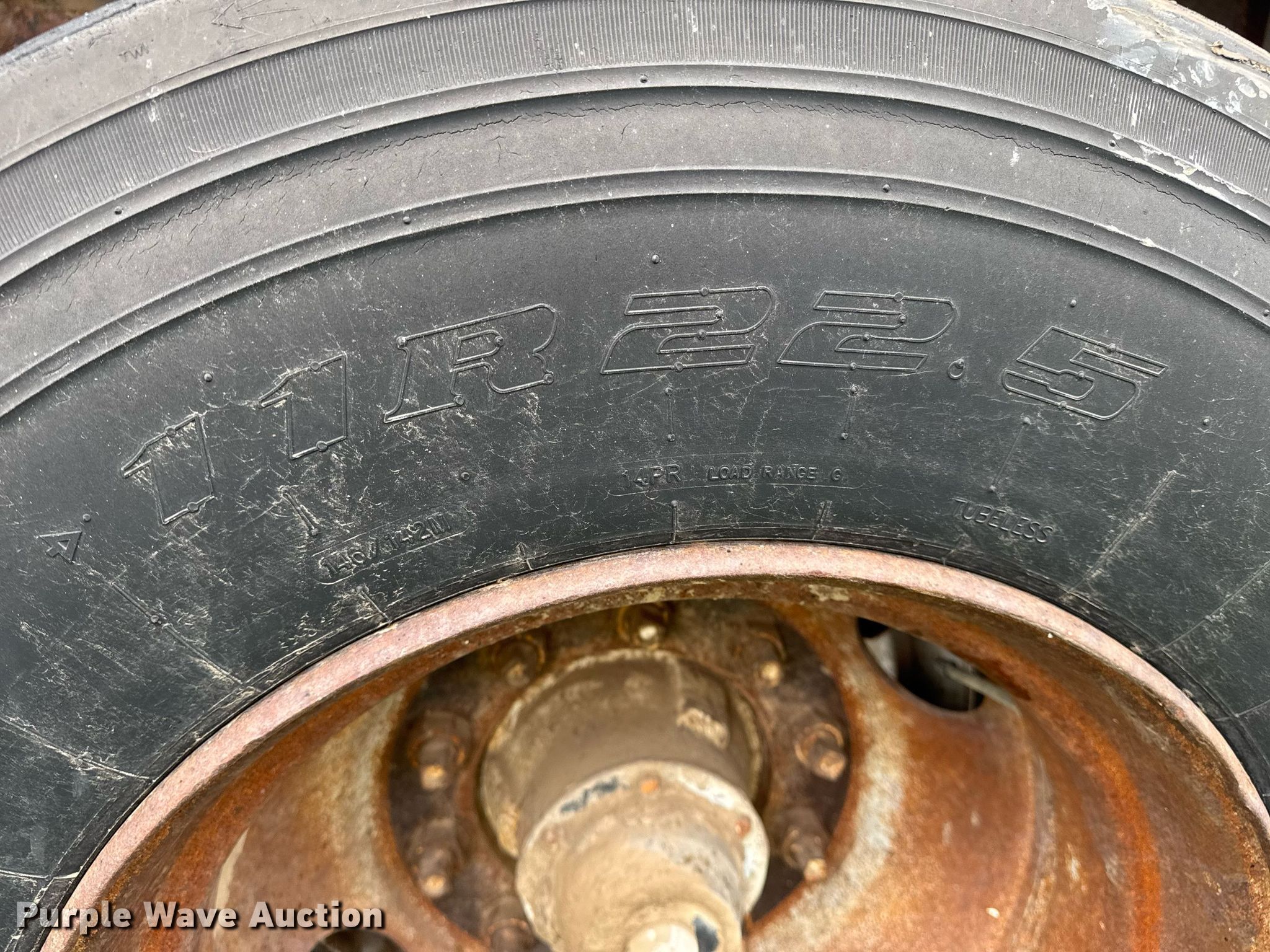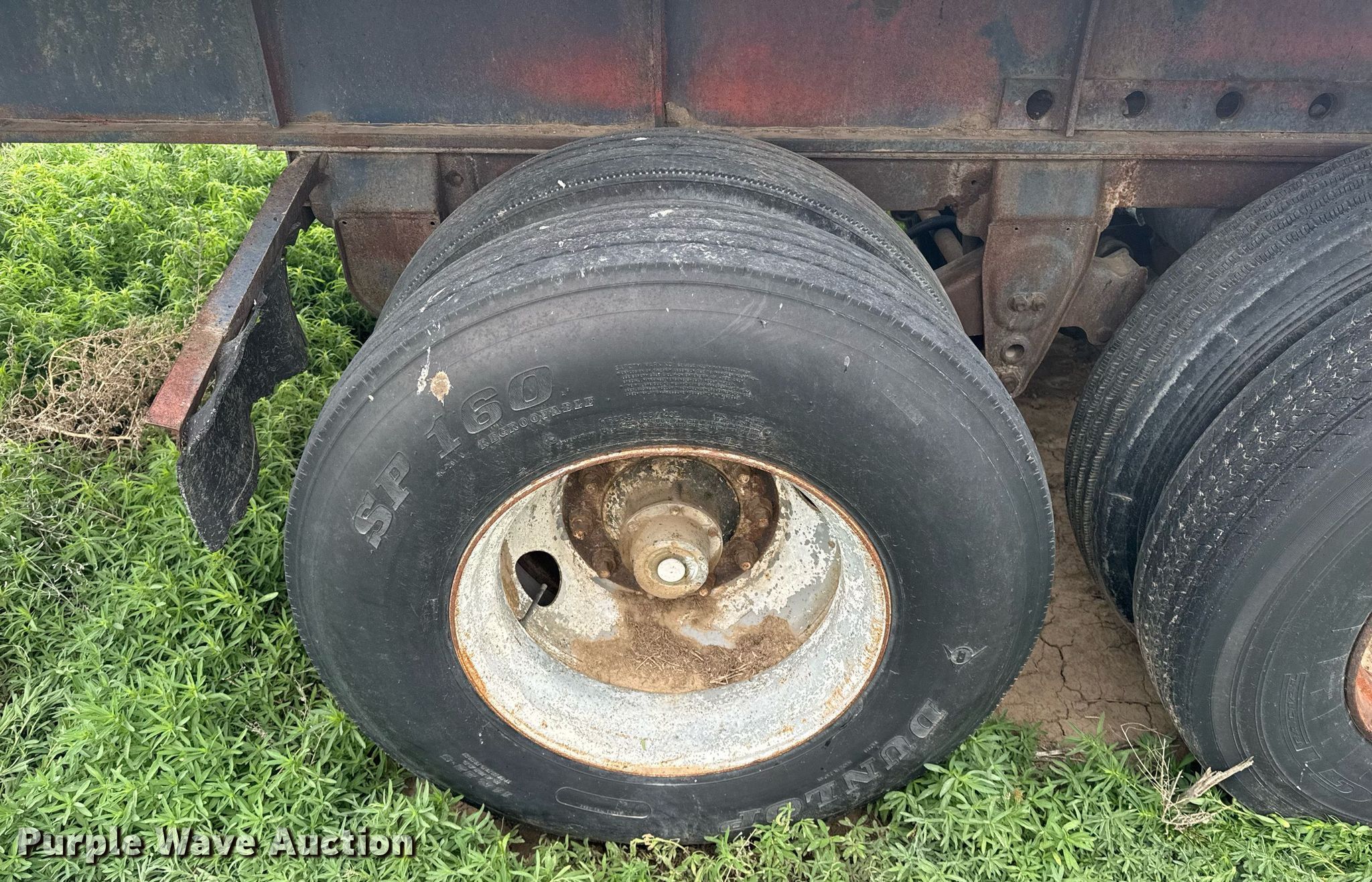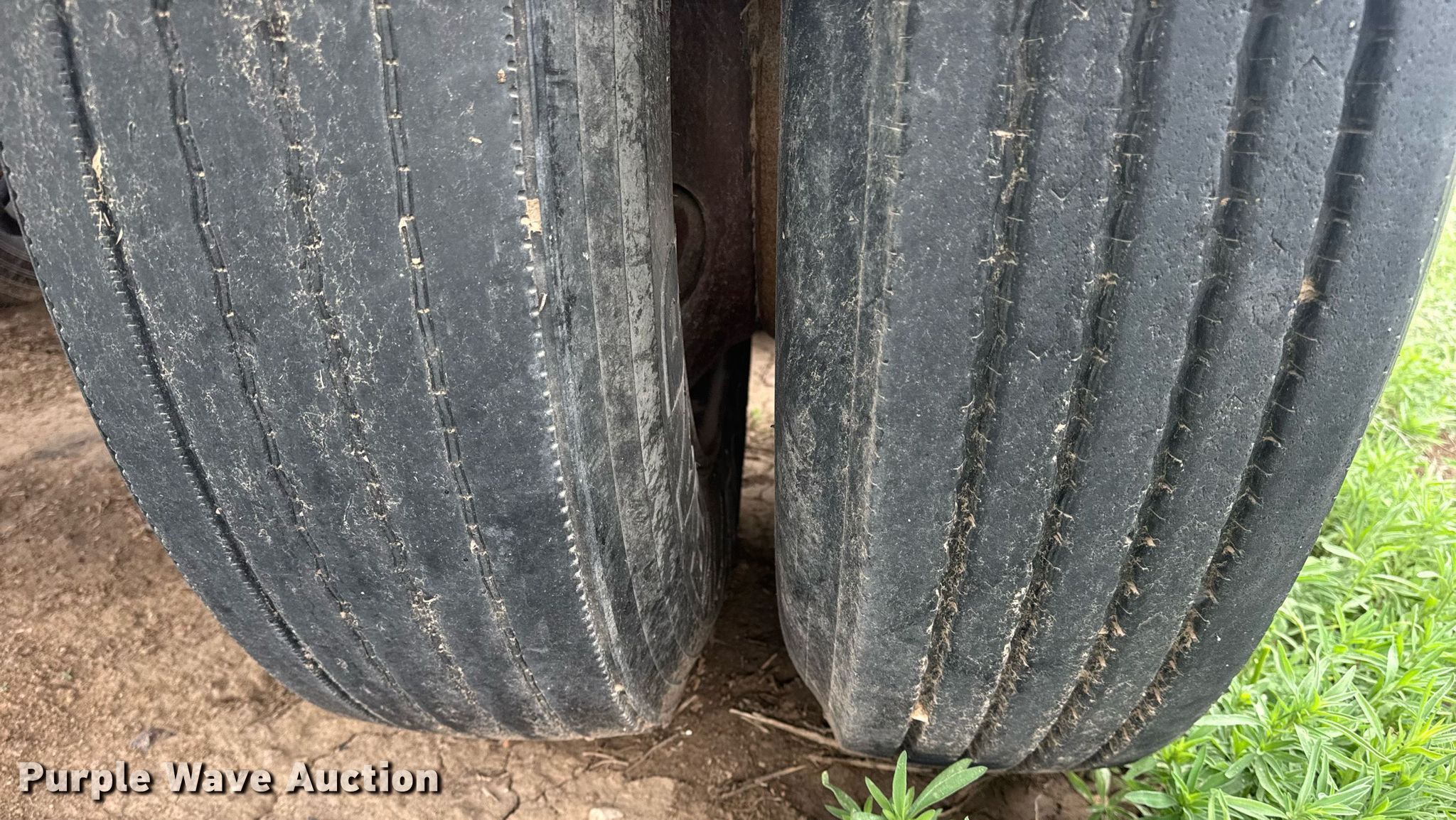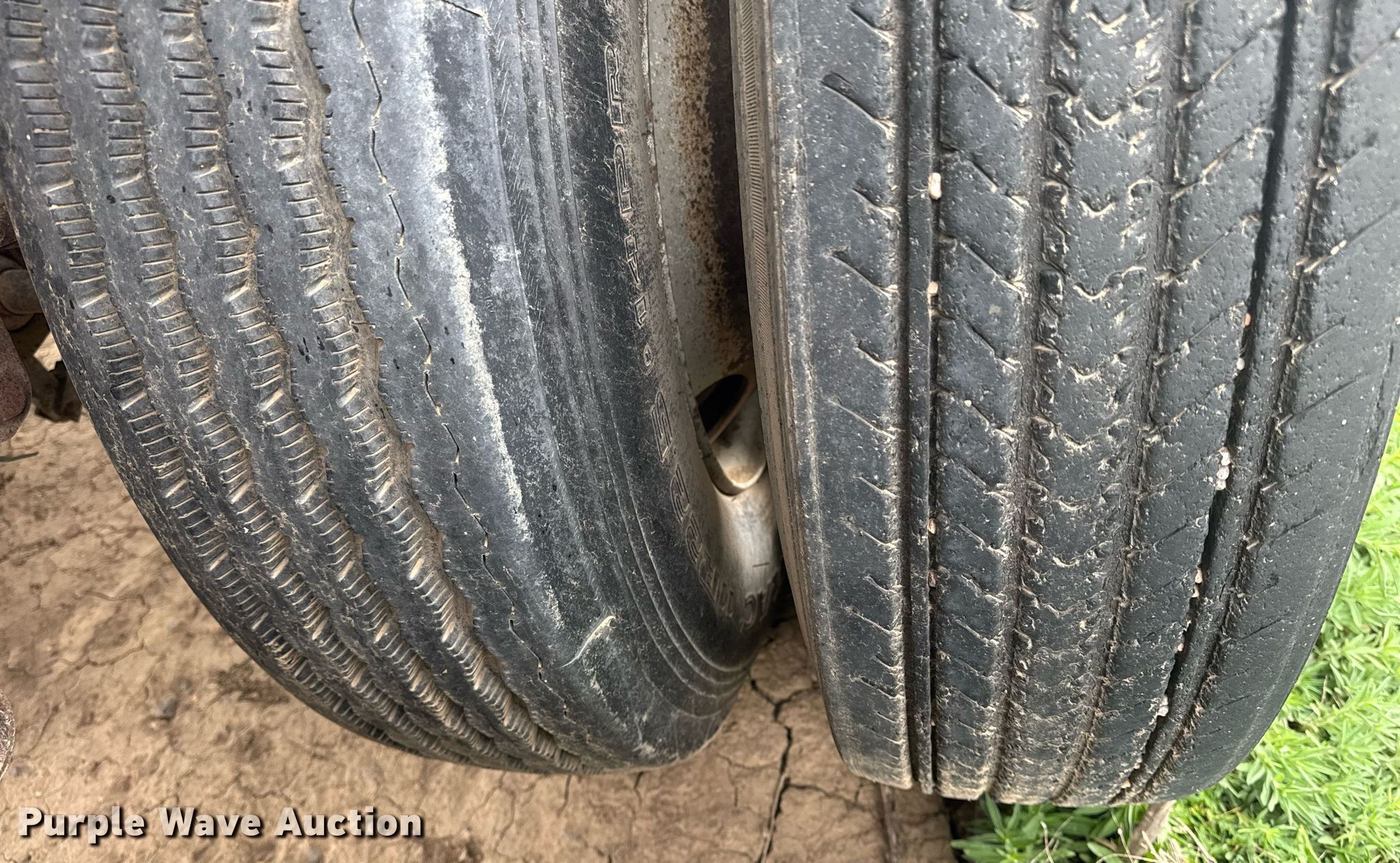 1966 Nabo Platform flatbed trailer. VIN: 11534FB. Dimensions Overall: 49' L x 96' W, Deck: 47' 10" L x 89" W, Deck height: 53". Features Deck type: Wood. Chassis Landing gear: Dual, Suspension: Spring, Brakes: Air, Axles: Tandem. Tires Steel wheels, Size: 11R22.5. Notes Deck boards damaged, Tire blown Tire will be replaced prior to auction. Kansas title. Title distribution may be delayed up to 14 days from verification of funds. Rexford, KS 67753