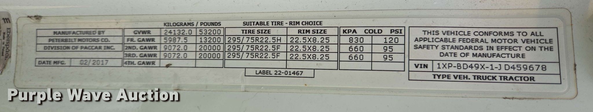 - VIN: 1XPBD49X1JD459678