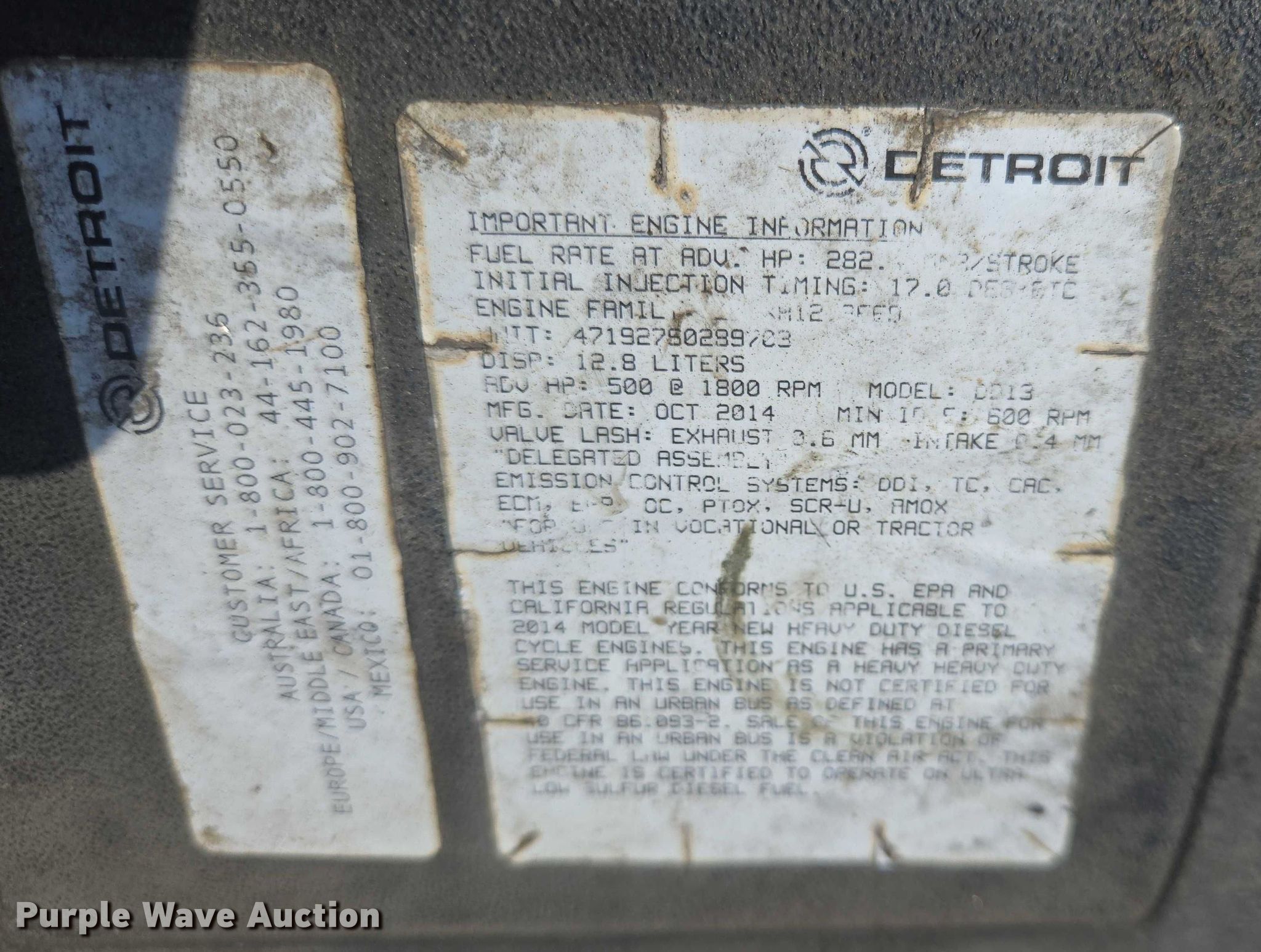 2015 Freightliner Business Class M2 semi truck. Miles: 511,225 on odometer, Hours: 19,275 on meter, VIN: 1FUBC4DV3FHGN8589, Unit #: 58191335. Engine Detroit Diesel DD13, Displacement: 12.8L, Cylinders: 6, Fuel type: Diesel, Engine brake. Transmission Eaton Fuller Smart Shift, Automated manual. Chassis Axles: Single, Suspension: Air, Brakes: Air, GVWR: 33,000 lbs FAWR: 12,000 lbs, RAWR: 21,000 lbs. Interior AC, Heat, Heated mirrors, Power windows, Cruise control, Air ride cab. Features Deck plate: Aluminum, Fifth wheel type: Fixed, Fuel tank: Dual. Tires Size: 295/75R22.5. Notes Dash warning indicator: Check engine, ABS, Hill start assistance light, Check transmission light flashing, Windshield chipped or cracked, Battery weak, Windshield wiper issue, will not turn off. Repossessed item, stored at a secured facility. Please review REQUIRED REMOVAL INSTRUCTIONS. Lender owned. Item condition and history are unknown. No additional information is available. Titles will be distributed after confirmation of payment and removal. Maryland title. Title distribution may be delayed up to 30 days from verification of funds. Lender Owned. Fredericksburg, VA 22408