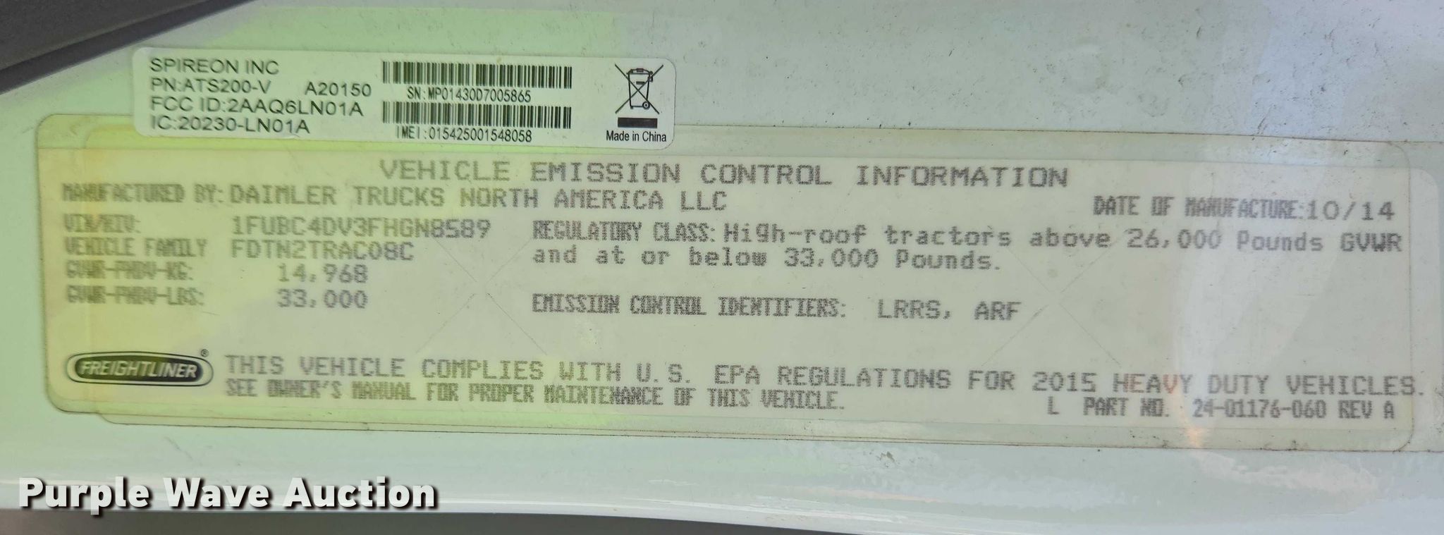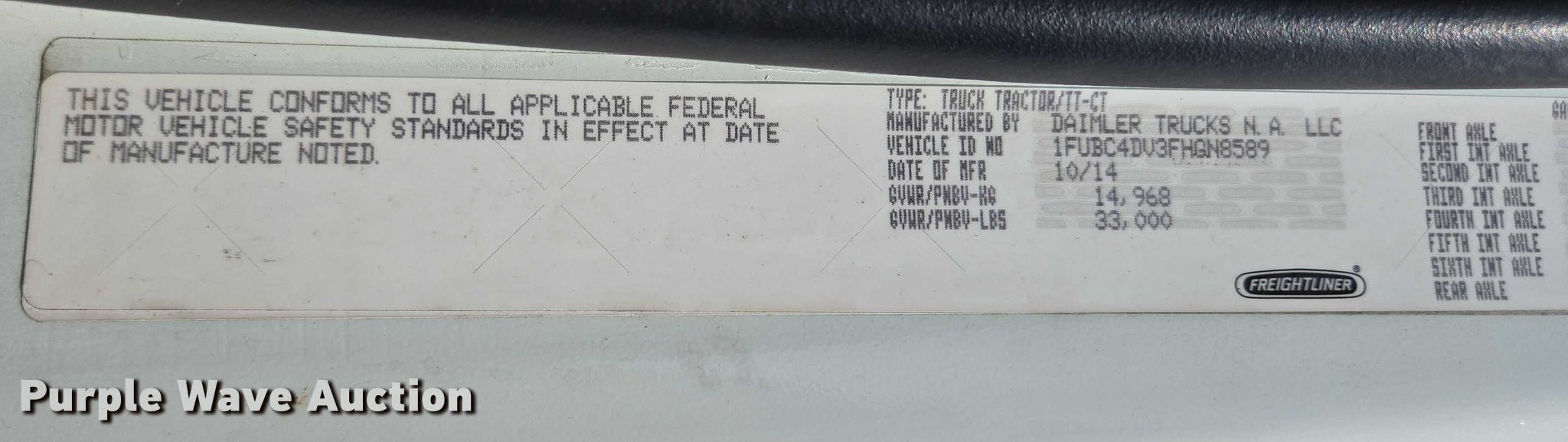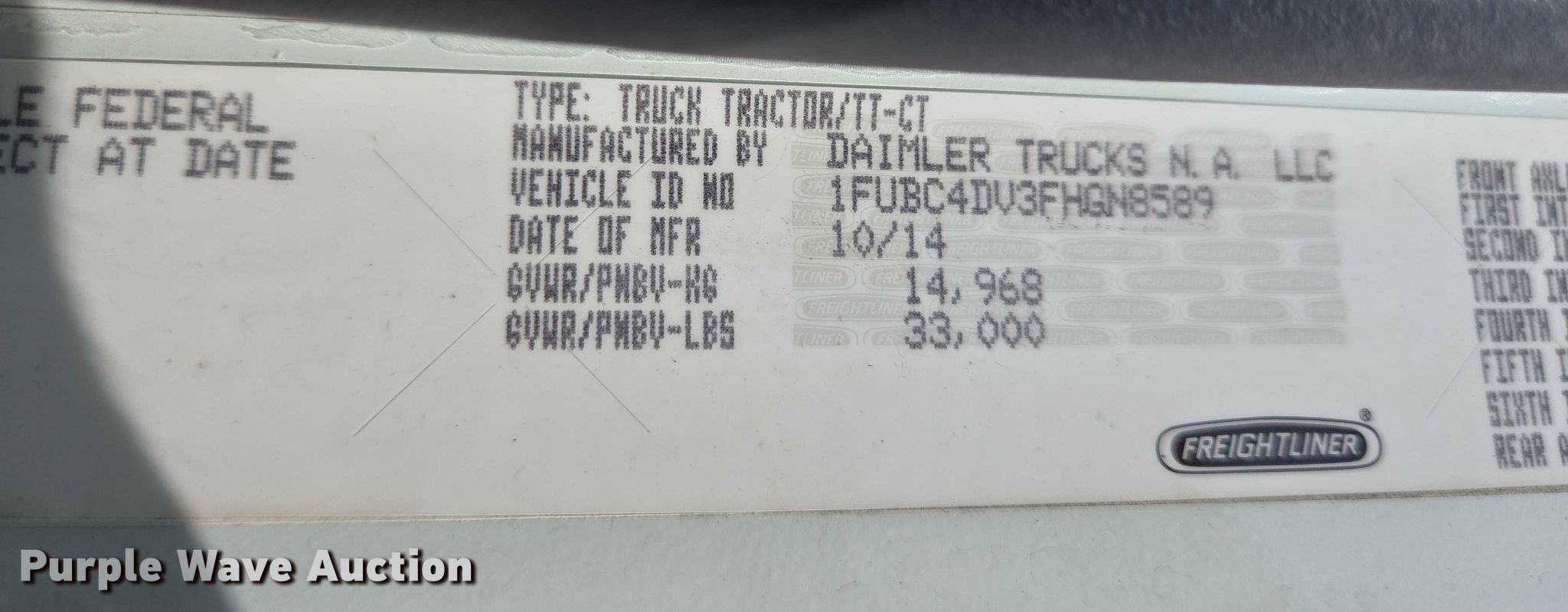 Purple Wave is selling a used Truck Tractor in Virginia. This item is a 2015 Freightliner Business Class M2 semi truck with the following: Miles: 511,225 on odometer, Hours: 19,275 on meter, VIN: 1FUBC4DV3FHGN8589, Unit #: 58191335