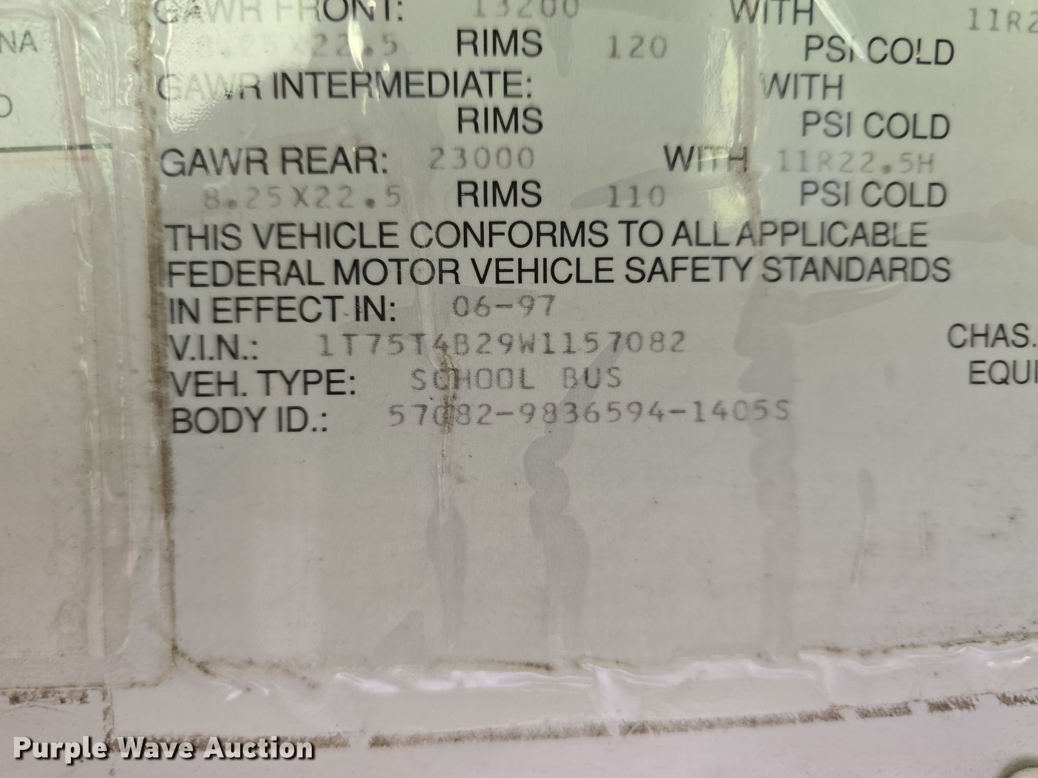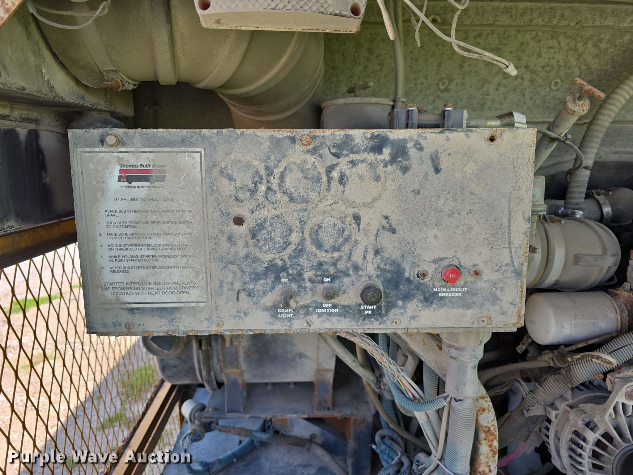 1998 Thomas Built Saf-T-Liner ER school bus. Miles: 272,805 on odometer, Hours: 15,069 on meter, VIN: 1T75T4B29W1157082. Engine Displacement: 6.6L, Cylinders: 6, Fuel type: Diesel. Transmission Allison, Automatic. Chassis Axles: Single, Suspension: Spring, Brakes: Air, GVWR: 36,200 lbs, Wheelbase: 270". Interior Heat, Heated mirrors, Cruise control, Auxiliary controls, Electric passenger sliding door, Passengers: 84. Tires Size: 11R22.5. Notes Windshield chipped or cracked, Engine oil leak. Nebraska title. Seller is a Nebraska licensed motor vehicle dealer. The buyer may be required to pay sales tax and/or registration fees to the dealer prior to taking possession. Title will be assigned and distributed by the dealer. Please contact the seller for distribution questions. Nebraska/Central Equipment. Alda, NE 68810