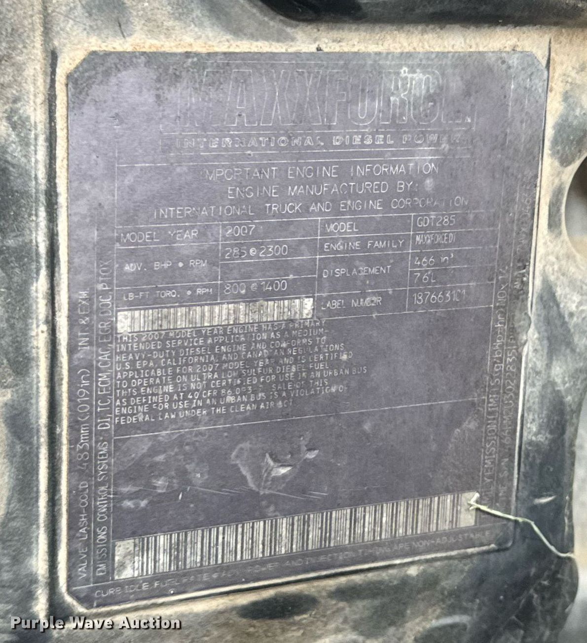 - Displacement: 7.6L