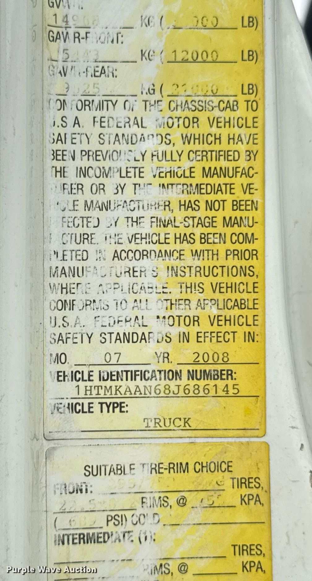 - VIN: 1HTMKAAN68J686145
