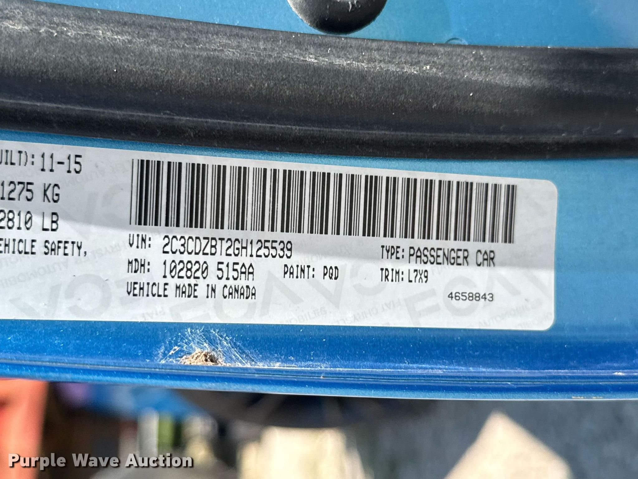 Purple Wave is selling a used Passenger Vehicle in Kansas. This item is a 2016 Dodge Challenger with the following: Miles: 63,059 on odometer, VIN: 2C3CDZBT2GH125539