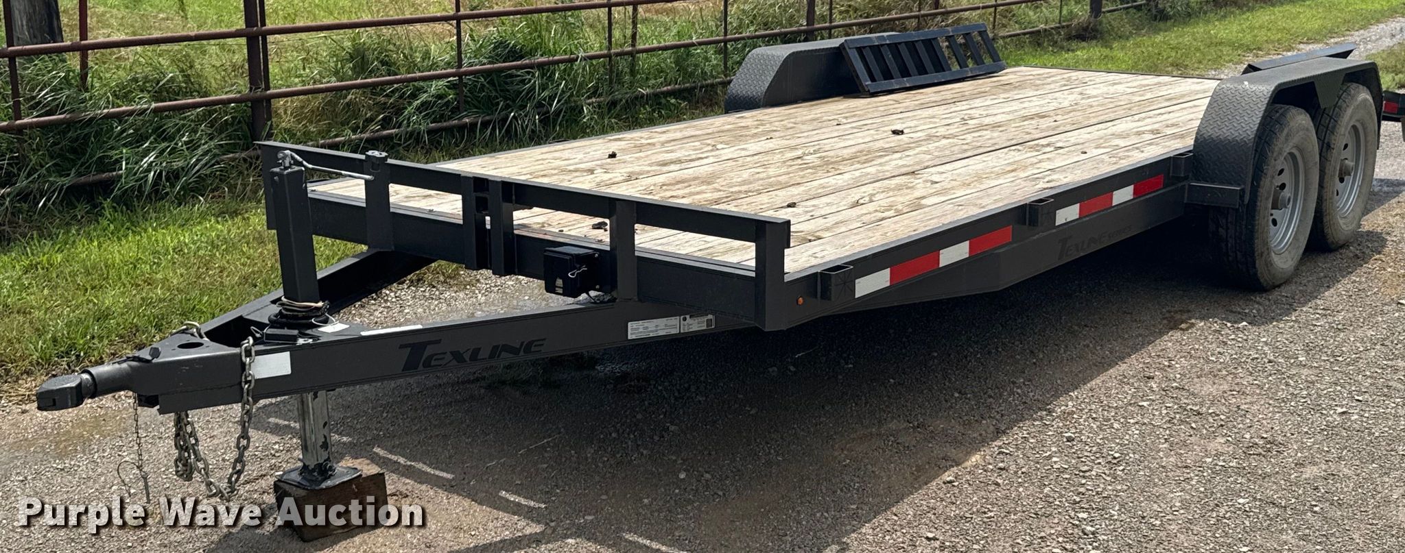 2019 Texline 8320DCH52 utility trailer. VIN: 7HACU2027K1000369. Dimensions Overall: 24' 6" L x 102" W, Deck: 18' L x 84" W, Tail length: 2', Ramps: Manual Length: 5'. Features Deck type: Wood. Chassis Ball hitch: 2 5/16", Landing gear: Single, Suspension: Spring, Brakes: Electric, Axles: Tandem, GVWR: 10,400 lbs, GAWR: 5,200 lbs. Tires Steel wheels, Size: ST235/80R16. Transfer of ownership documentation will be a bill of sale. Bartlesville, OK 74006