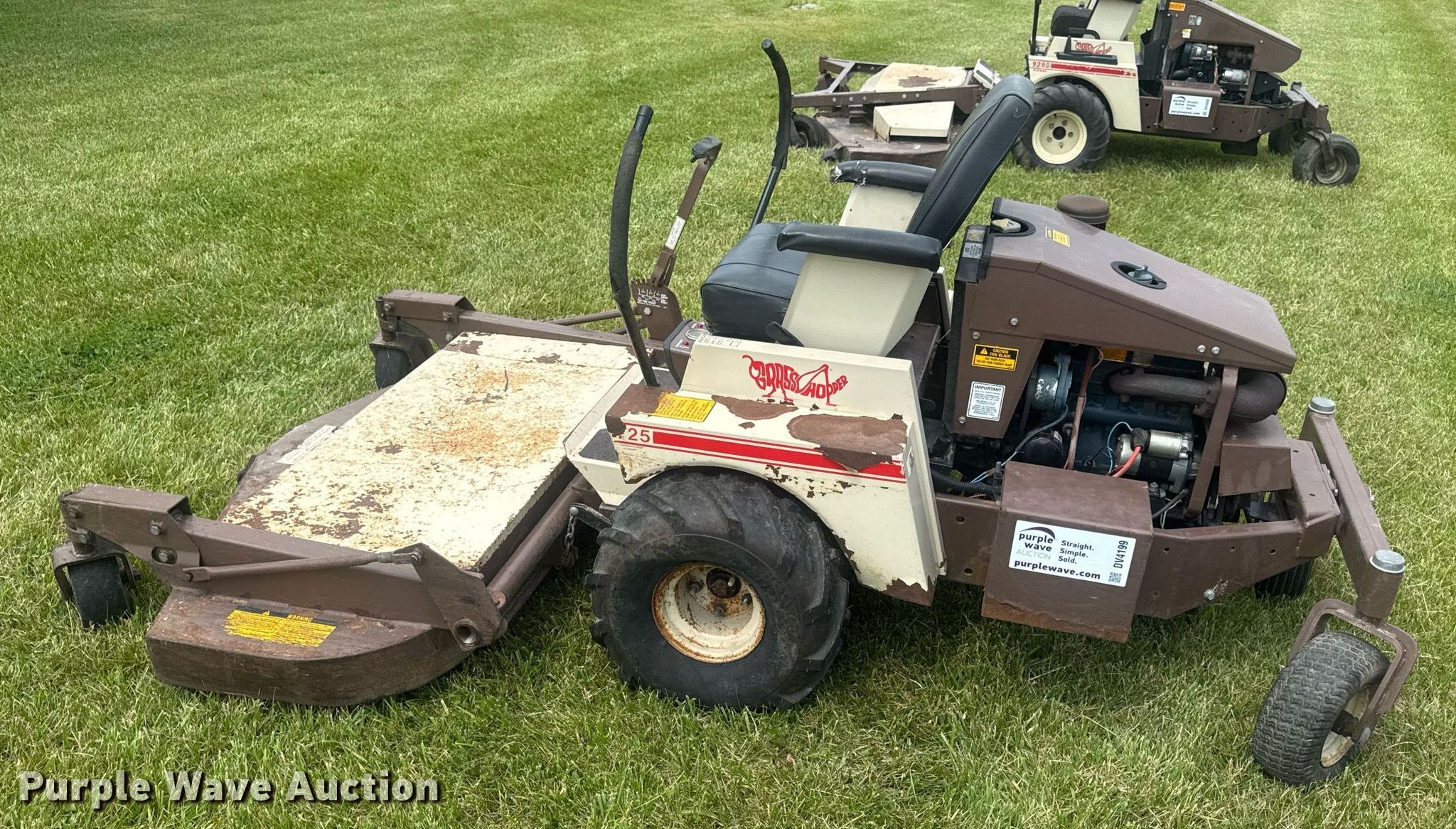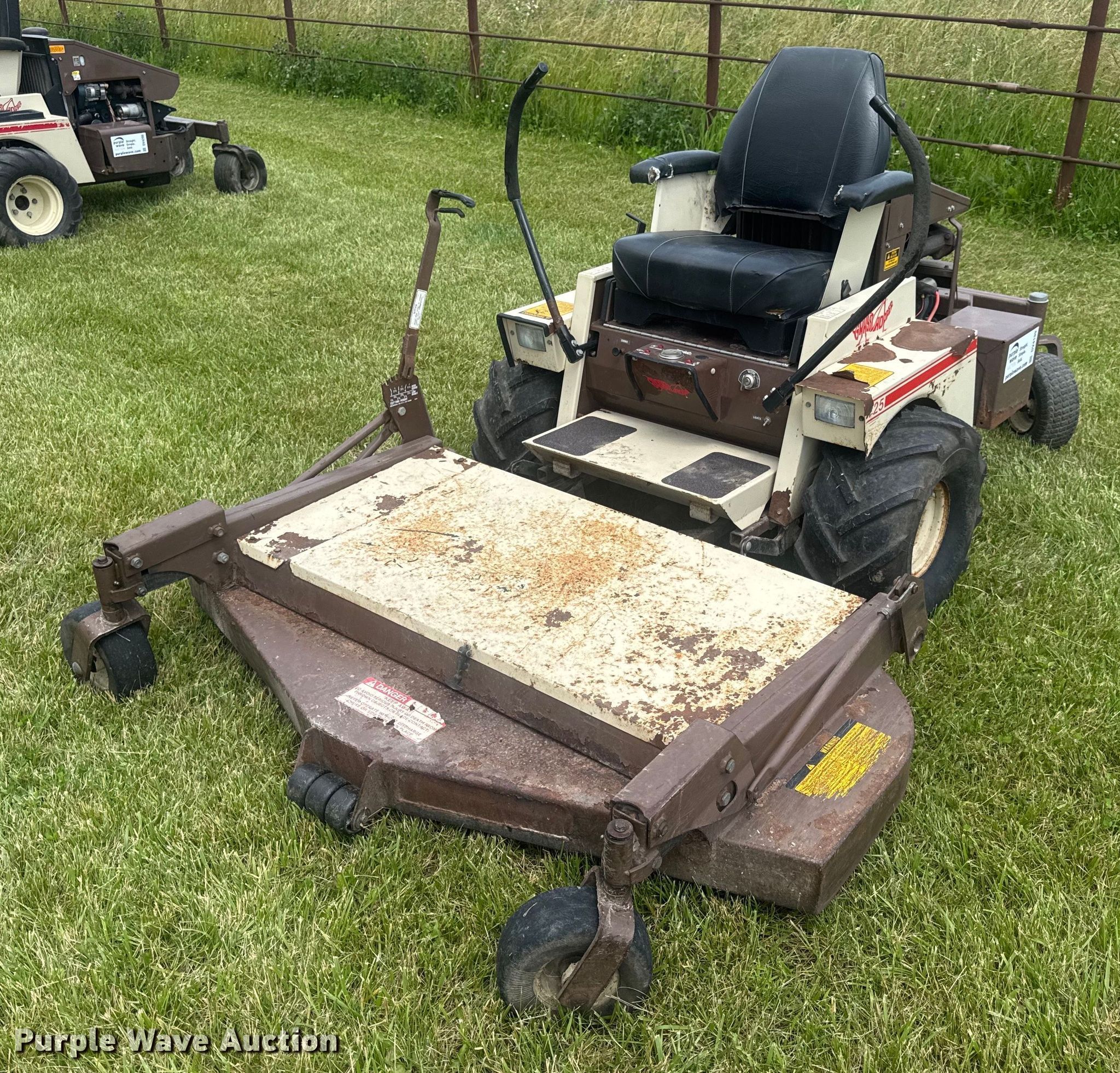 Purple Wave is selling a used Commercial Turf Mower in Missouri. This item is a Grasshopper 725 ZTR lawn mower with the following: Hours: 1,663 on meter, Cutting width: 61", Serial: 325760