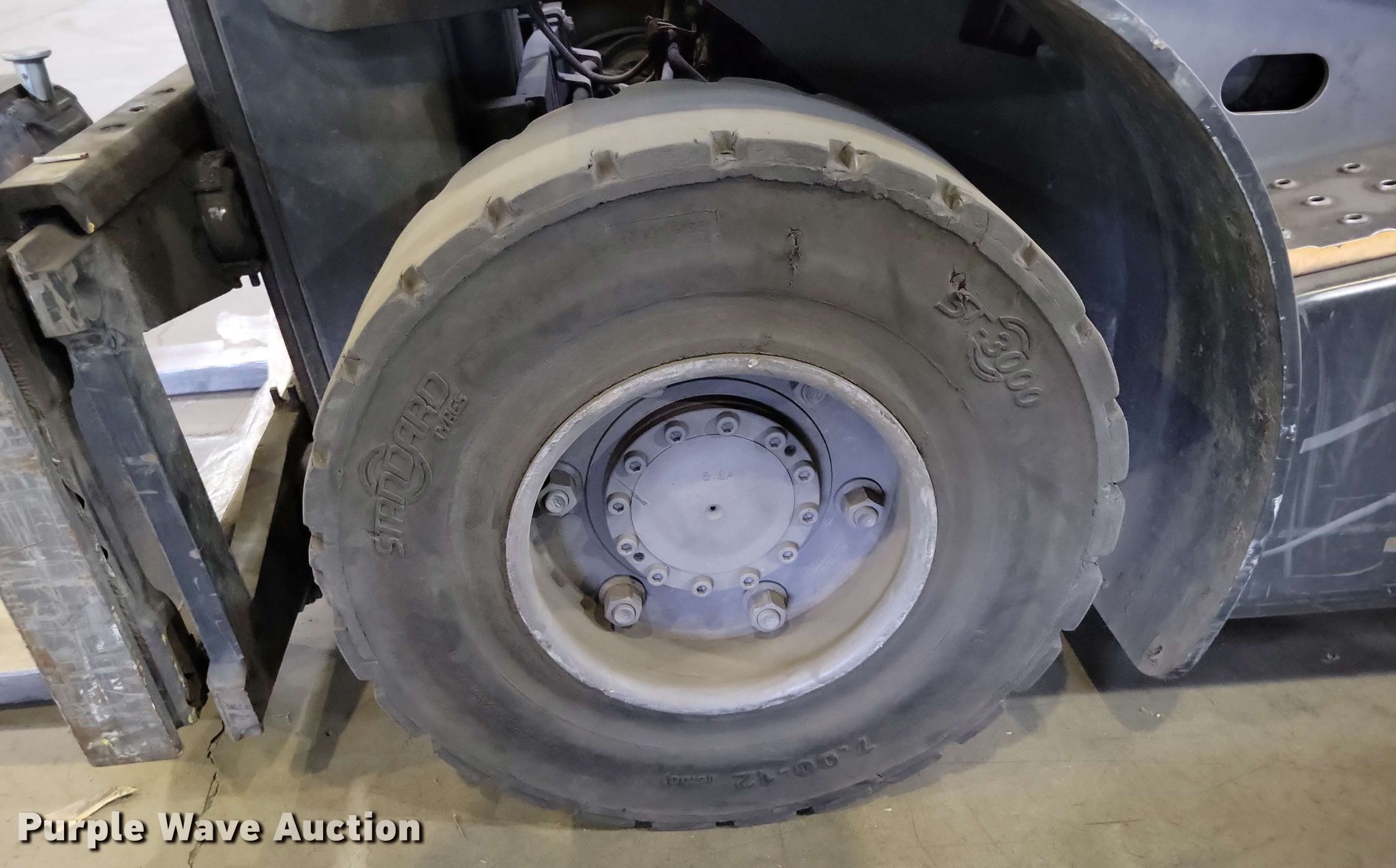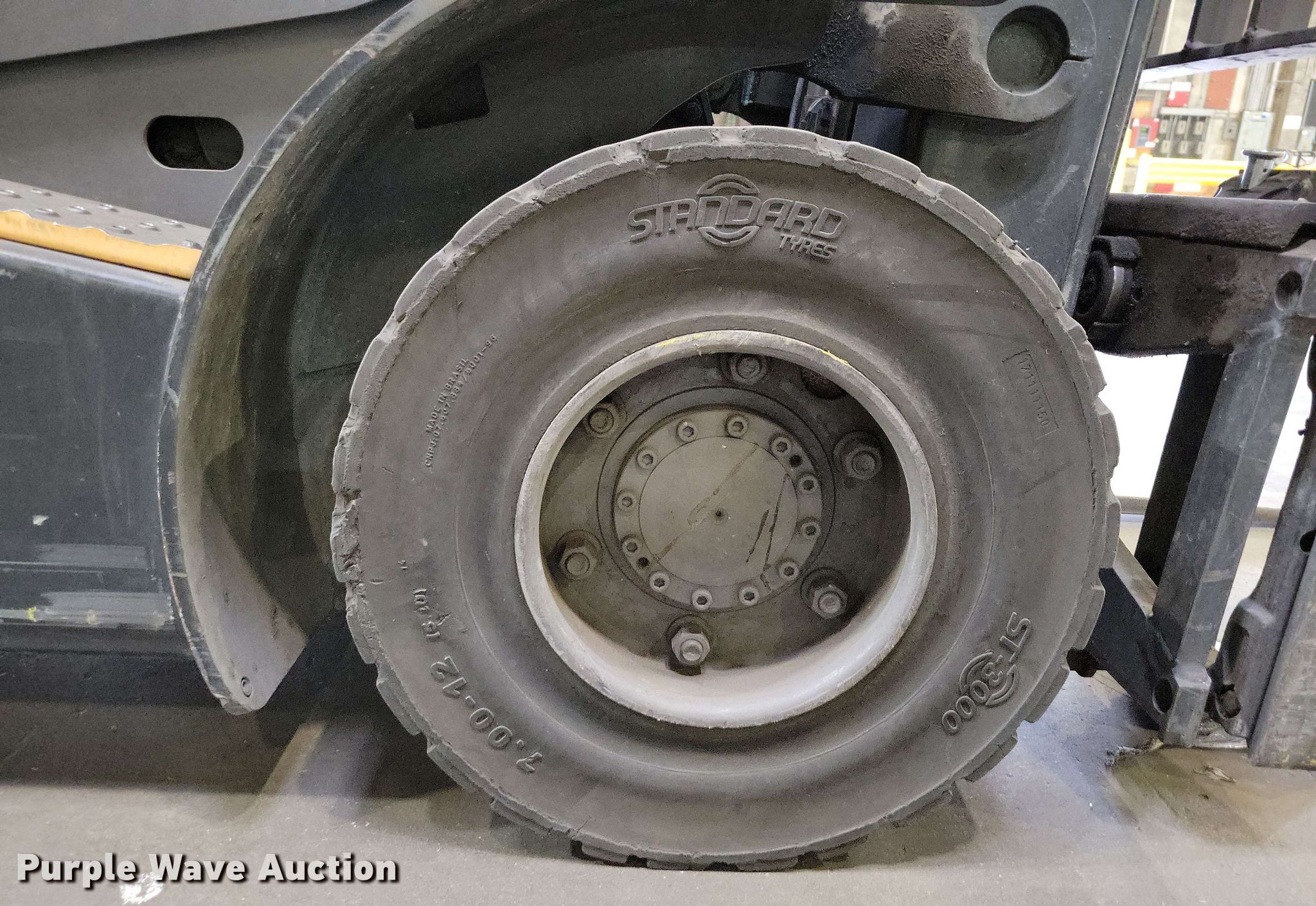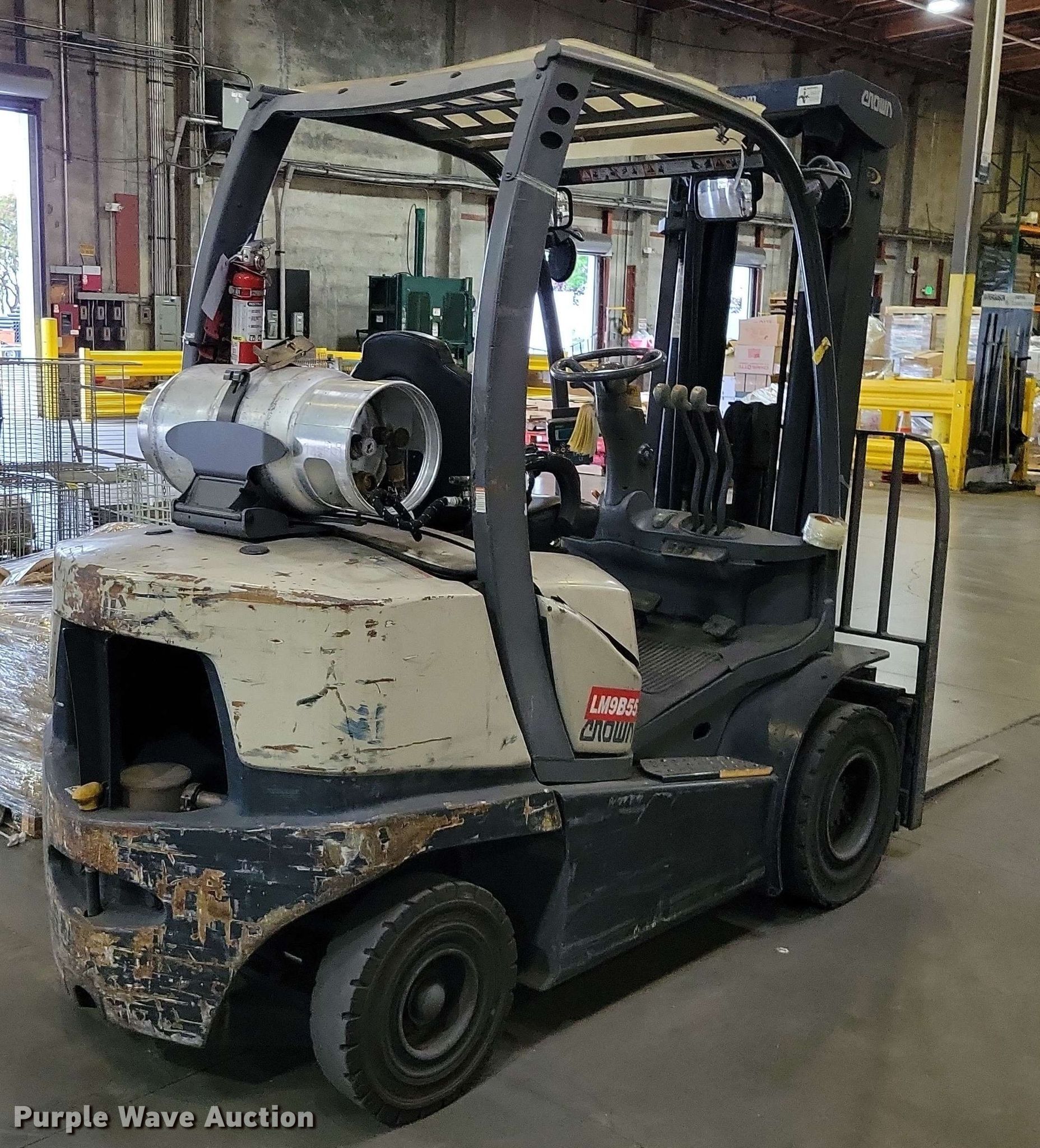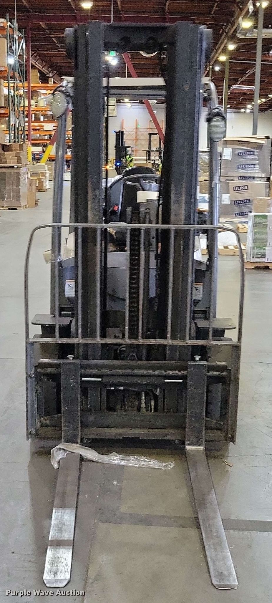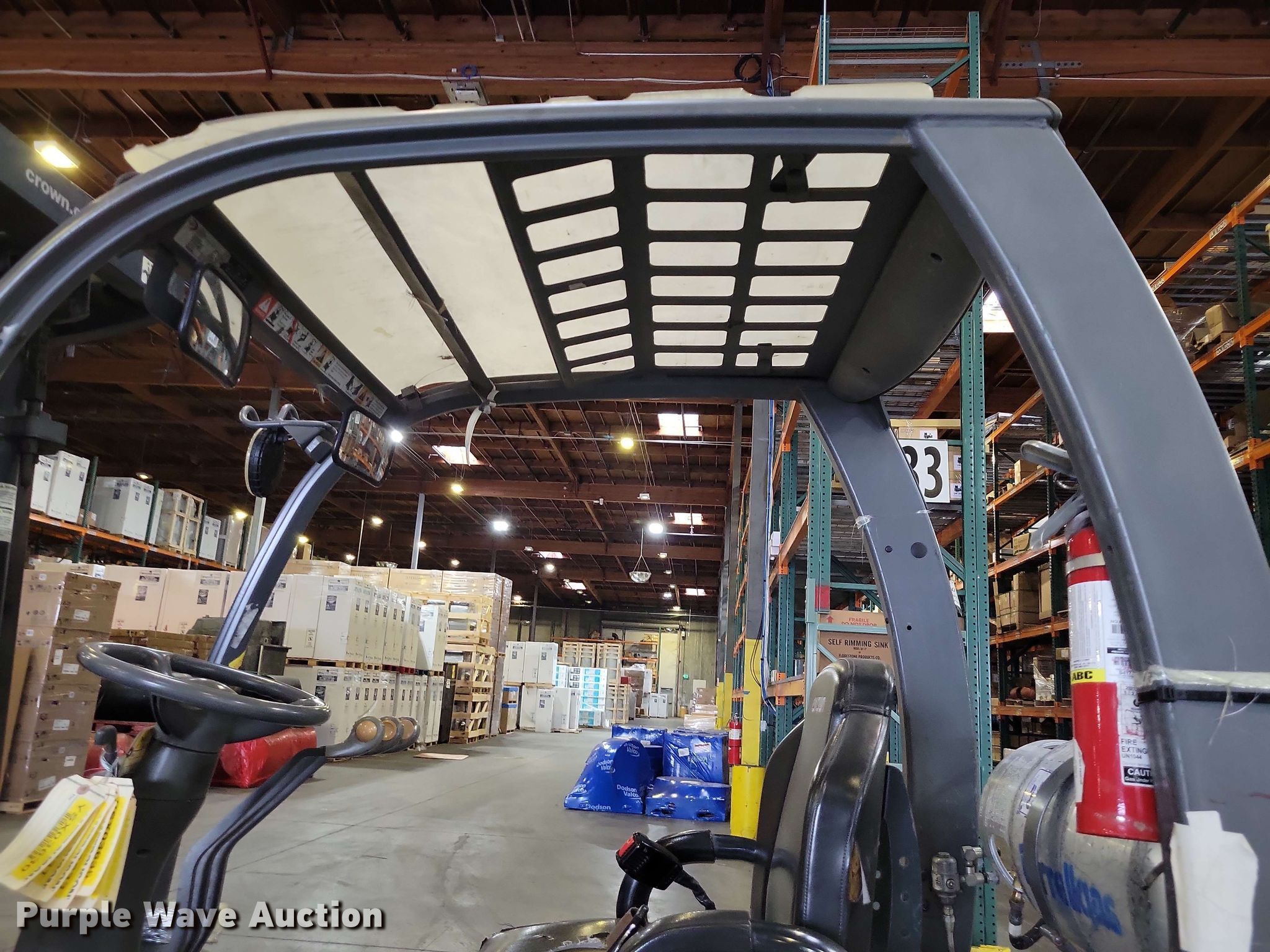 2016 Crown C51050-40 forklift. Hours: Unknown, Serial: 9A227582, Unit #: SFS2184. Engine Cylinders: 4, Fuel type: LPG LP bottle: Not included. Transmission Powershift. Operators station OROPS. Features Maximum lift capacity: 3,400 lbs, Maximum lift height: 206", Collapsed mast height: 90", Mast stages: 3, Side shift, Mast tilt, Fork length: 48". Tires Front: 7-12, Rear: 6-9, Solid. Notes Dead battery. Ferguson. San Leandro, CA 94577