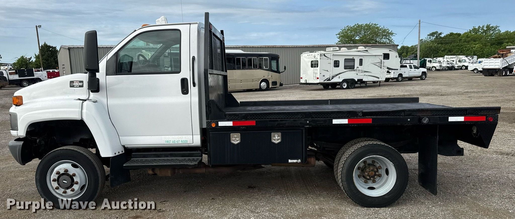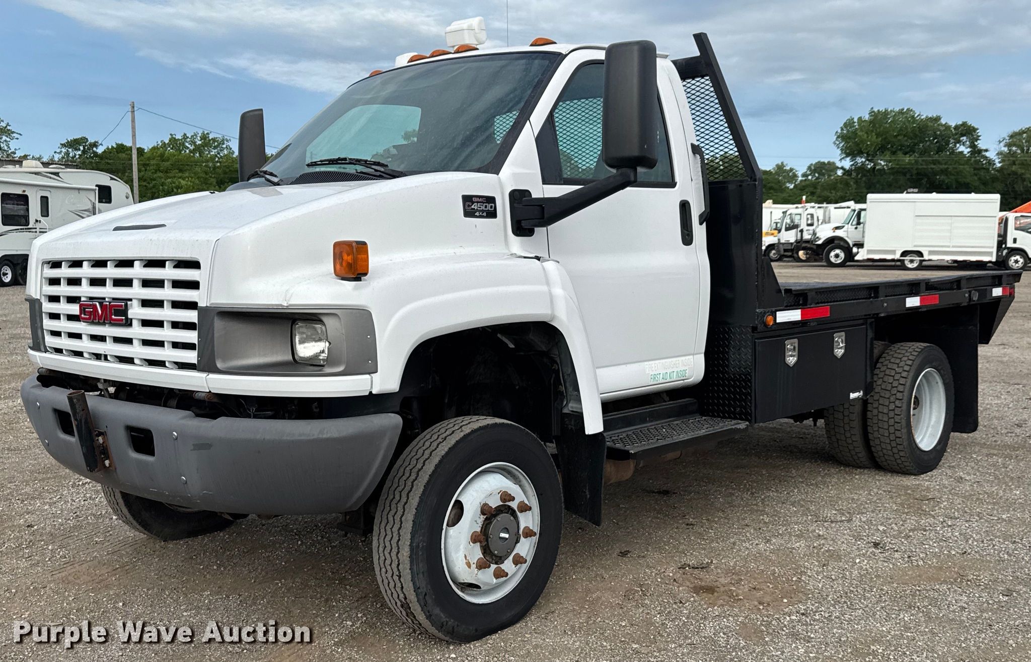 Purple Wave is selling a used Flat Bed Truck in Oklahoma. This item is a 2007 GMC C4500 flatbed truck with the following: Miles: 68,595 on odometer, Hours: 153 on meter, VIN: 1GDE4C3G97F416555