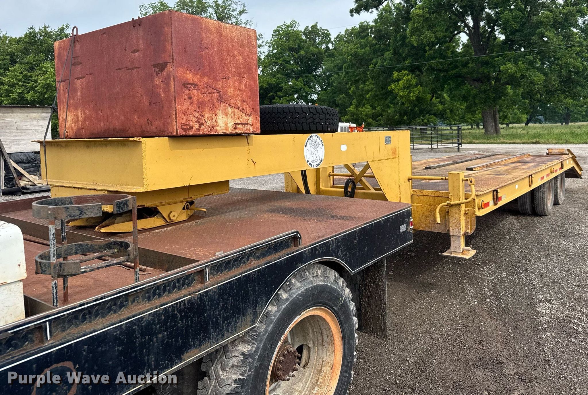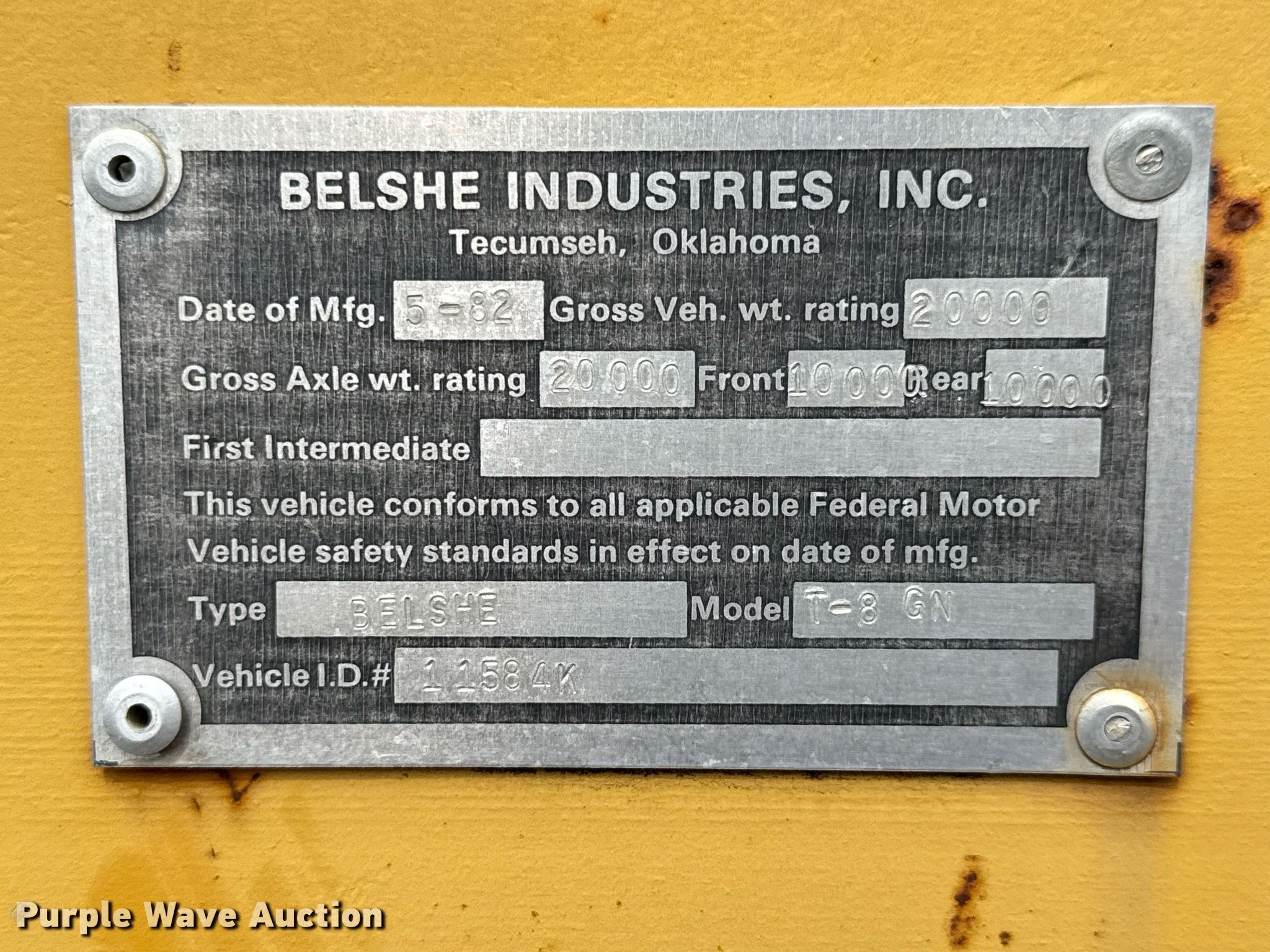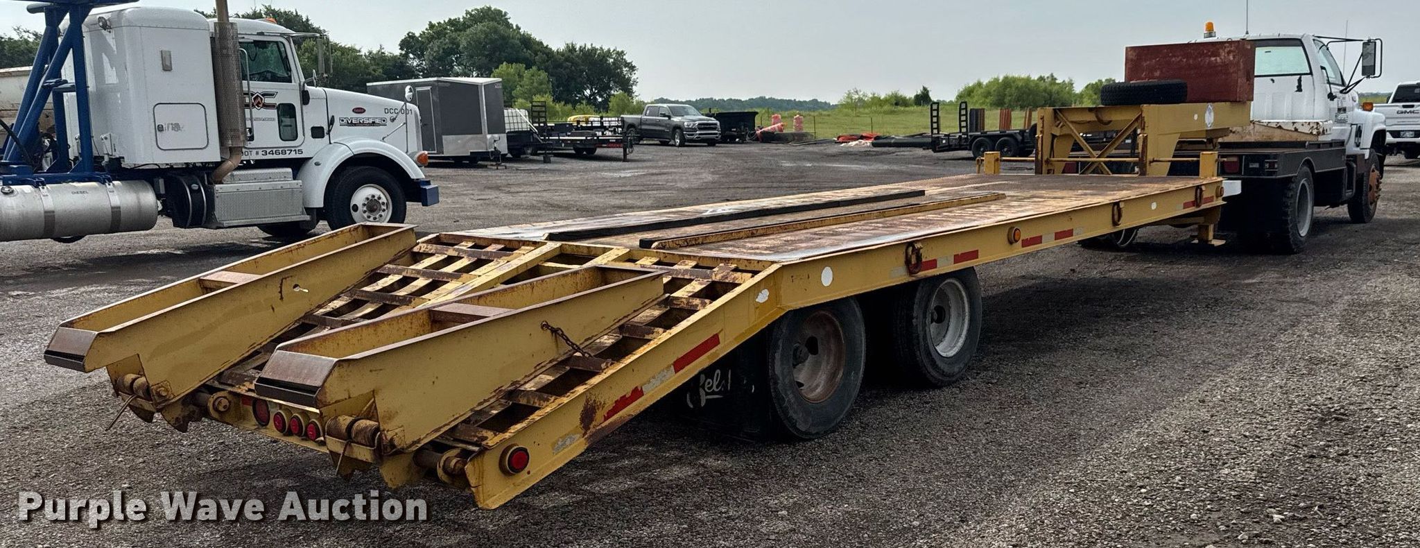 1991 Chevrolet Kodiak flatbed truck. Miles: 45,931 on odometer, VIN: 1GBG6H1P6MJ107579. Engine GM, Displacement: 6.0L, Cylinders: 8, Fuel type: Gas. Transmission Manual, Speed: 5, plus 2. Chassis Axles: Single, Suspension: Spring, Brakes: Hydraulic. Interior Heat. Features Flatbed 9' 7" L x 95" W, Hitch: Fifth wheel. Tires Size: 8.25-20. 1982 Belshe T-8 GN equipment trailer VIN: 11584K. Dimensions Overall: 36' 6" L x 95" W, Deck: 20' L x 95" W, Tail length: 64", Ramps: Manual Length: 54". Features Deck type: Steel. Chassis Landing gear: Dual, Suspension: Spring, Brakes: Air, Axles: Tandem. Tires Steel wheels, Size: 235/85R16. Truck - Oklahoma classic title. Trailer- Oklahoma title. Distribution of titles may be delayed up to 14 days from verification of funds.. Diversified Civil Contractors, LLC. Broken Arrow, OK 74014