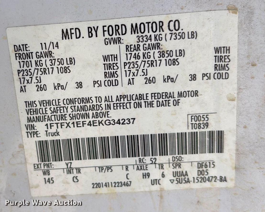 Purple Wave is selling a used 1/2 Ton Pickup or Van in Texas. This item is a 2014 Ford F150 SuperCab pickup truck with the following: Miles: 253,230 on odometer, VIN: 1FTFX1EF4EKG34237, Unit #: 45-14