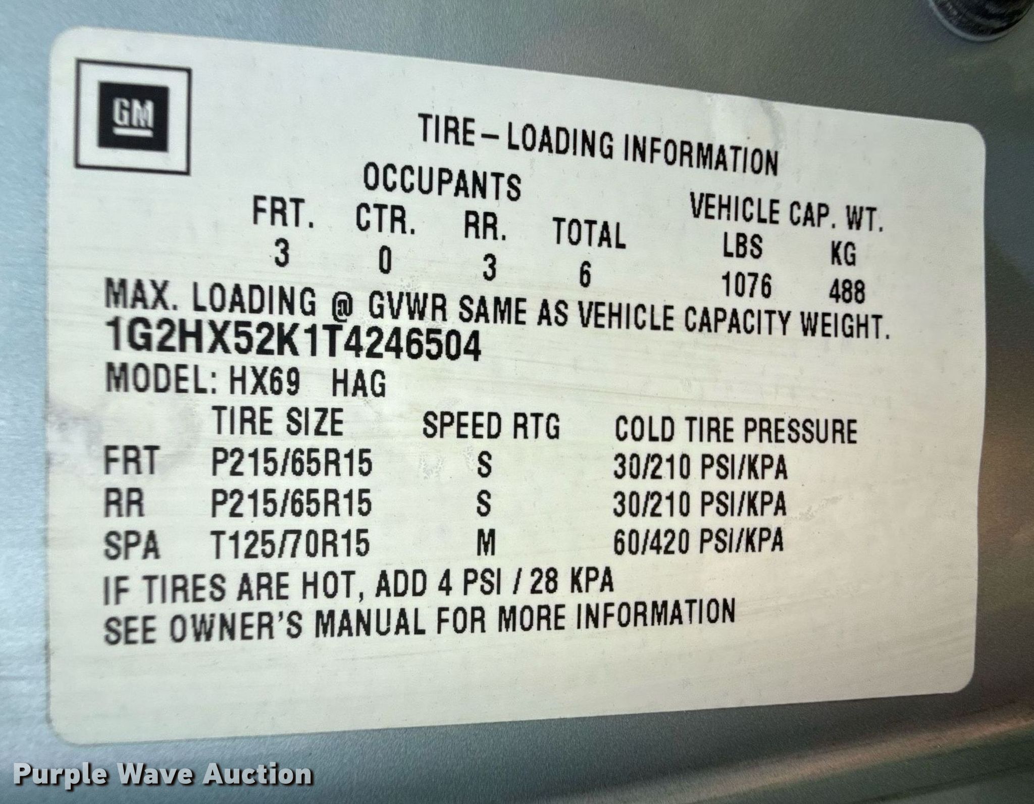 - VIN: 1G2HX52K1T4246504