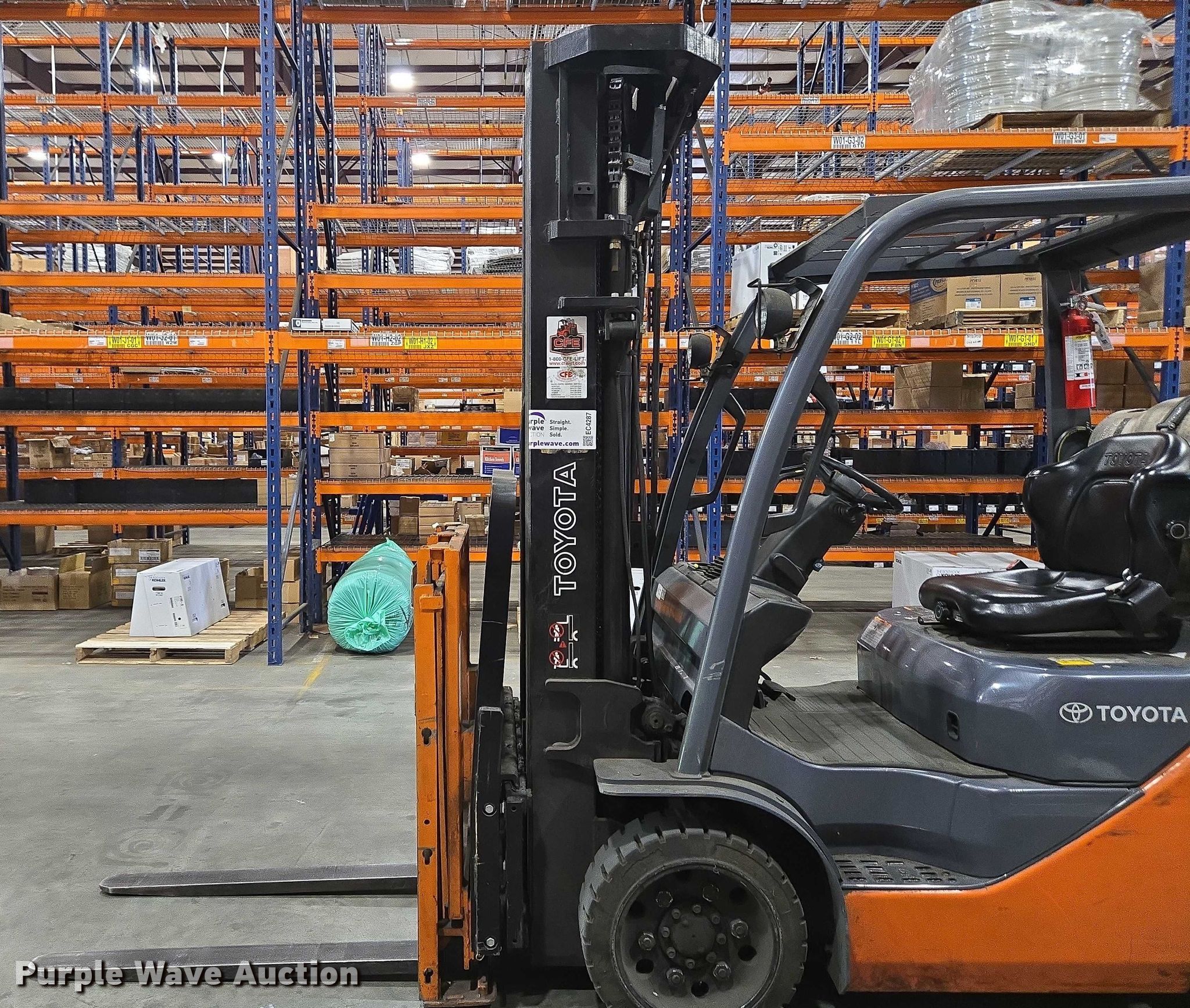 Take a look at this used Toyota 7FGU25 forklift being sold on July 16th, 2025 in the SOLD! July 16 Vehicles and Equipment Auction made by Toyota. Take a look at all of the item information below or take a look at similar auctions for Cushion Tire or Pneumatic Forklift.