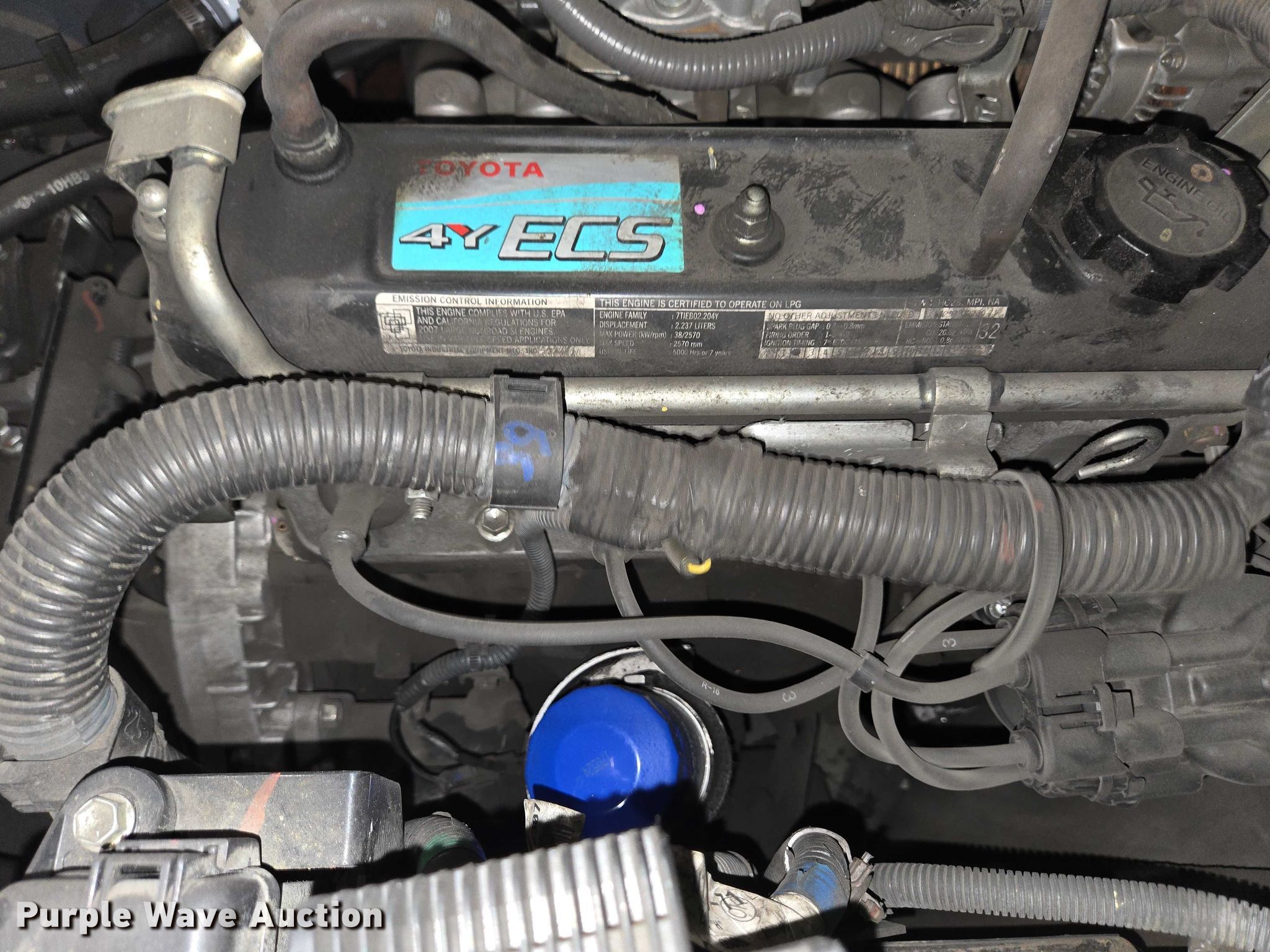 Toyota 7FGU25 forklift. Hours: 3,038 on meter, Serial: 10801, Unit #: SFS2205. Engine Toyota, Cylinders: 4, Fuel type: LPG LP bottle: Not included. Operators station OROPS. Features Maximum lift capacity: 1,600 lbs, Maximum lift height: 276", Collapsed mast height: 96", Mast stages: 4, Side shift, Fork length: 43". Tires Front: 21x7x15, Rear: 16x5x10.5, Solid. Ferguson. Waldorf, MD 20695