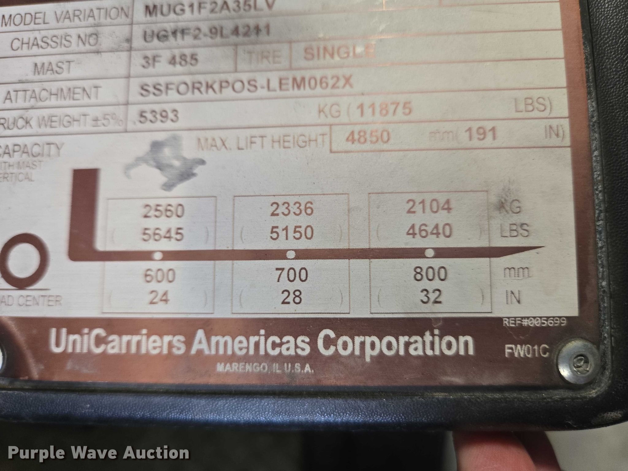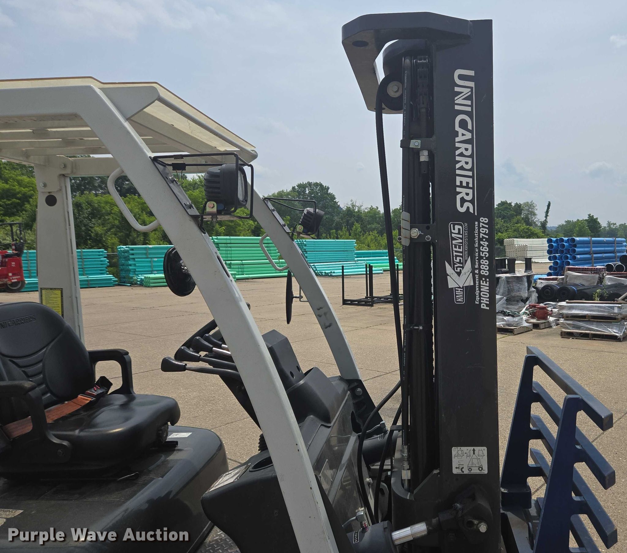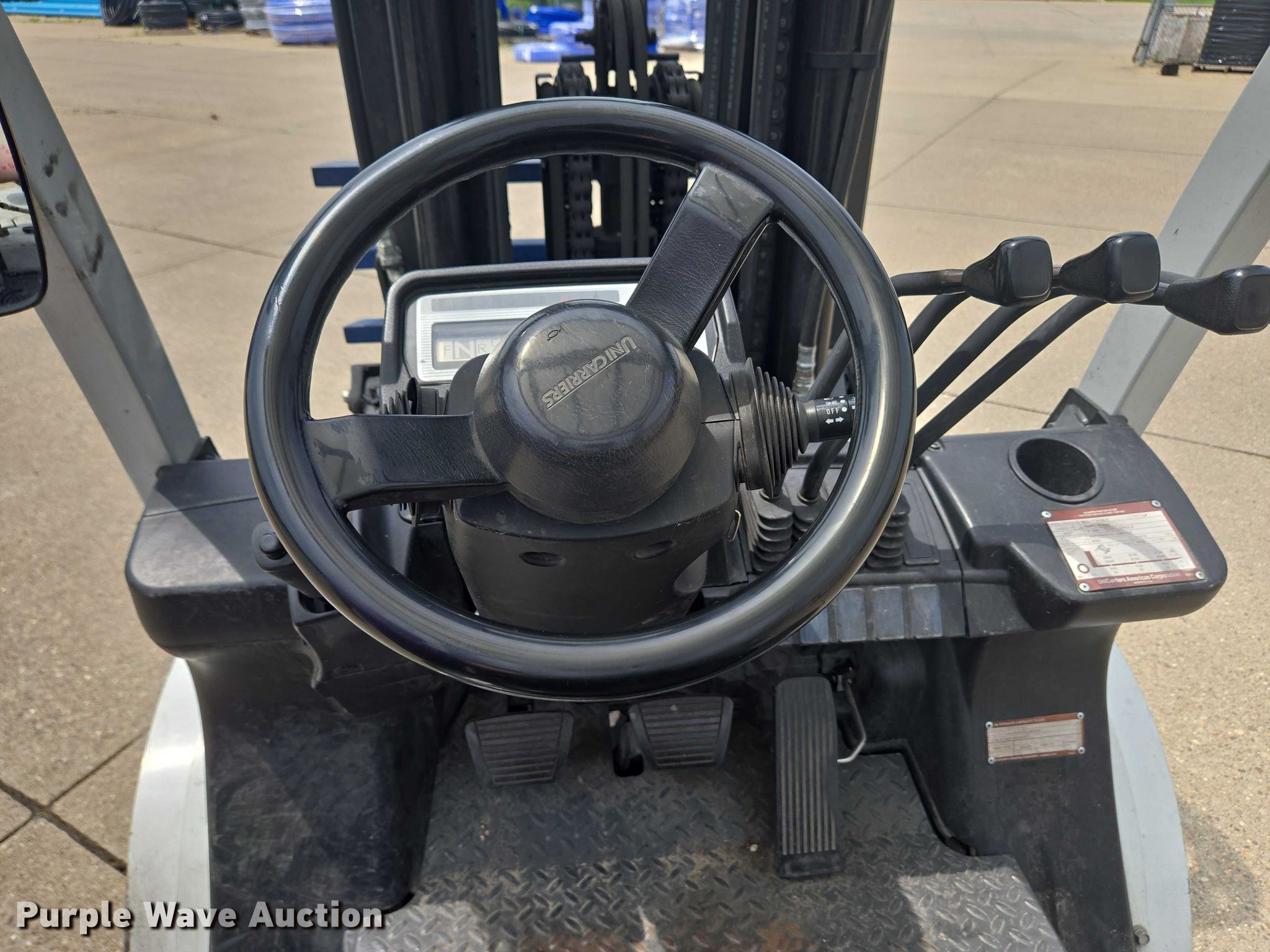 Purple Wave is selling a used Cushion Tire or Pneumatic Forklift in Ohio. This item is a 2014 Nissan PF70 forklift with the following: Hours: 3,403 on meter, Serial: UG1F2-9L4211, Unit #: SFS2204