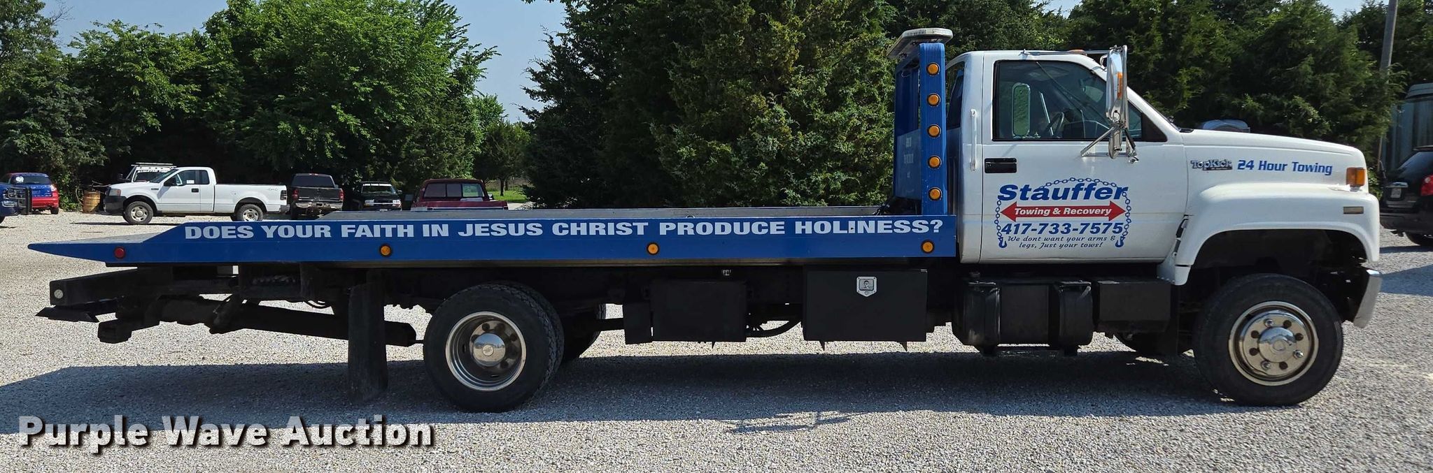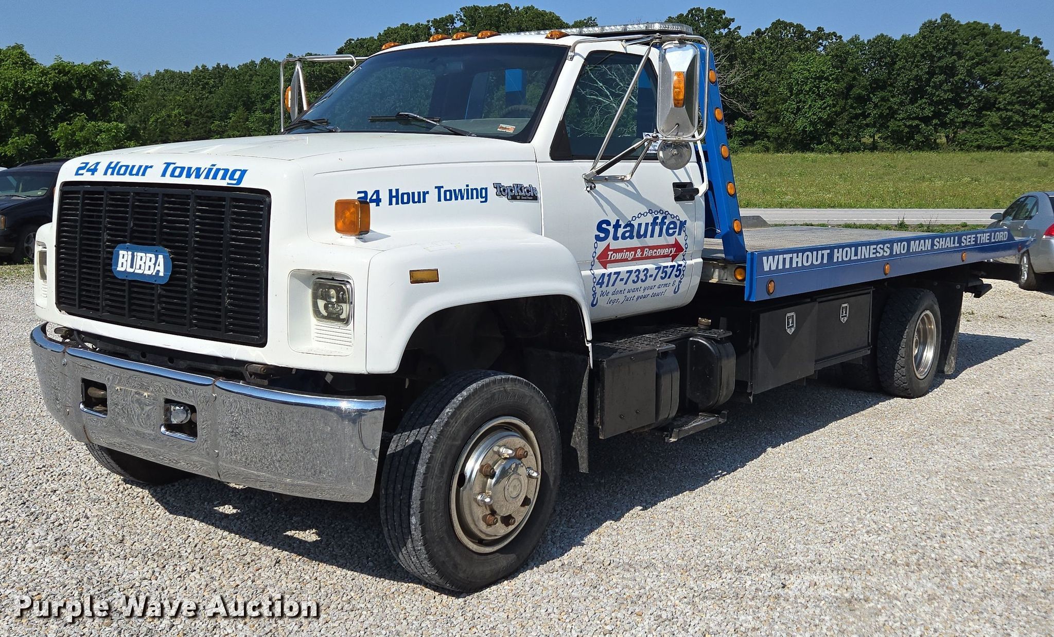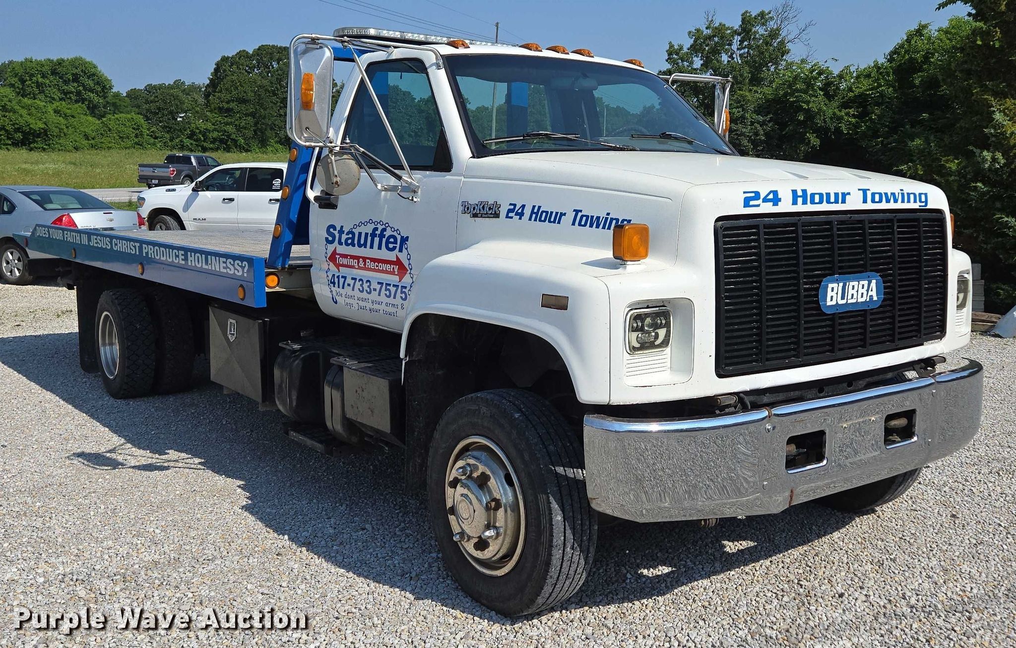 This 1995 GMC TopKick rollback truck will sell to the highest bidder regardless of price.