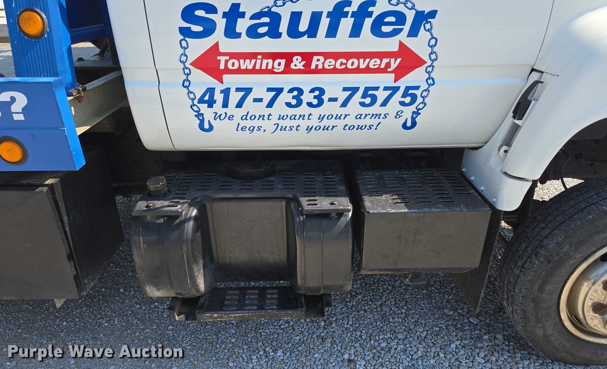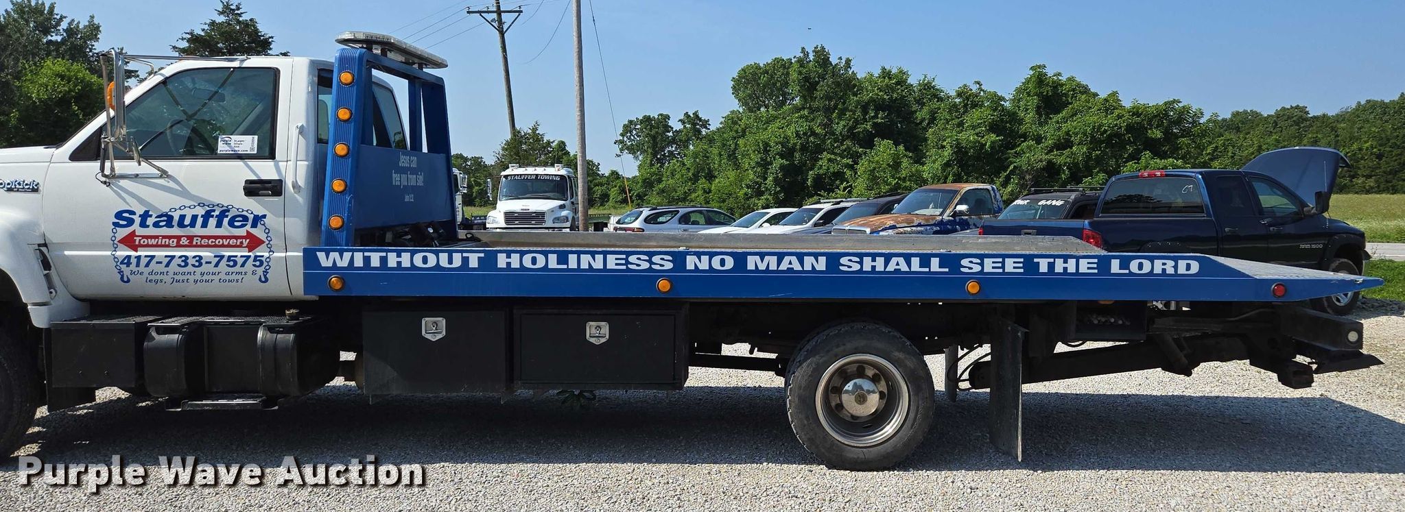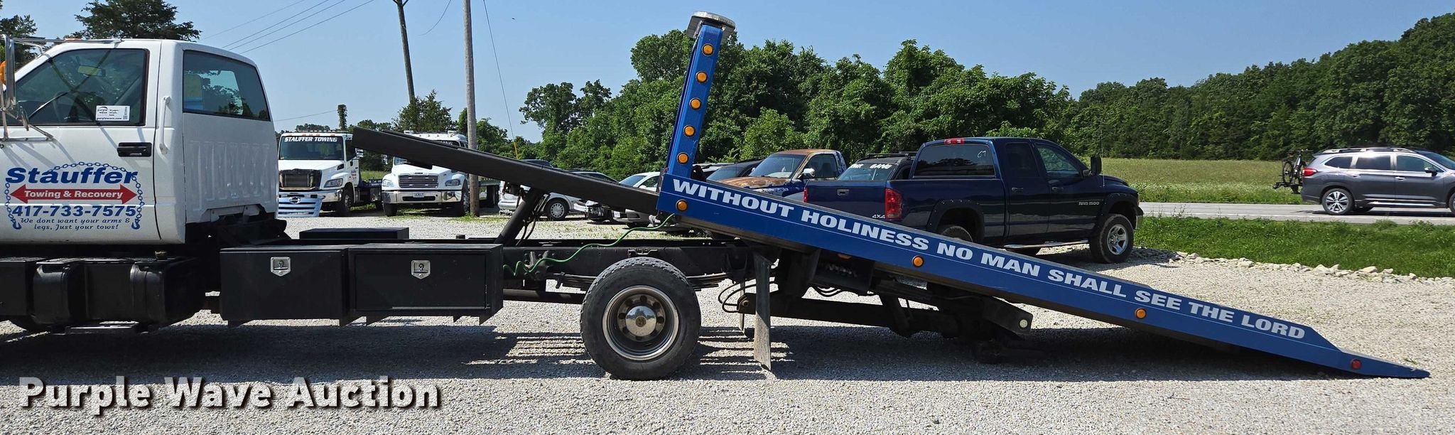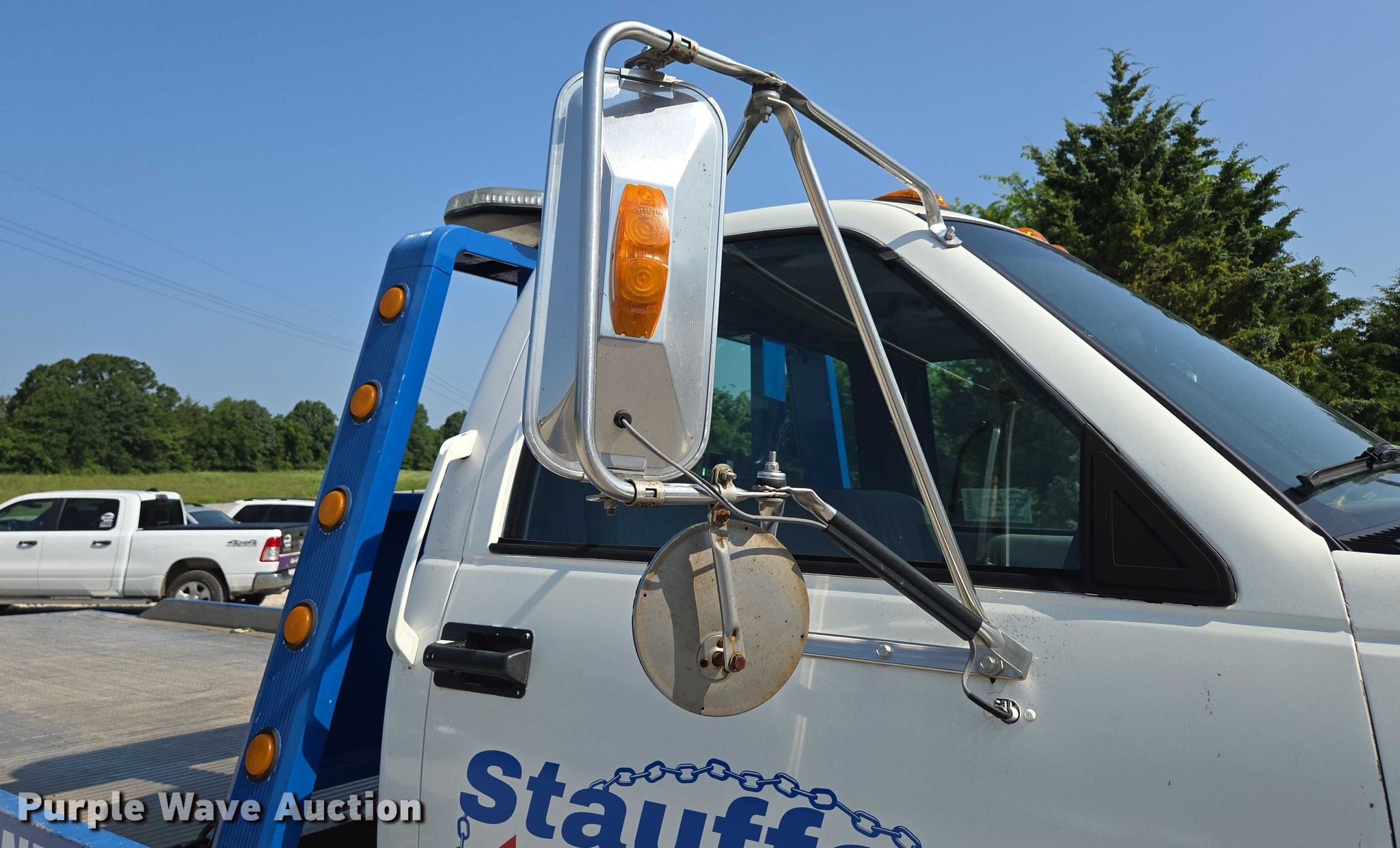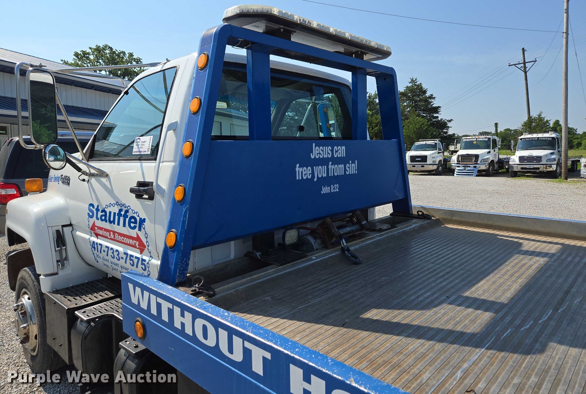 1995 GMC TopKick rollback truck. Miles: 288,137 on odometer, VIN: 1GDJ6H1J7SJ509648, Unit #: Bubba. Engine Caterpillar 3116, Serial: 9GK18395, Displacement: 6.6L, Cylinders: 6, Fuel type: Diesel, HP: 200. Transmission Manual, Speed: 6. Chassis Axles: Single, Suspension: Spring, Brakes: Hydraulic, PTO, GVWR: 23,540 lbs. Interior AC, Heat, Power windows, Power locks, Auxiliary controls. Features Rollback bed Chevron, Serial: 14155449, 19' 2" L x 97" W, Ram: Dual, Underlift, Synthetic winch rope 100' x 3/8". Tires Size: 245/70R19.5. Notes Decals will be removed prior to auction, Suspension issues Left rear leaf spring broken, Possible AC issues, may need charged. Missouri title. Seller is a Missouri licensed motor vehicle dealer. Title will be assigned and distributed by the dealer. Please contact the seller for distribution questions. Title distribution may be delayed up to 14 days from verification of funds. Stauffer Auto. Urbana, MO 65767