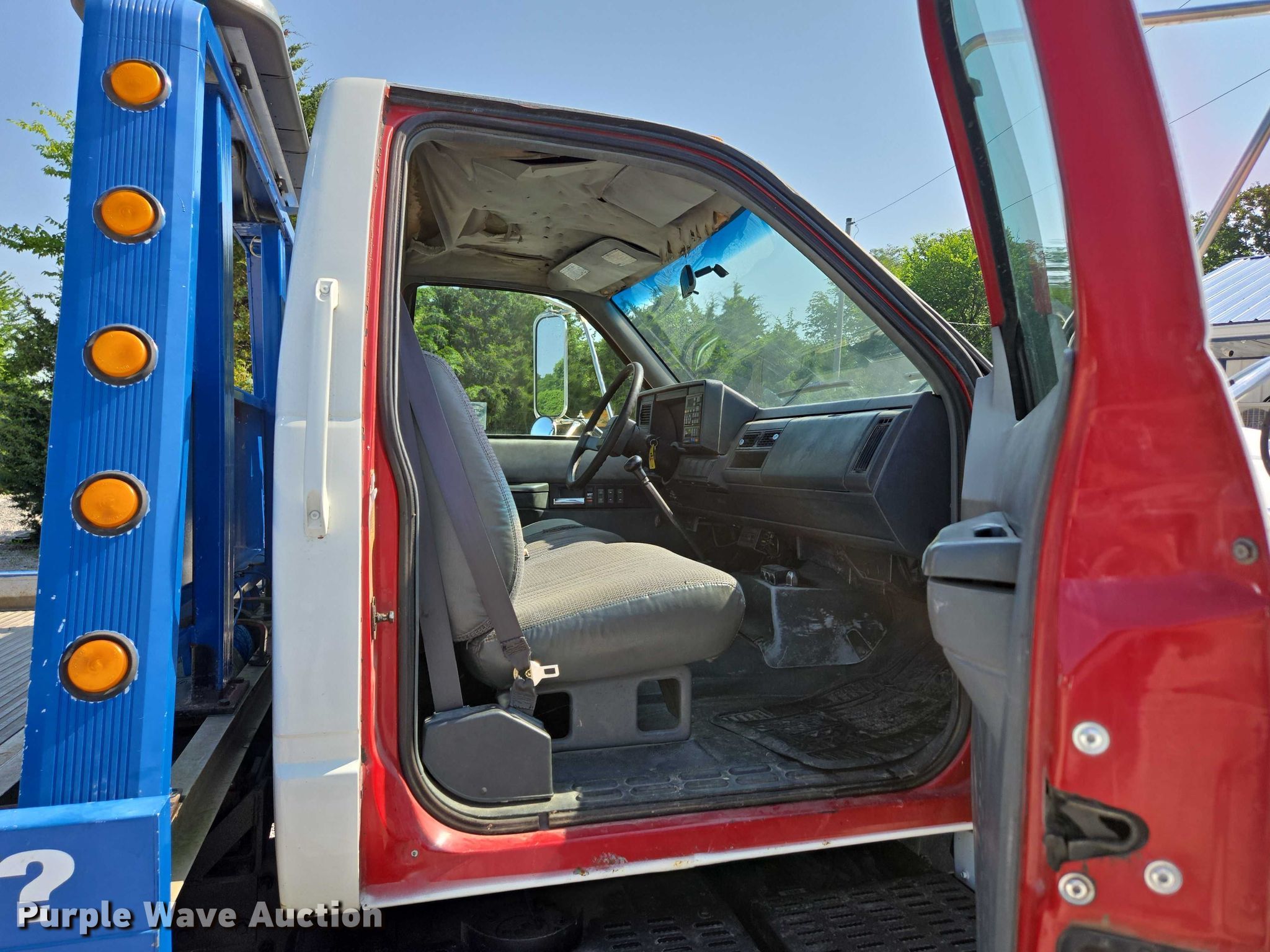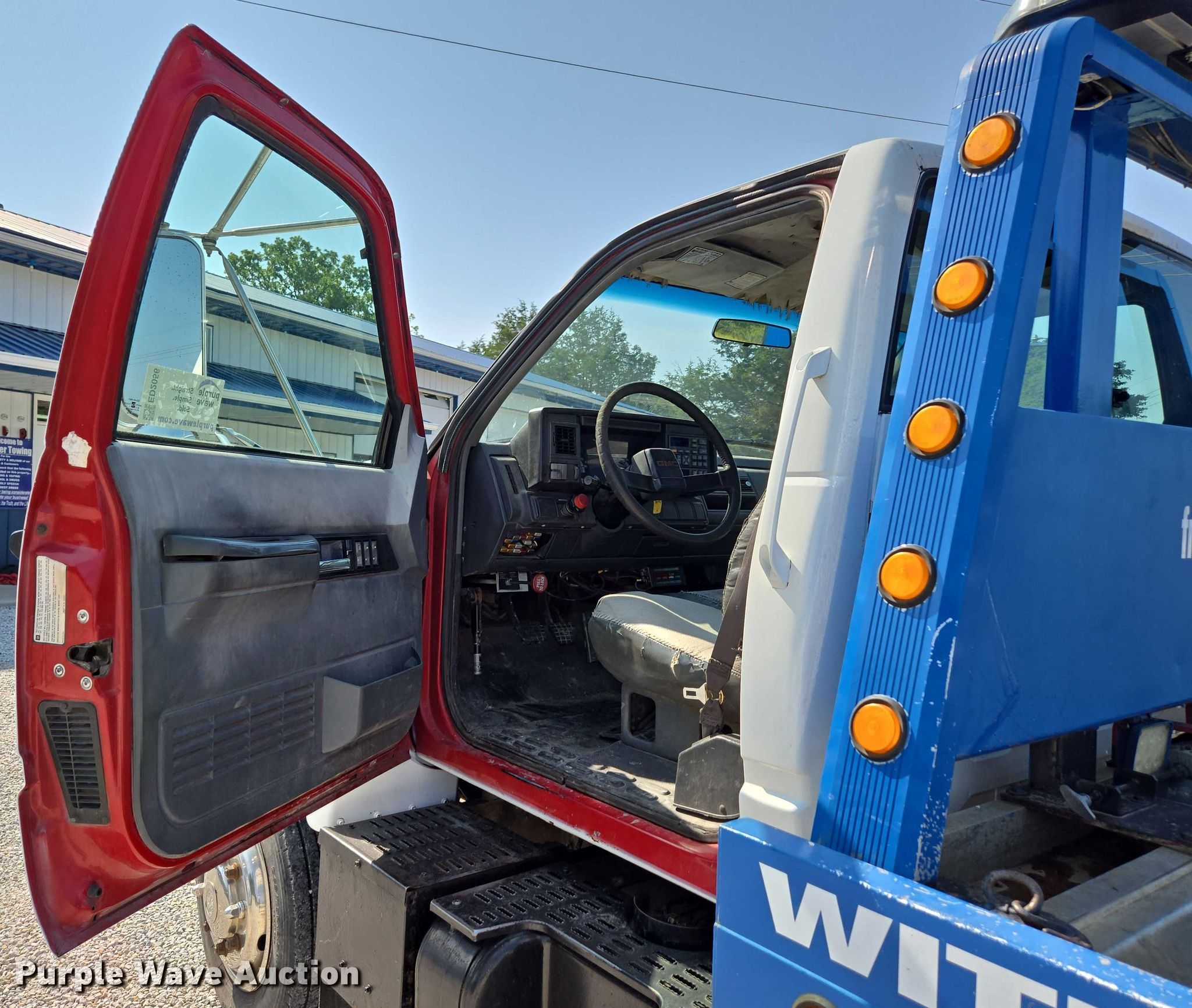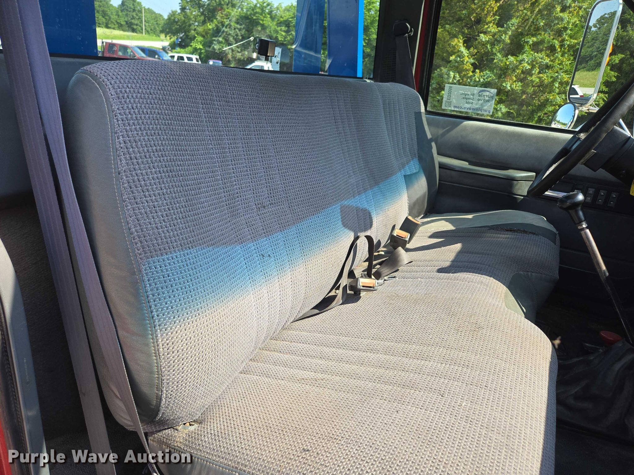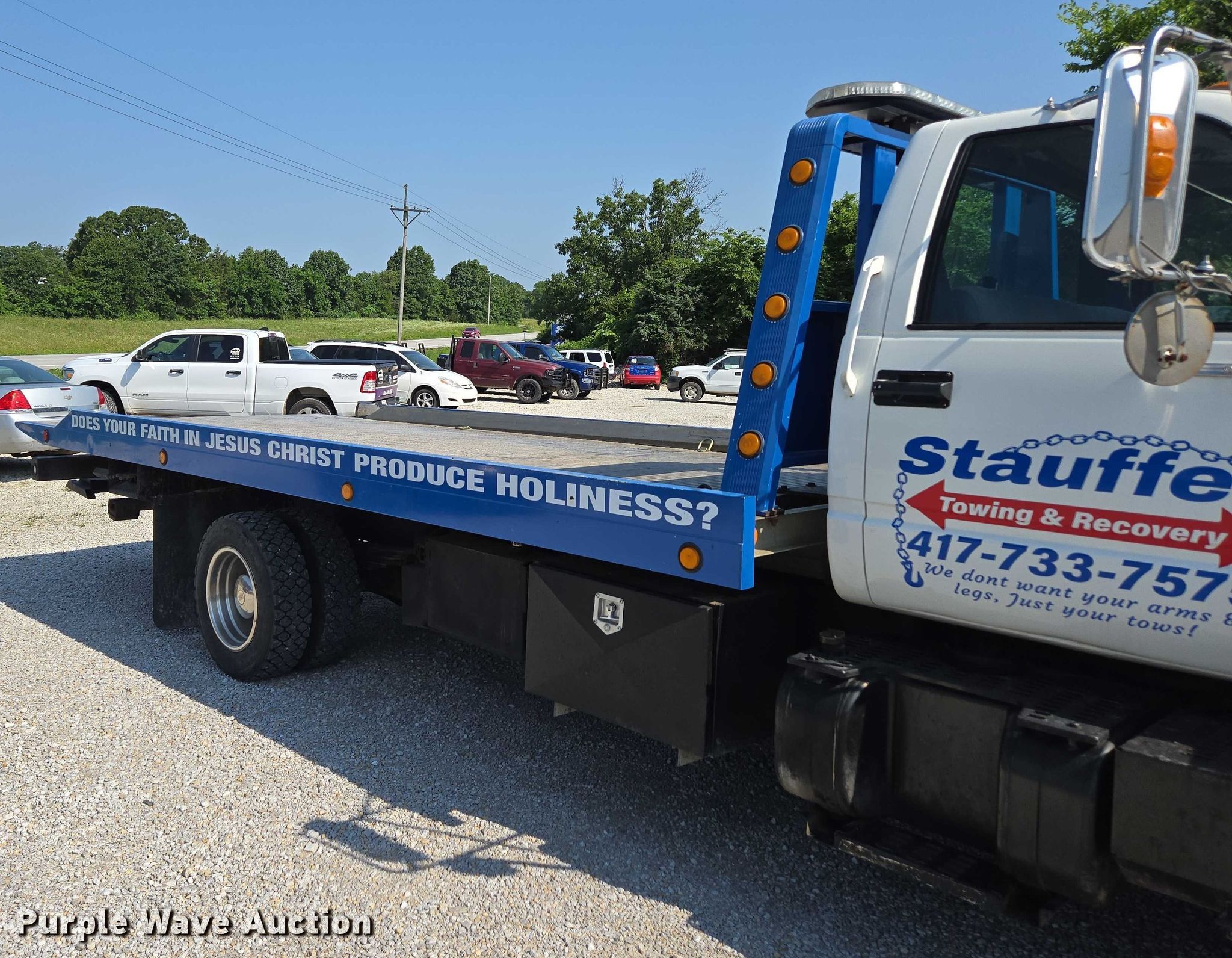 1995 GMC TopKick rollback truck. Miles: 288,137 on odometer, VIN: 1GDJ6H1J7SJ509648, Unit #: Bubba. Engine Caterpillar 3116, Serial: 9GK18395, Displacement: 6.6L, Cylinders: 6, Fuel type: Diesel, HP: 200. Transmission Manual, Speed: 6. Chassis Axles: Single, Suspension: Spring, Brakes: Hydraulic, PTO, GVWR: 23,540 lbs. Interior AC, Heat, Power windows, Power locks, Auxiliary controls. Features Rollback bed Chevron, Serial: 14155449, 19' 2" L x 97" W, Ram: Dual, Underlift, Synthetic winch rope 100' x 3/8". Tires Size: 245/70R19.5. Notes Decals will be removed prior to auction, Suspension issues Left rear leaf spring broken, Possible AC issues, may need charged. Missouri title. Seller is a Missouri licensed motor vehicle dealer. Title will be assigned and distributed by the dealer. Please contact the seller for distribution questions. Title distribution may be delayed up to 14 days from verification of funds. Stauffer Auto. Urbana, MO 65767