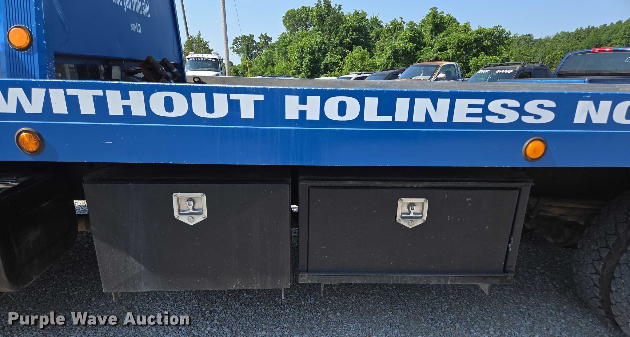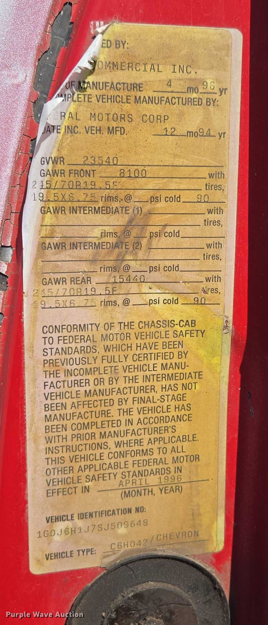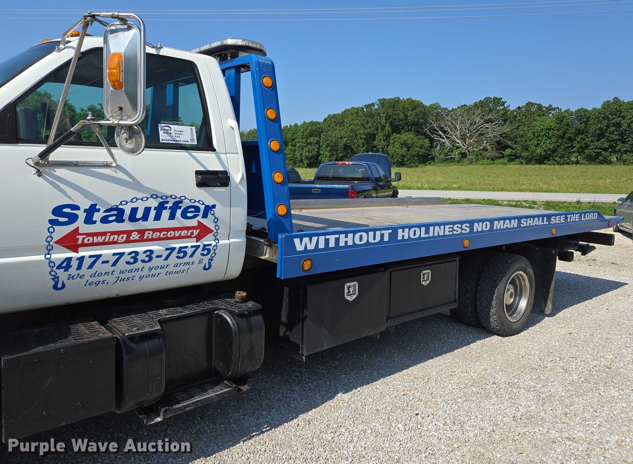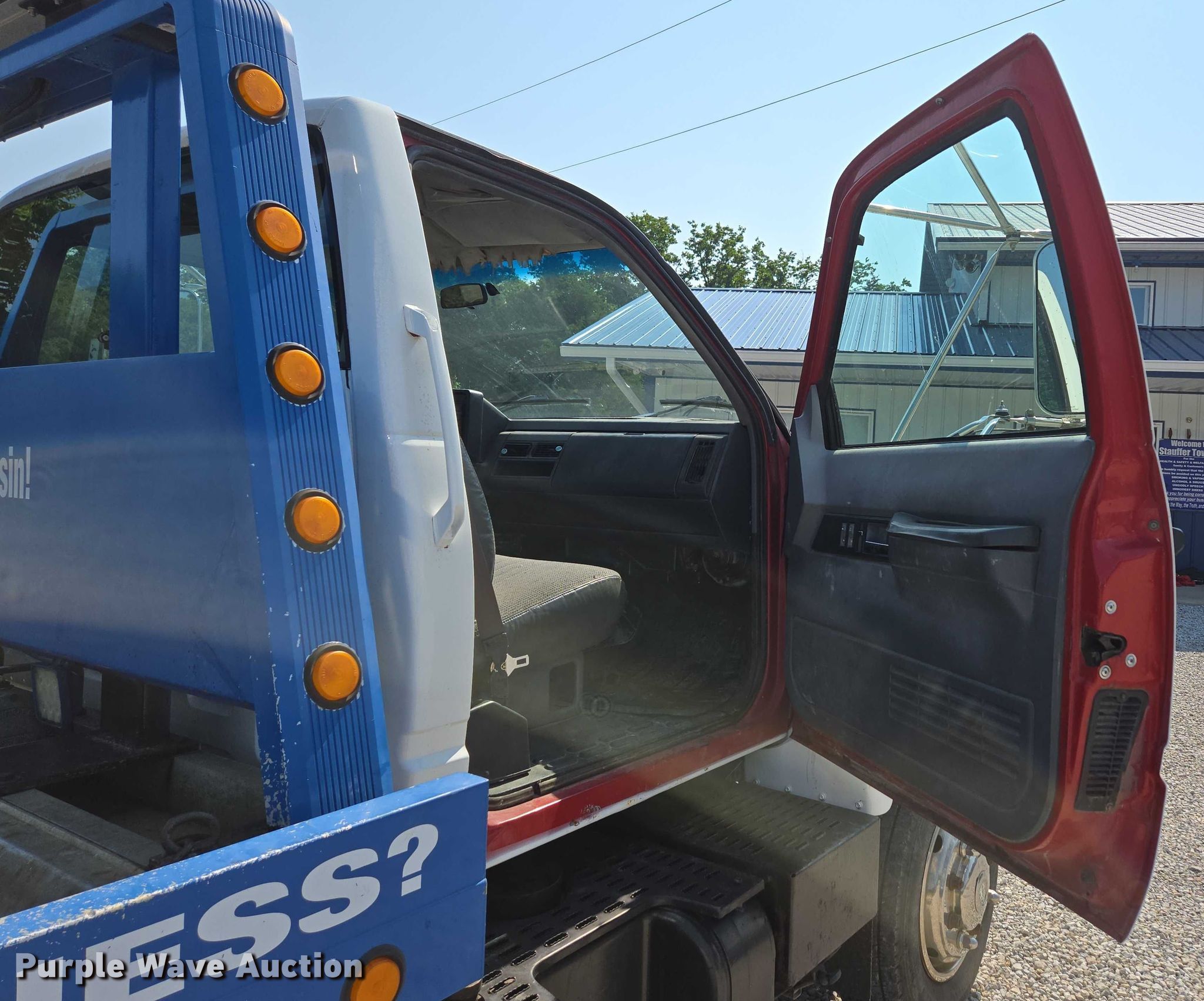 1995 GMC TopKick rollback truck. Miles: 288,137 on odometer, VIN: 1GDJ6H1J7SJ509648, Unit #: Bubba. Engine Caterpillar 3116, Serial: 9GK18395, Displacement: 6.6L, Cylinders: 6, Fuel type: Diesel, HP: 200. Transmission Manual, Speed: 6. Chassis Axles: Single, Suspension: Spring, Brakes: Hydraulic, PTO, GVWR: 23,540 lbs. Interior AC, Heat, Power windows, Power locks, Auxiliary controls. Features Rollback bed Chevron, Serial: 14155449, 19' 2" L x 97" W, Ram: Dual, Underlift, Synthetic winch rope 100' x 3/8". Tires Size: 245/70R19.5. Notes Decals will be removed prior to auction, Suspension issues Left rear leaf spring broken, Possible AC issues, may need charged. Missouri title. Seller is a Missouri licensed motor vehicle dealer. Title will be assigned and distributed by the dealer. Please contact the seller for distribution questions. Title distribution may be delayed up to 14 days from verification of funds. Stauffer Auto. Urbana, MO 65767