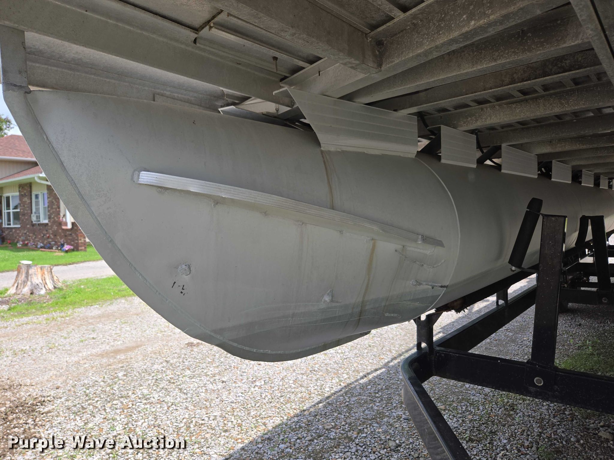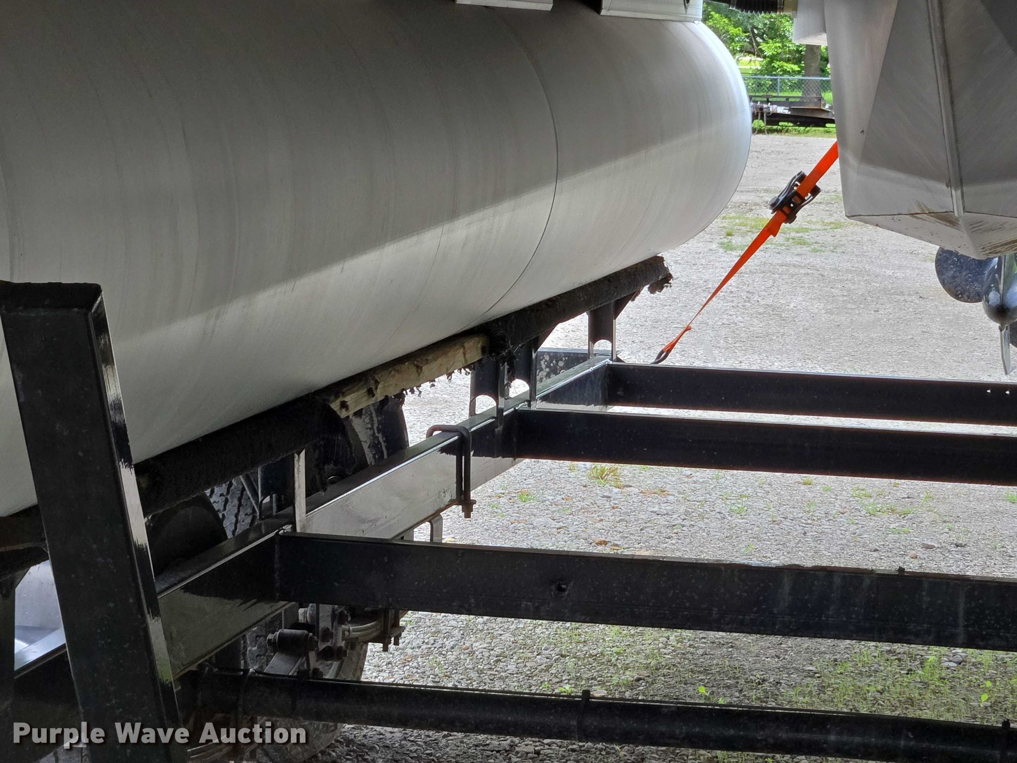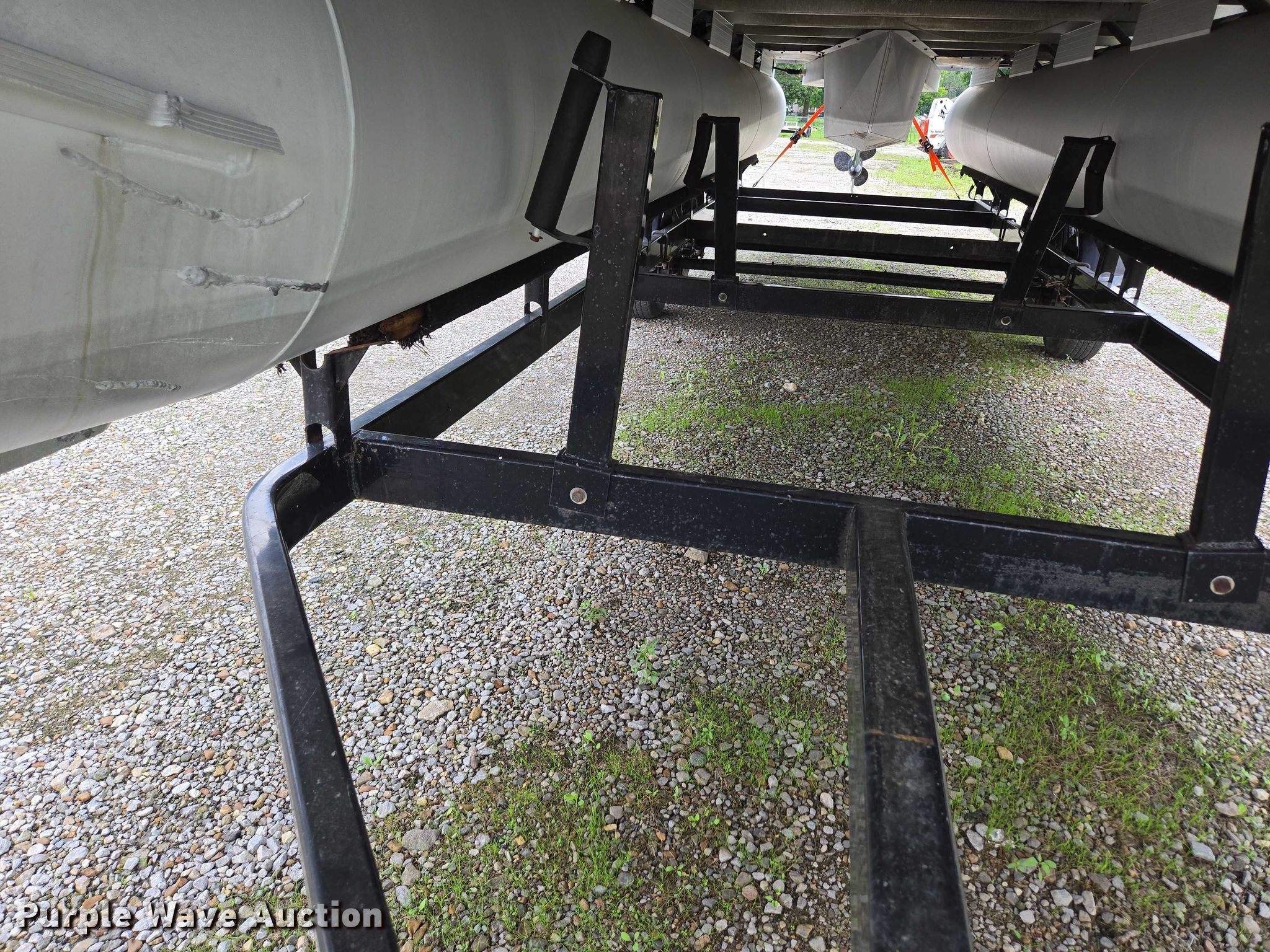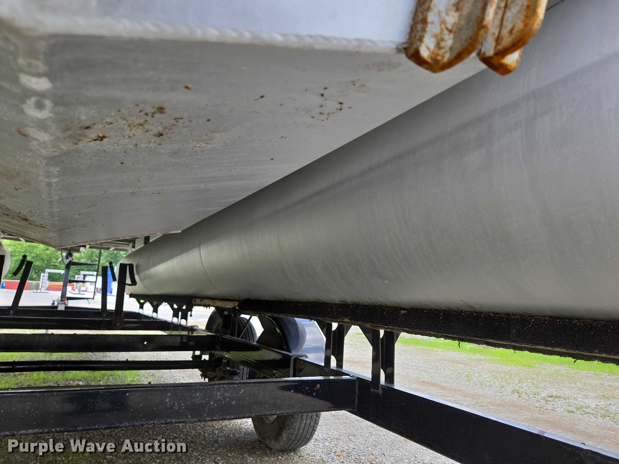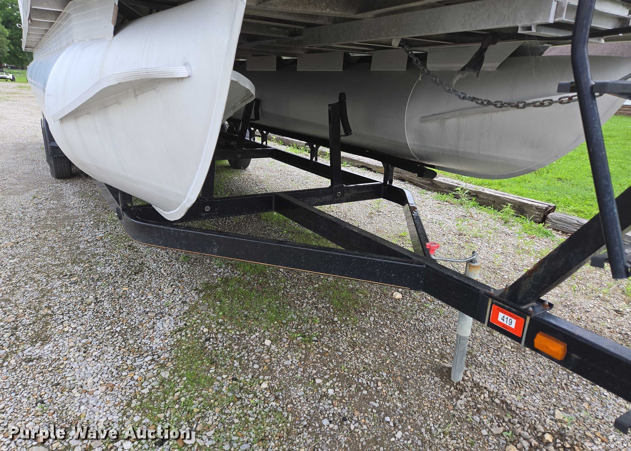 2003 Tracker Party Barge 27 I/O boat. Length: 27' 6", Hull ID: BUJ27684L203. Engine Engine type: Inboard, Mercury MCM 3.0 Litre, Displacement: 181 C.I.D., Cylinders: 4, Fuel type: Gas, Outdrive Make: Mercury, Model: MerCruiser Alpha One, Serial: 0M565042, Propeller: Aluminum. Operators station Capacity Person: 16, 2,260 lbs, Depth finder: Eagle Fish Easy. Features Wakeboard/ ski tower, Bimini top. Trailer Tracker Marine L.P. Trailstar, VIN: 4TM13CR242B001093, Overall length: 32' 3", Overall width: 91.5", GVWR: 6,500 lbs, Axles: Tandem, Brakes: Hydraulic, Tire size: ST205/75R14. Notes Weld repair on right pontoon, Contents not included, Bimini top removed but included, Interior compartment latch issues, Brakes disconnected. Boat: Oklahoma title. Trailer: Bill of Sale. Title distribution may be delayed up to 14 days from verification of funds. Hipfl Construction Inc.. Frontenac, KS 66763