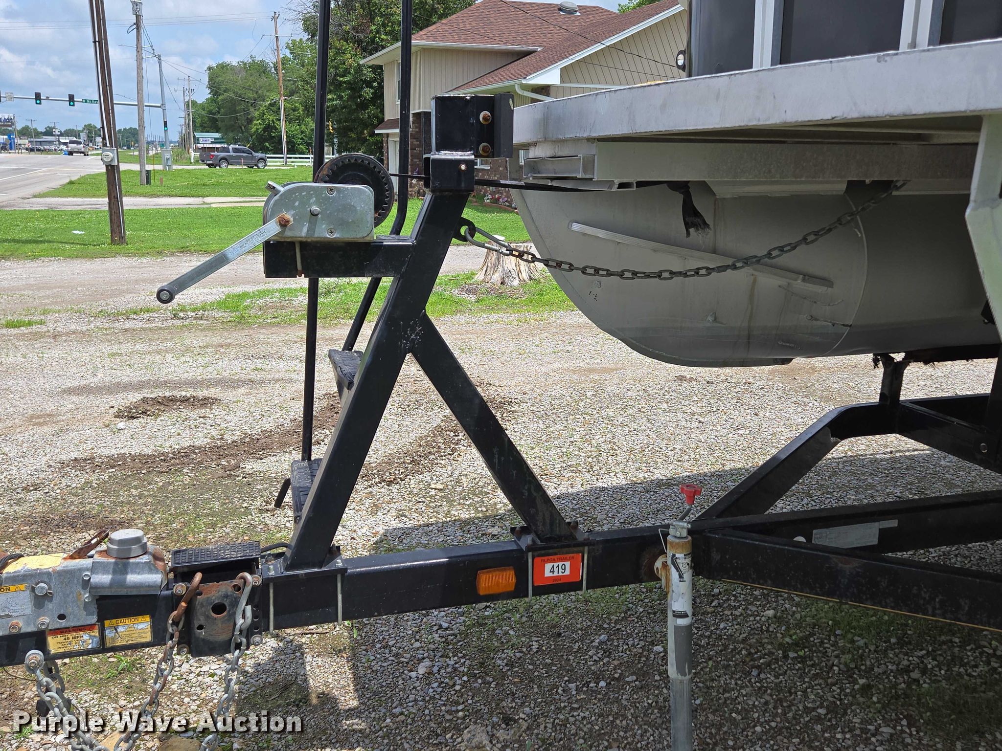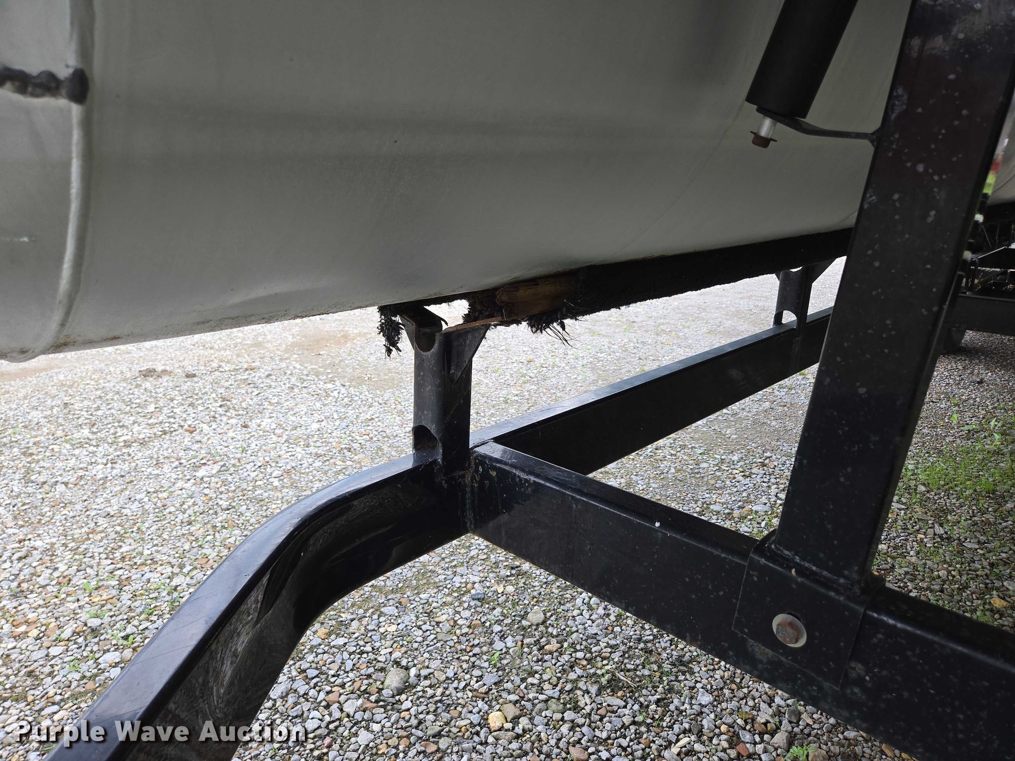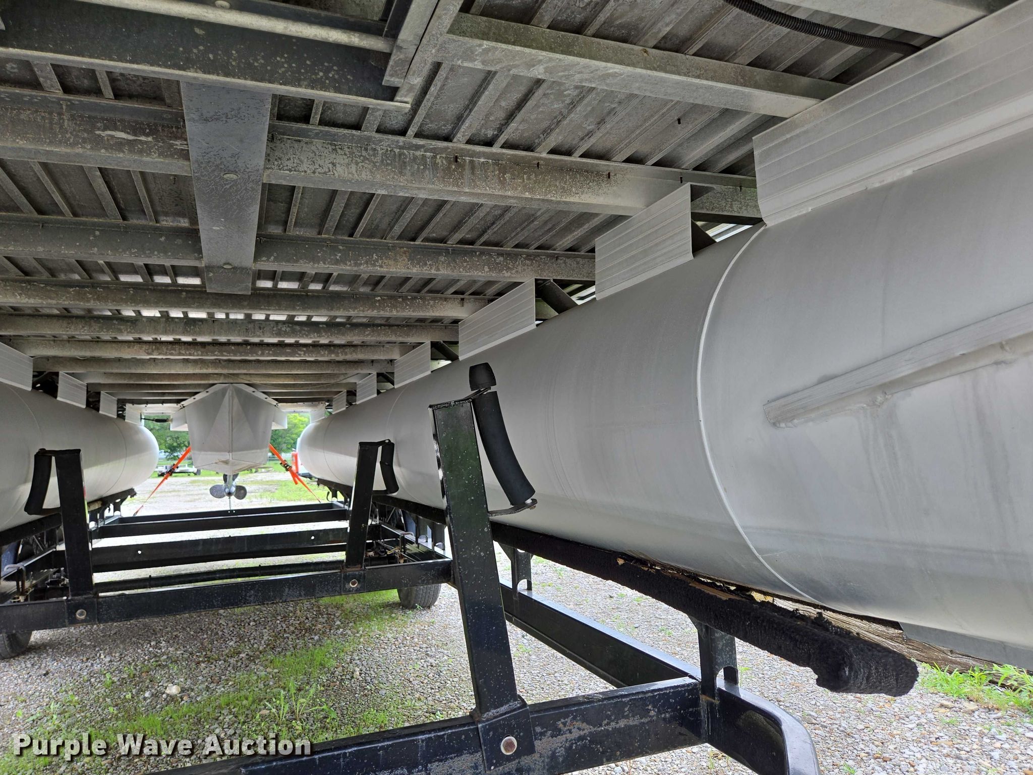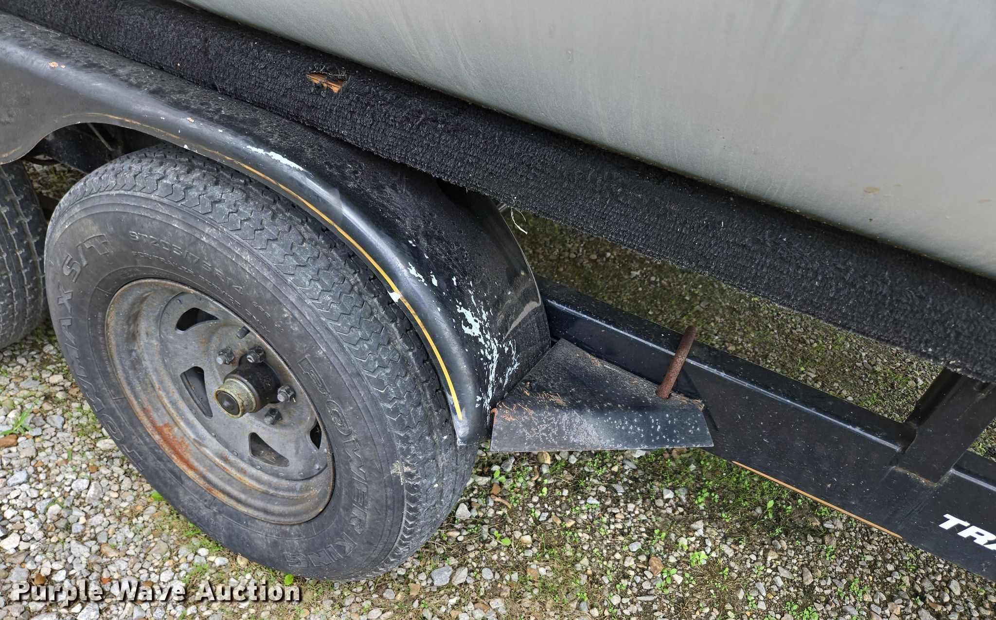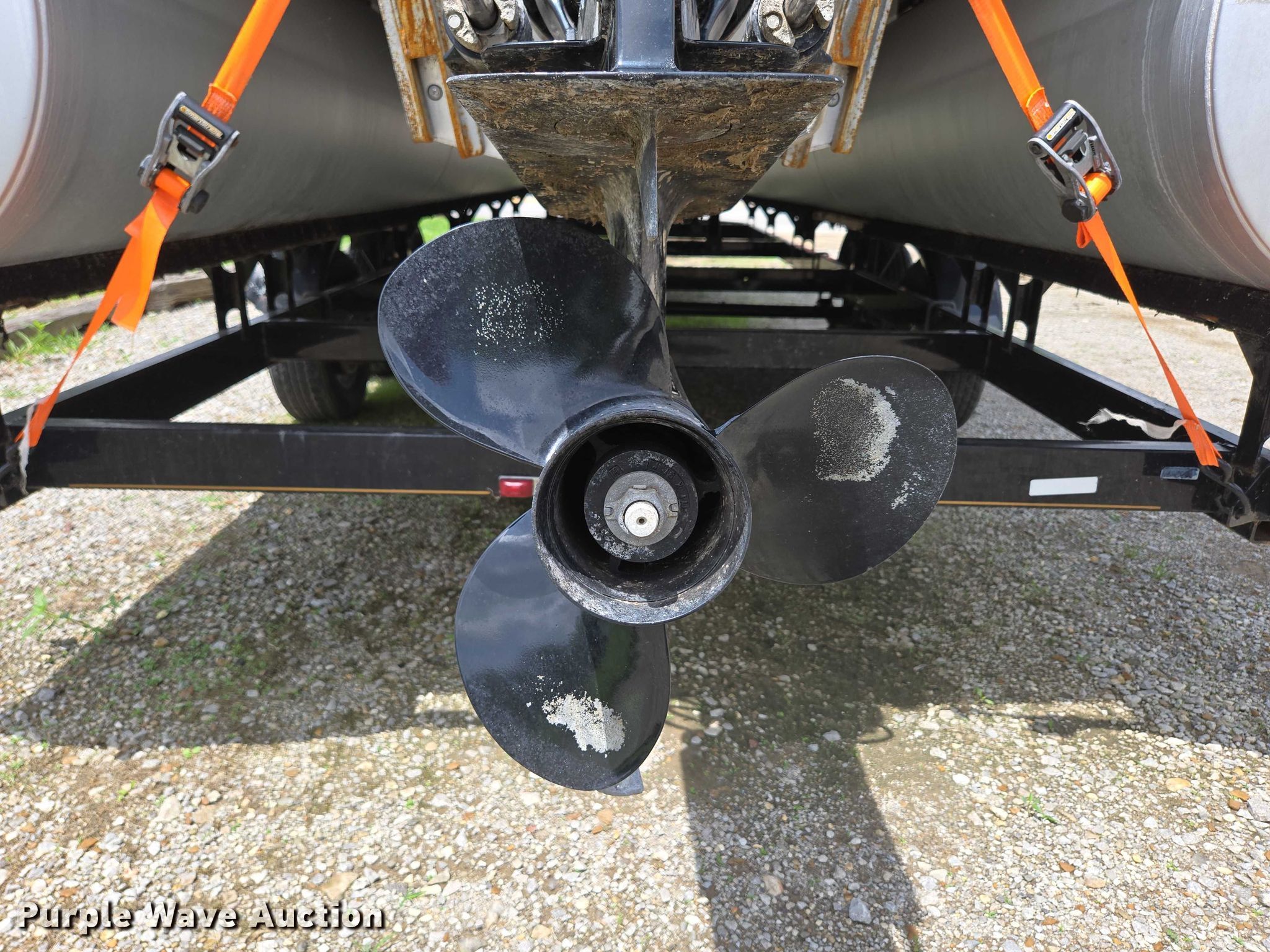 2003 Tracker Party Barge 27 I/O boat. Length: 27' 6", Hull ID: BUJ27684L203. Engine Engine type: Inboard, Mercury MCM 3.0 Litre, Displacement: 181 C.I.D., Cylinders: 4, Fuel type: Gas, Outdrive Make: Mercury, Model: MerCruiser Alpha One, Serial: 0M565042, Propeller: Aluminum. Operators station Capacity Person: 16, 2,260 lbs, Depth finder: Eagle Fish Easy. Features Wakeboard/ ski tower, Bimini top. Trailer Tracker Marine L.P. Trailstar, VIN: 4TM13CR242B001093, Overall length: 32' 3", Overall width: 91.5", GVWR: 6,500 lbs, Axles: Tandem, Brakes: Hydraulic, Tire size: ST205/75R14. Notes Weld repair on right pontoon, Contents not included, Bimini top removed but included, Interior compartment latch issues, Brakes disconnected. Boat: Oklahoma title. Trailer: Bill of Sale. Title distribution may be delayed up to 14 days from verification of funds. Hipfl Construction Inc.. Frontenac, KS 66763