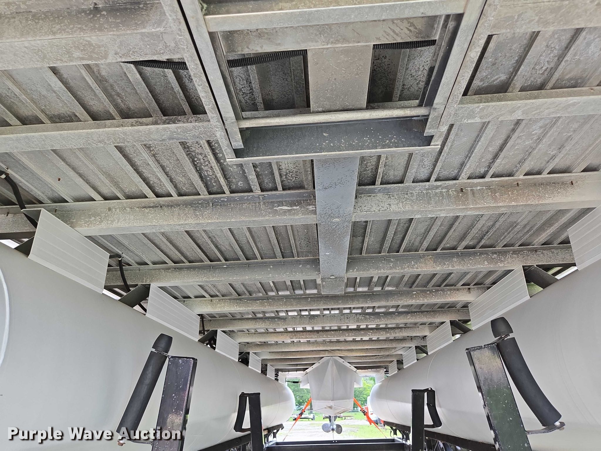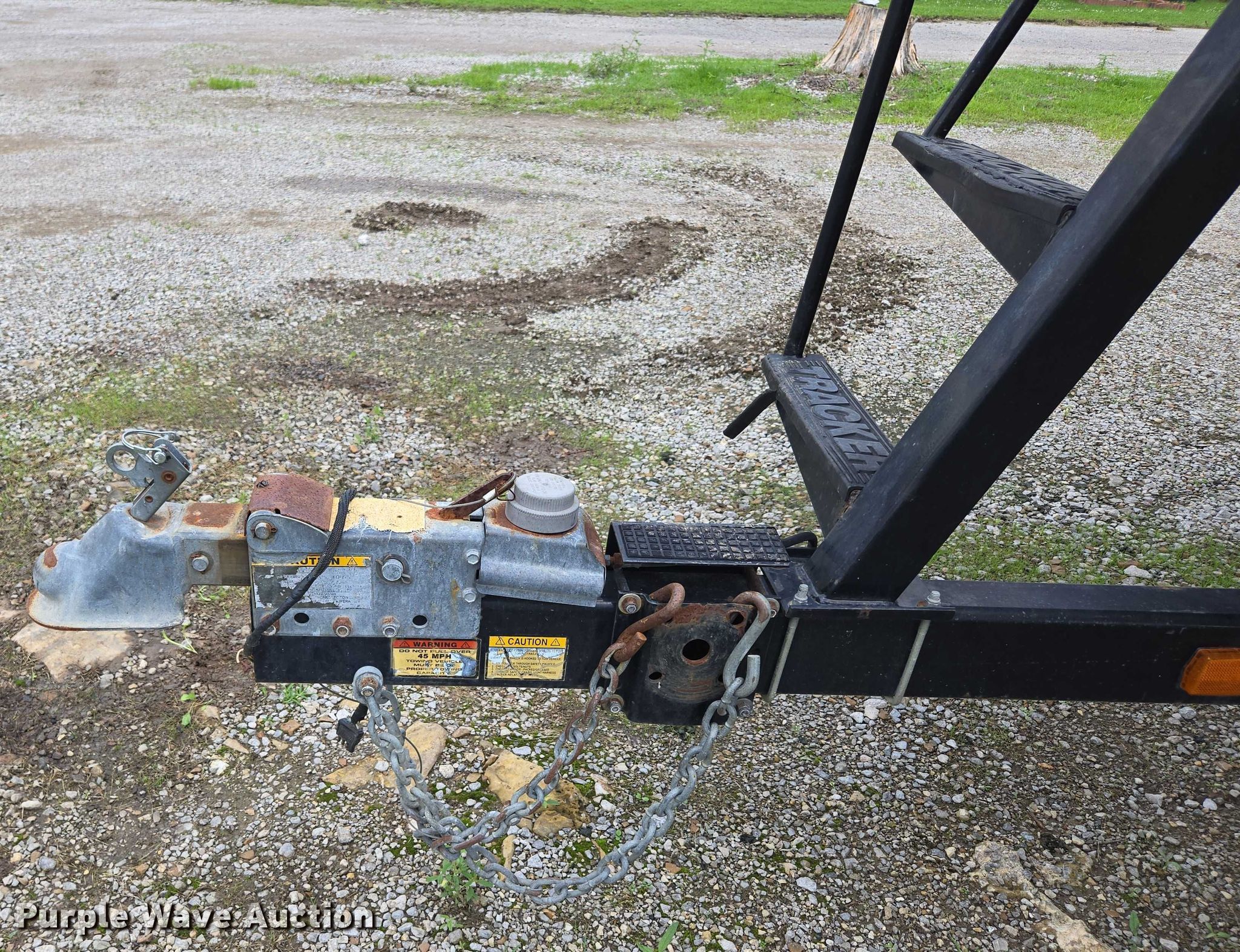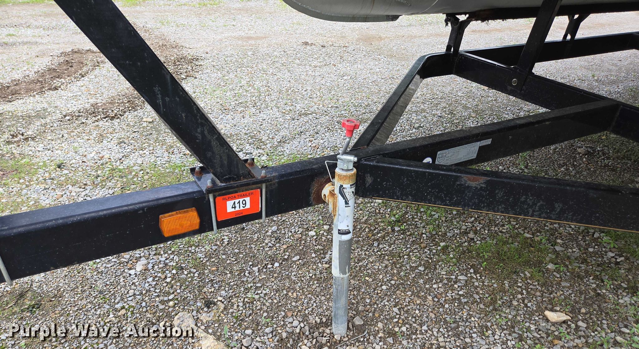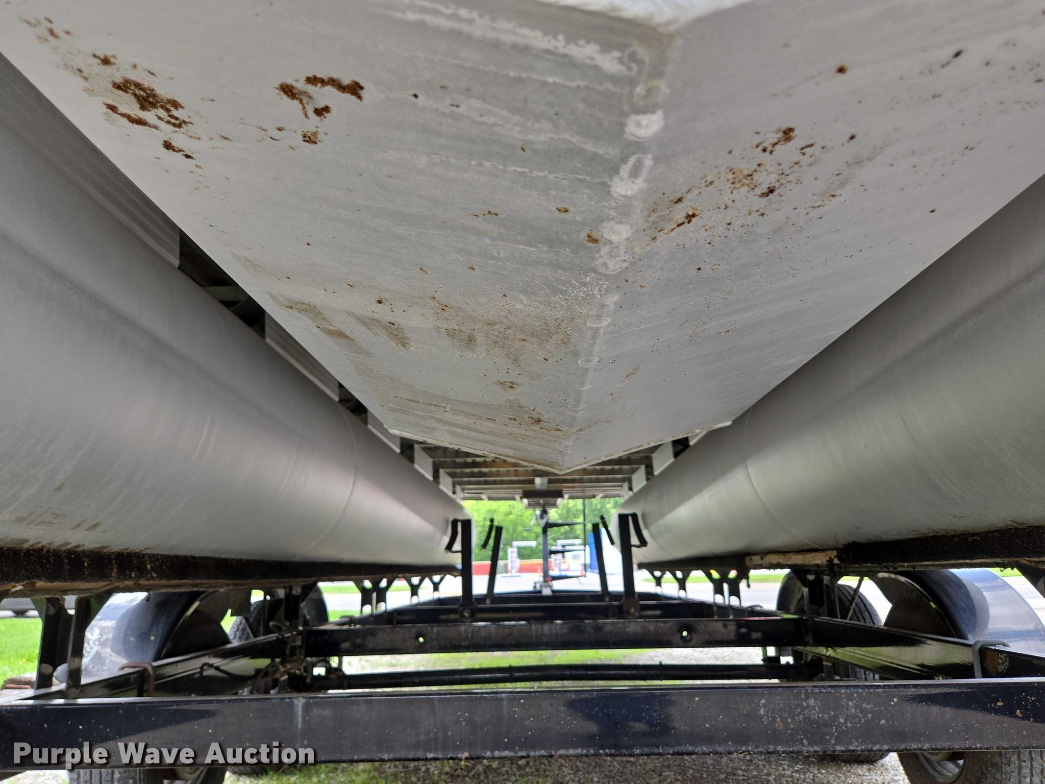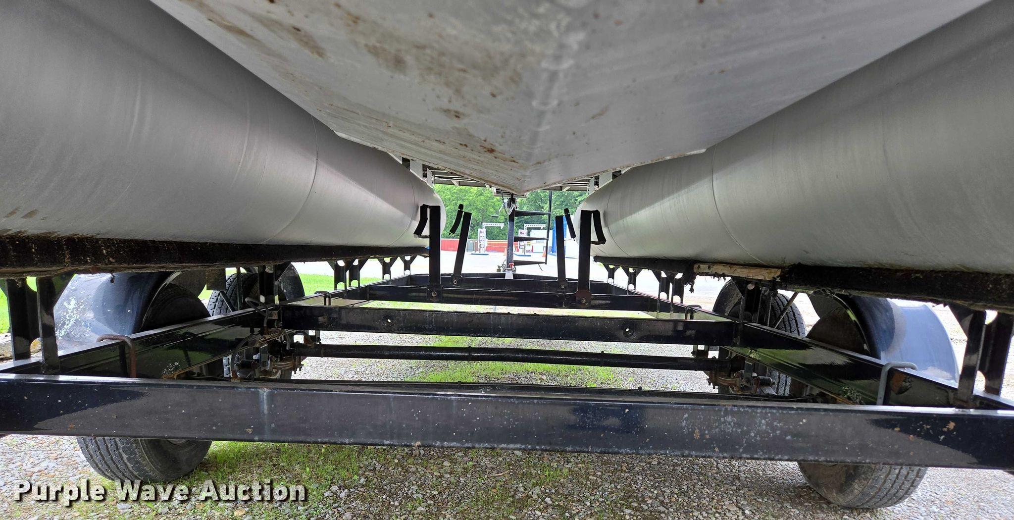 2003 Tracker Party Barge 27 I/O boat. Length: 27' 6", Hull ID: BUJ27684L203. Engine Engine type: Inboard, Mercury MCM 3.0 Litre, Displacement: 181 C.I.D., Cylinders: 4, Fuel type: Gas, Outdrive Make: Mercury, Model: MerCruiser Alpha One, Serial: 0M565042, Propeller: Aluminum. Operators station Capacity Person: 16, 2,260 lbs, Depth finder: Eagle Fish Easy. Features Wakeboard/ ski tower, Bimini top. Trailer Tracker Marine L.P. Trailstar, VIN: 4TM13CR242B001093, Overall length: 32' 3", Overall width: 91.5", GVWR: 6,500 lbs, Axles: Tandem, Brakes: Hydraulic, Tire size: ST205/75R14. Notes Weld repair on right pontoon, Contents not included, Bimini top removed but included, Interior compartment latch issues, Brakes disconnected. Boat: Oklahoma title. Trailer: Bill of Sale. Title distribution may be delayed up to 14 days from verification of funds. Hipfl Construction Inc.. Frontenac, KS 66763