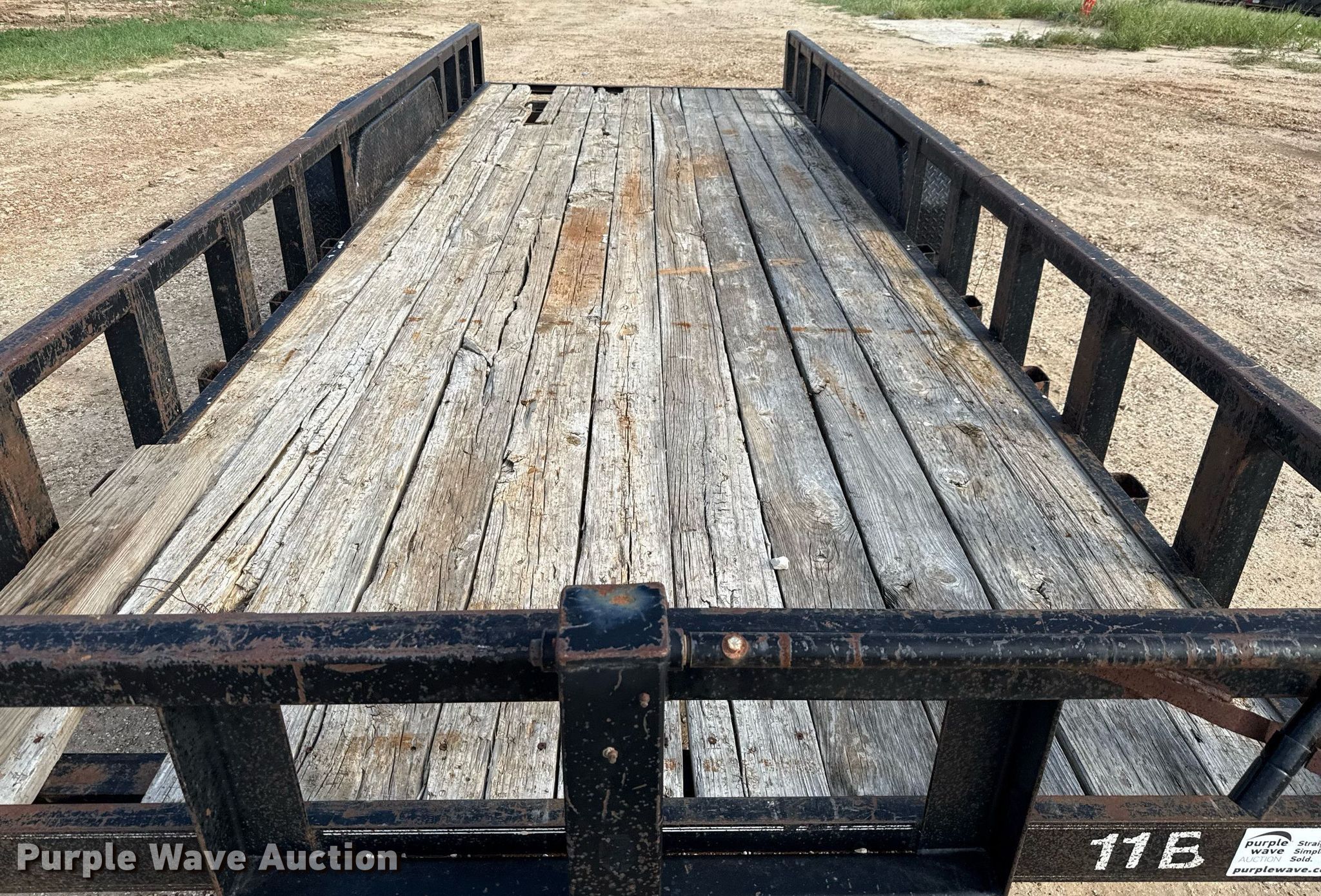 2011 Parker utility trailer. VIN: 13ZHP2021B1003041, Unit #: 11B. Dimensions Overall: 23' 4" L x 101" W, Deck: 20' L x 83" W, Side height: 14", Deck height: 24". Features Deck type: Wood. Chassis Ball hitch: 2 5/16", Landing gear: Single, Suspension: Spring, Brakes: Electric, Axles: Tandem. Tires Steel wheels, Size: 235/85R16. Notes Deck boards damaged. Louisiana title. Title distribution may be delayed up to 30 days from verification of funds. Carrizo Springs, TX 78834