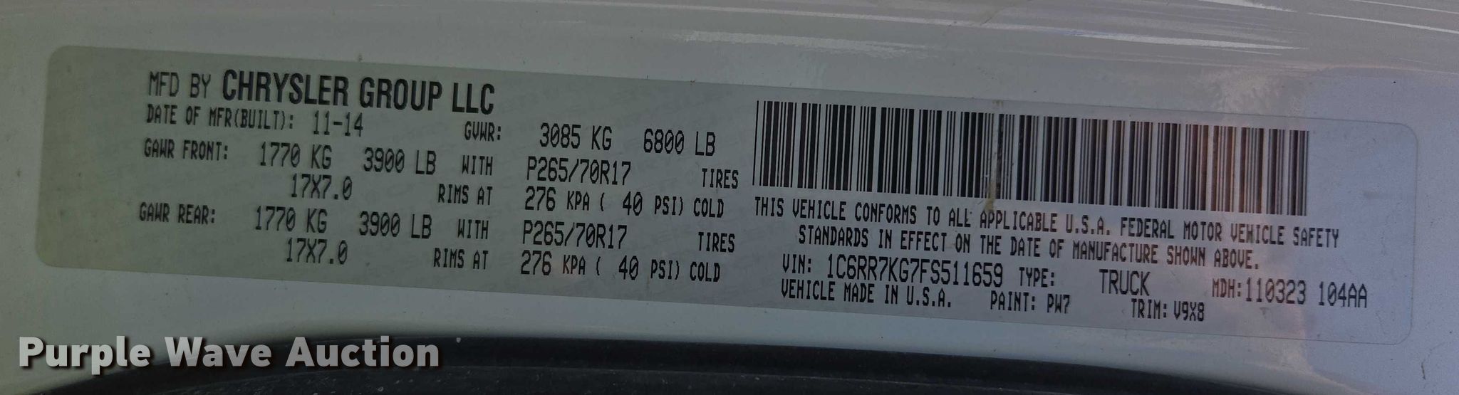 - VIN: 1C6RR7KG7FS511659
